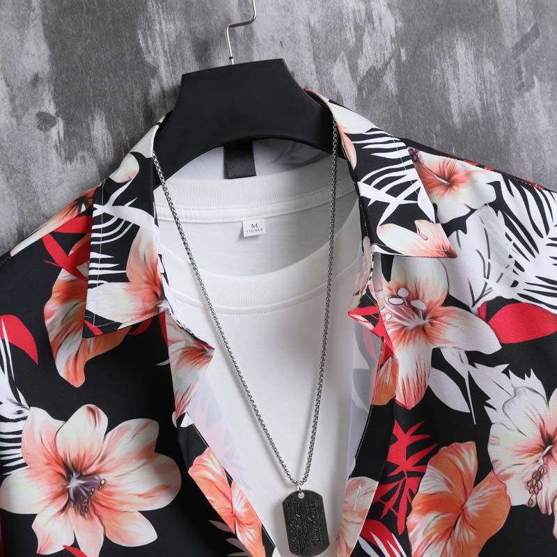 2024 대외 무역 유럽 크기 여름 새로운 남성 패션 트렌디 한 해변 마이크로 탄성 경량 캐주얼 짧은 소매 반바지 세트