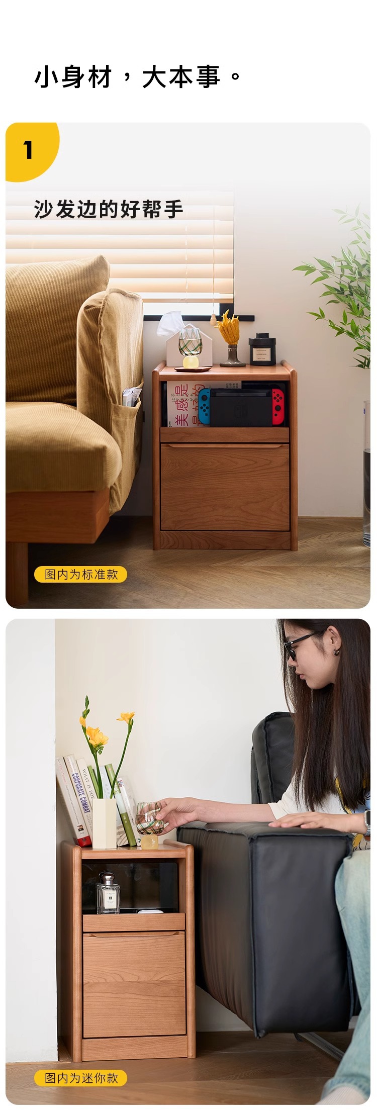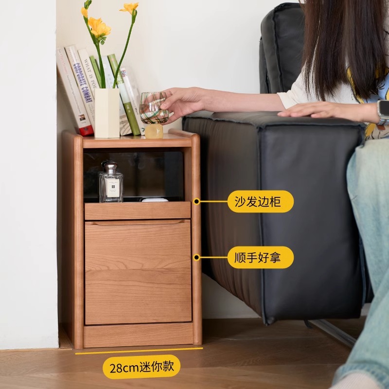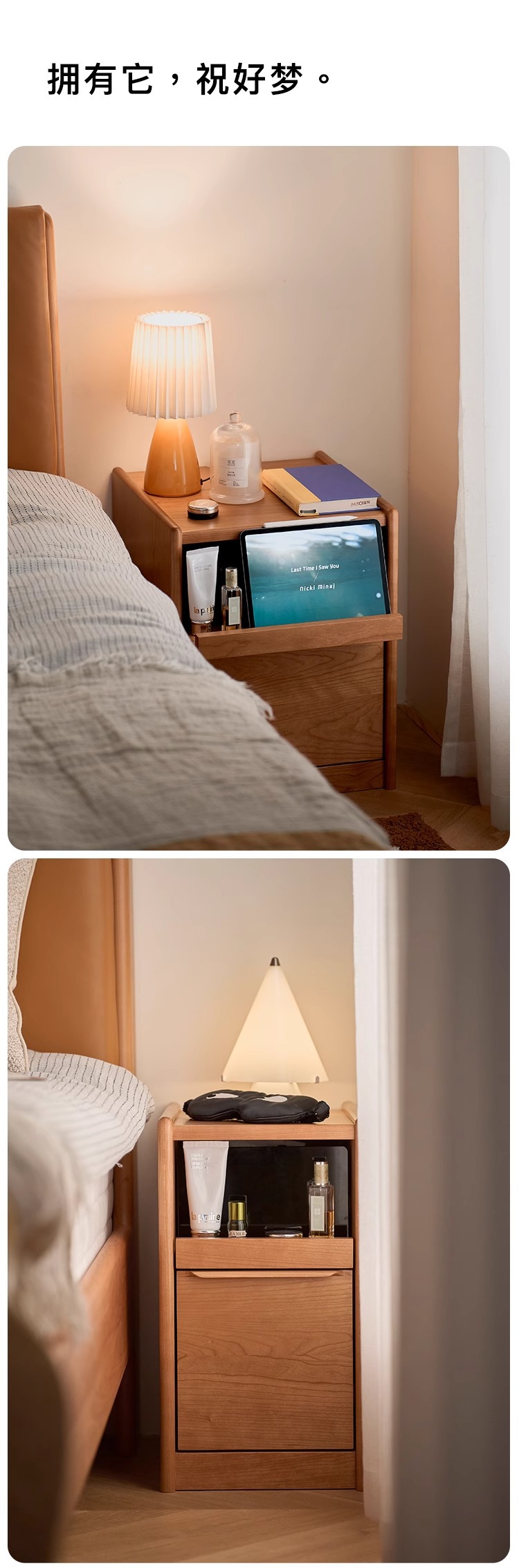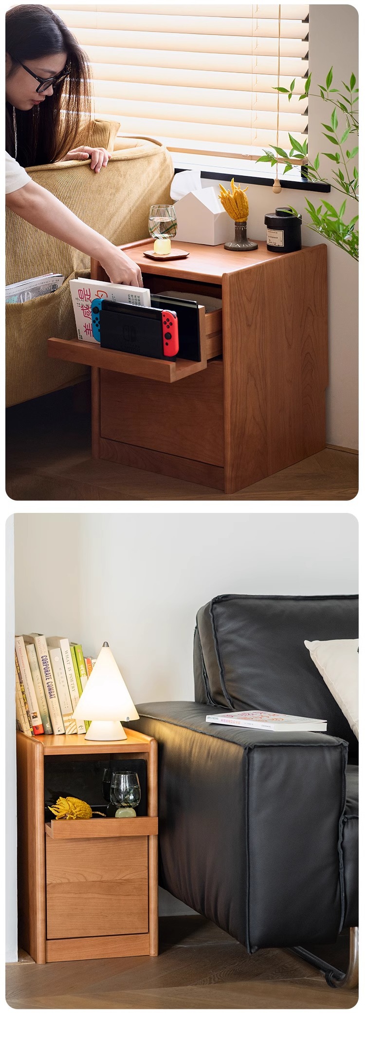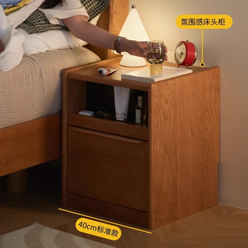 Olarian 침대 옆 테이블 북유럽 체리 나무 단단한 나무 침대 옆 캐비닛 침실 집 북유럽 작은 아파트 저장 좁은 캐비닛