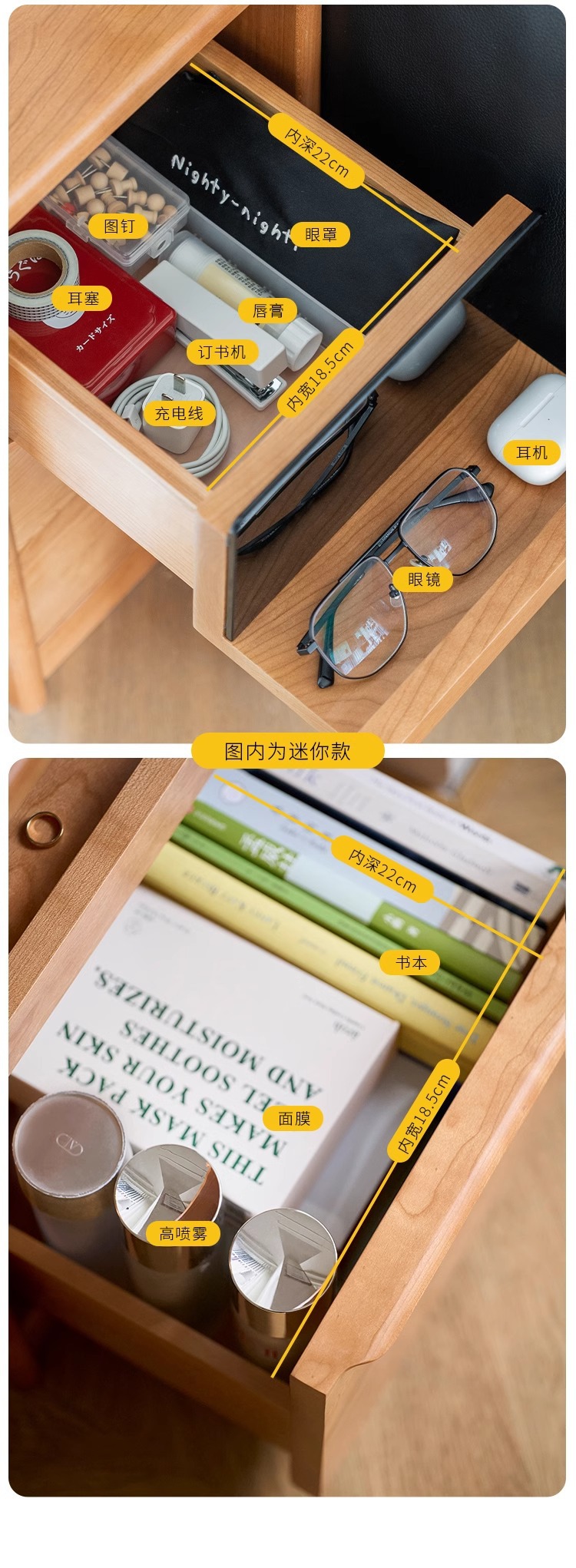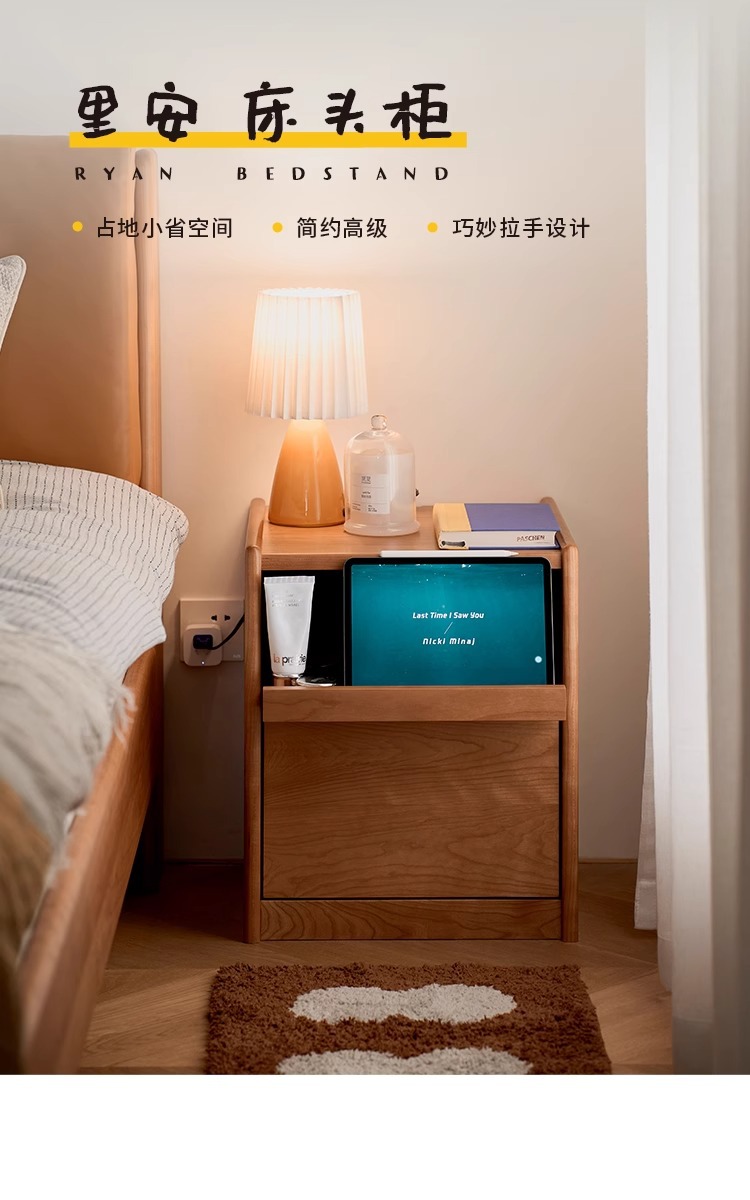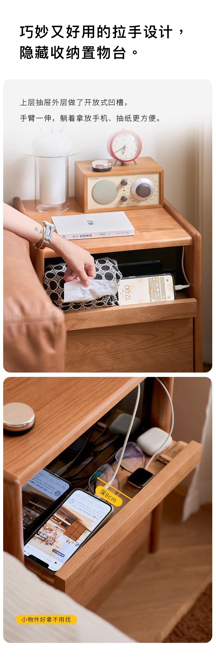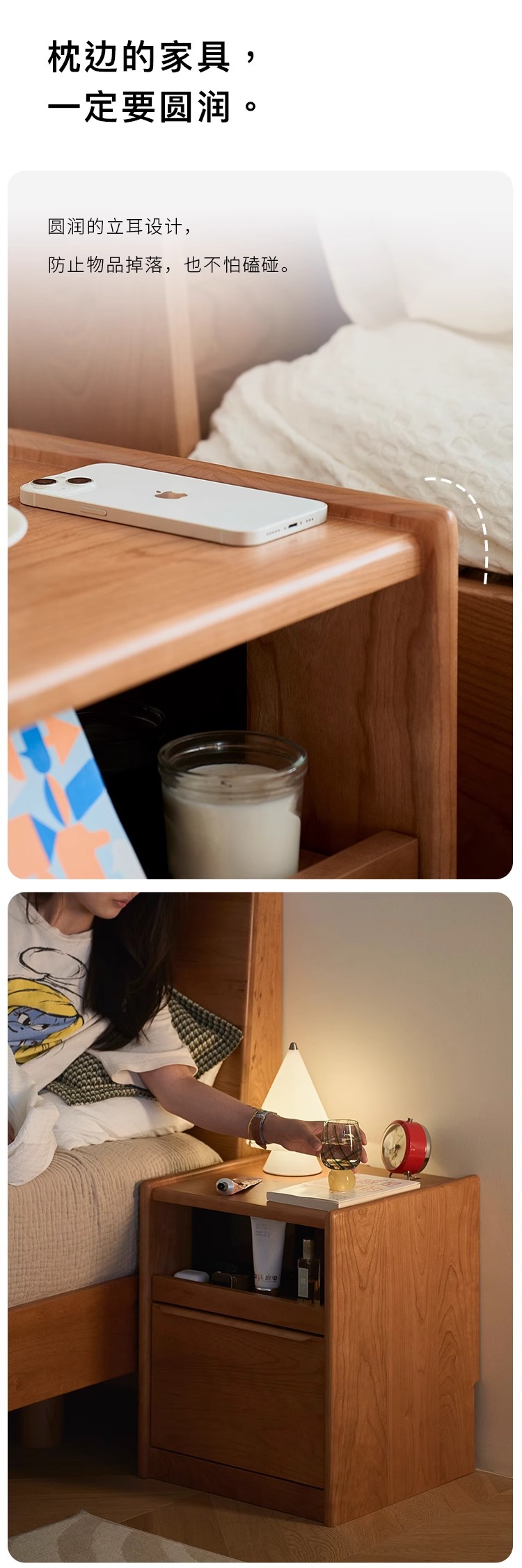 Olarian 침대 옆 테이블 북유럽 체리 나무 단단한 나무 침대 옆 캐비닛 침실 집 북유럽 작은 아파트 저장 좁은 캐비닛