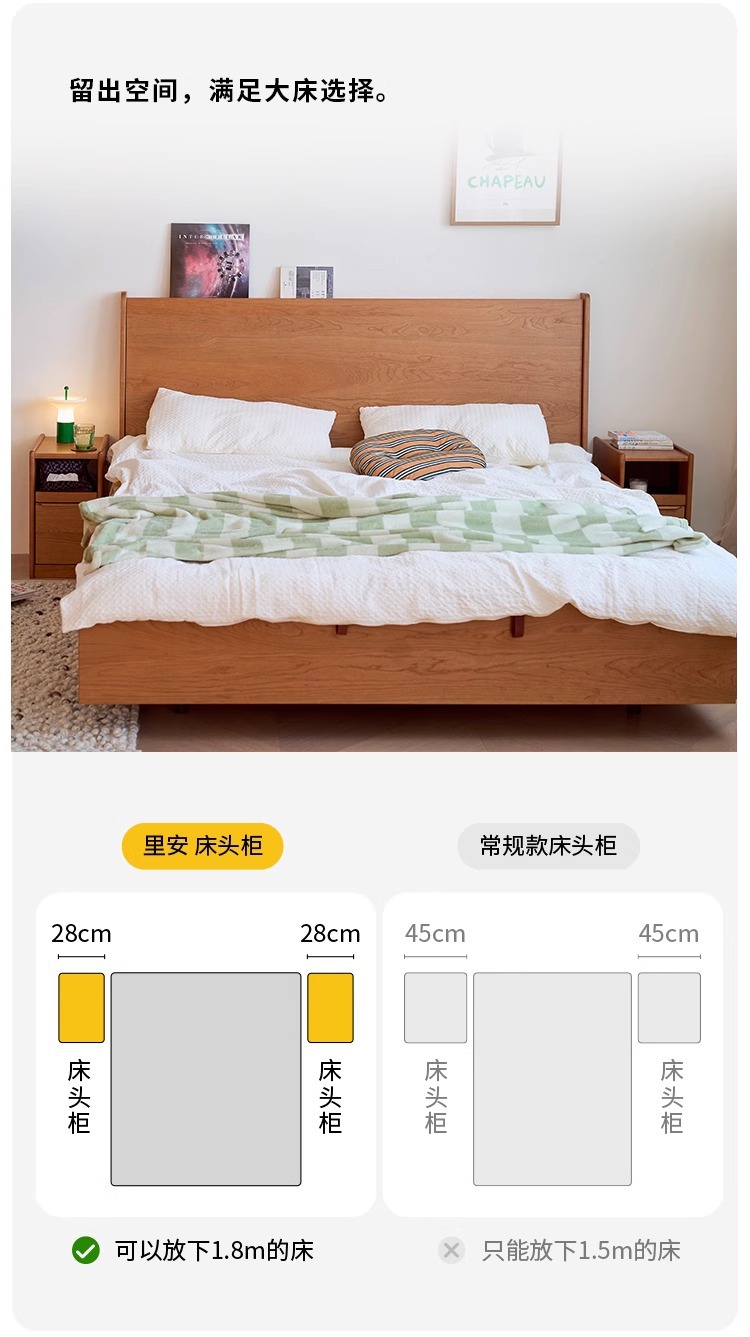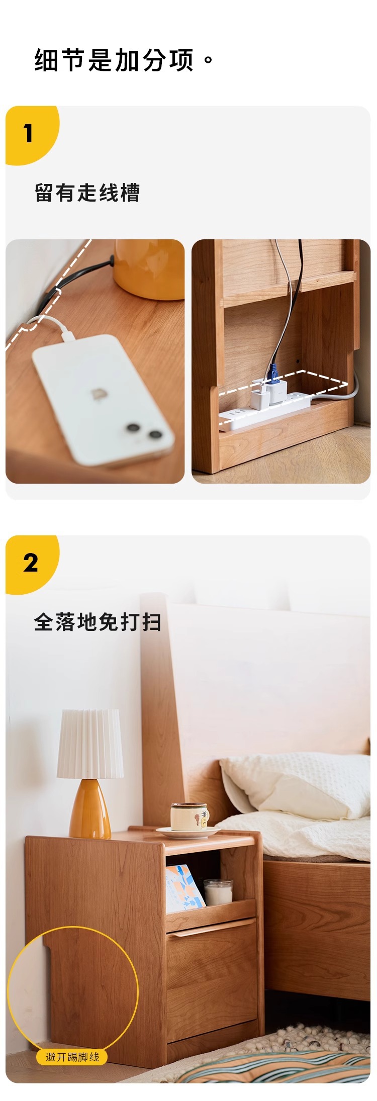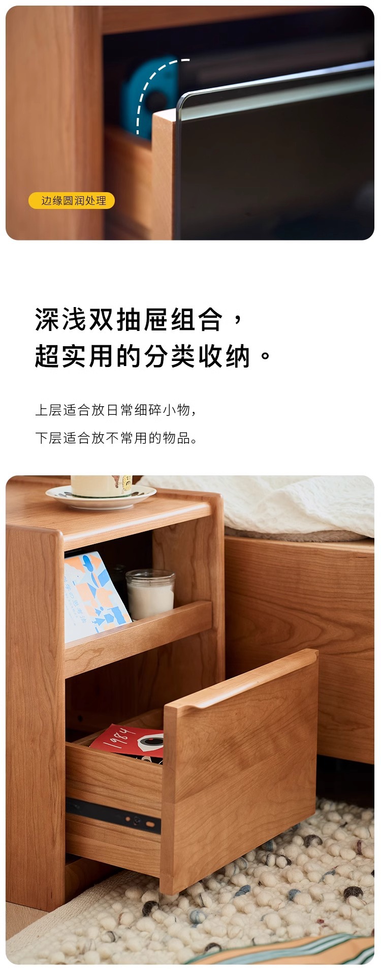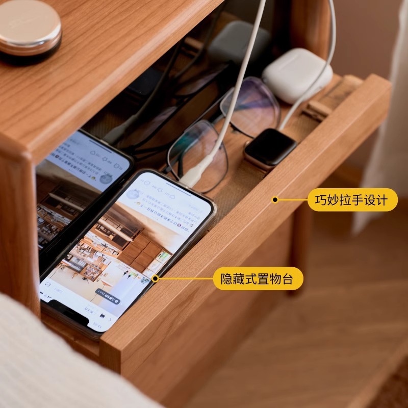 Olarian 침대 옆 테이블 북유럽 체리 나무 단단한 나무 침대 옆 캐비닛 침실 집 북유럽 작은 아파트 저장 좁은 캐비닛