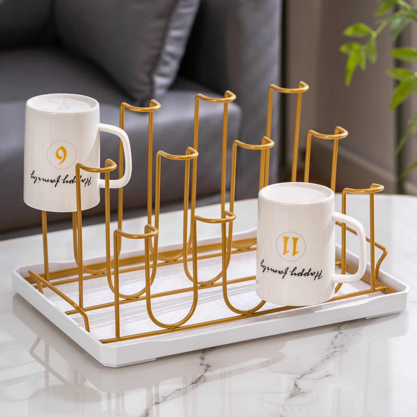 6위치 컵홀더(골드) + 화이트 트레이