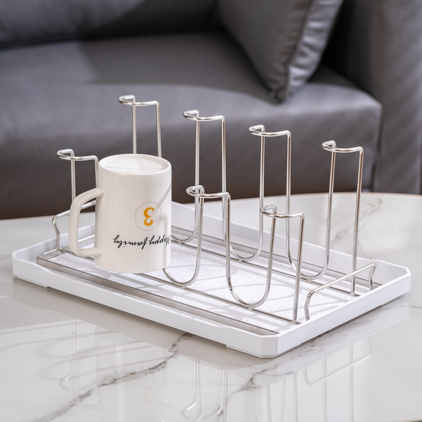 6위치 컵홀더(실버) + 화이트 트레이