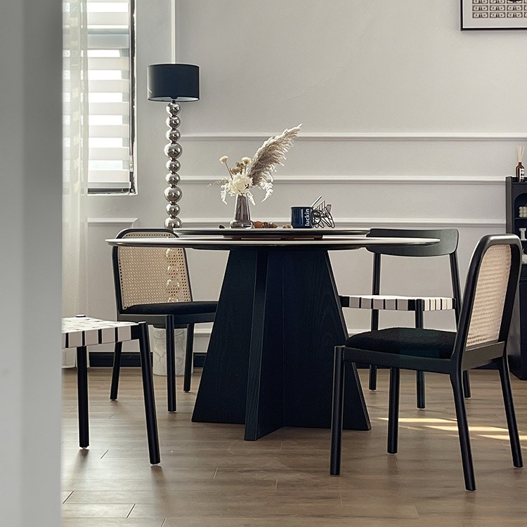 북유럽 가정용 단단한 나무 식당 의자 프랑스 복고풍 인터넷 유명 인사 홈 호텔 레스토랑 등나무 식탁 및 의자 등받이 의자