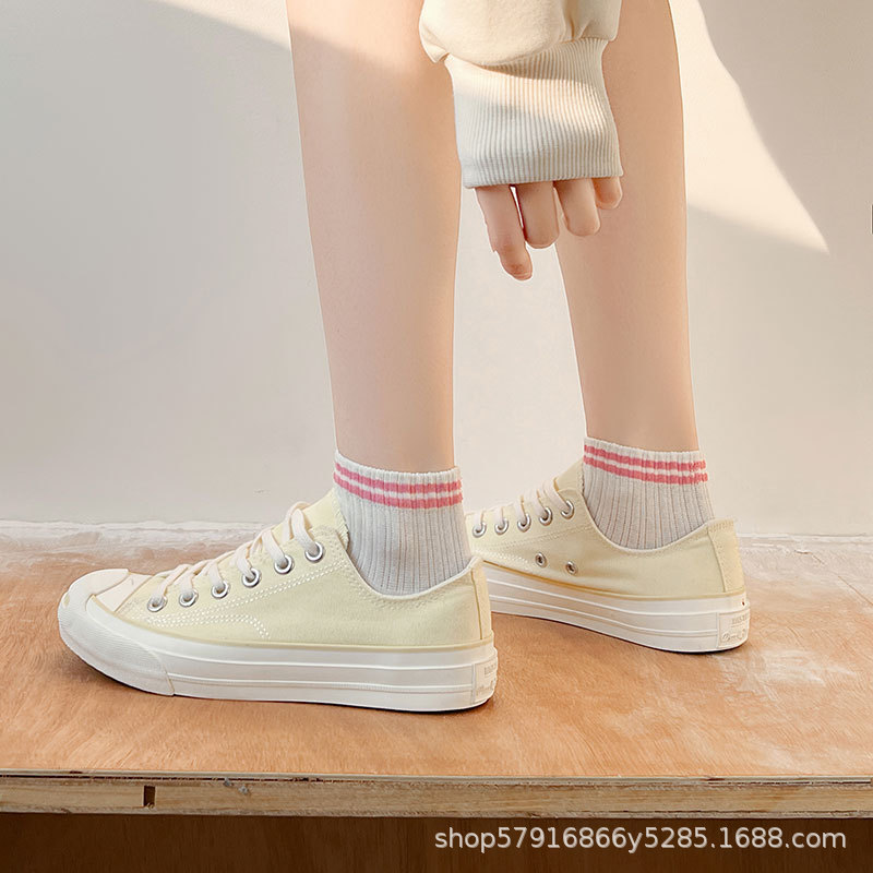 양말 여성 여름 얇은 양말 수제 눈 대 눈 뼈없는 양말 화이트 스포츠 로우 탑 프레피 스타일 주지 양말