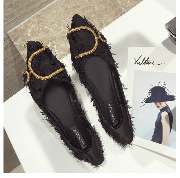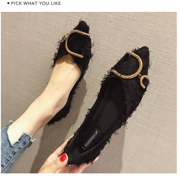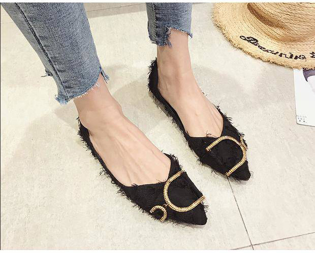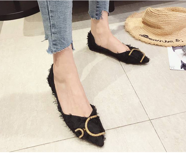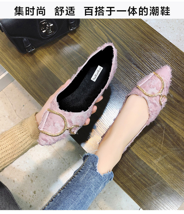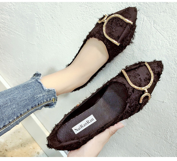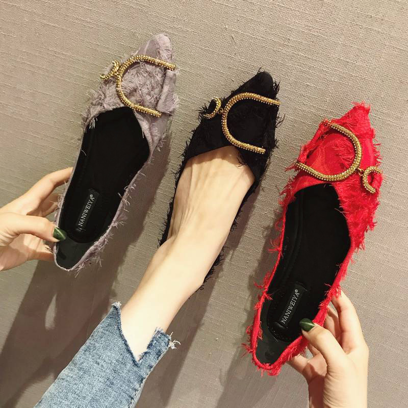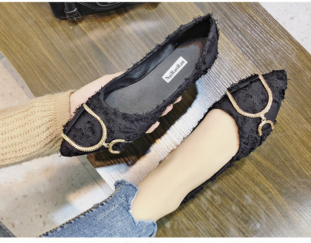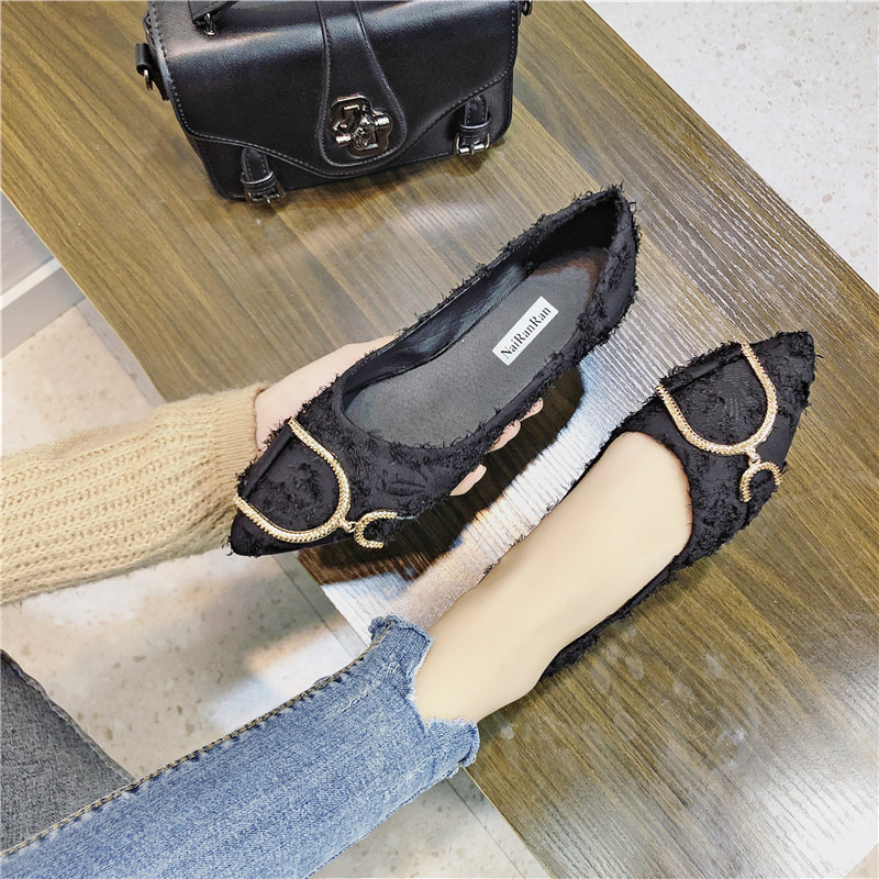 여성을위한 클래식 섹시한 싱글 레이어 신발 2024 봄 새로운 한국 스타일 유행 올 매치 뾰족한 플랫 신발 여성의 로우 컷 보트 신발