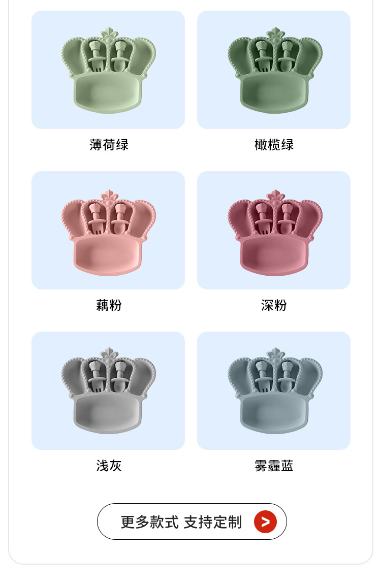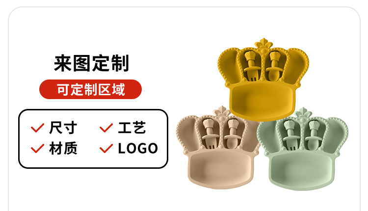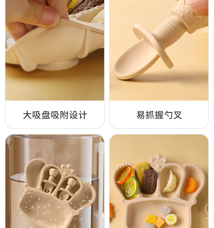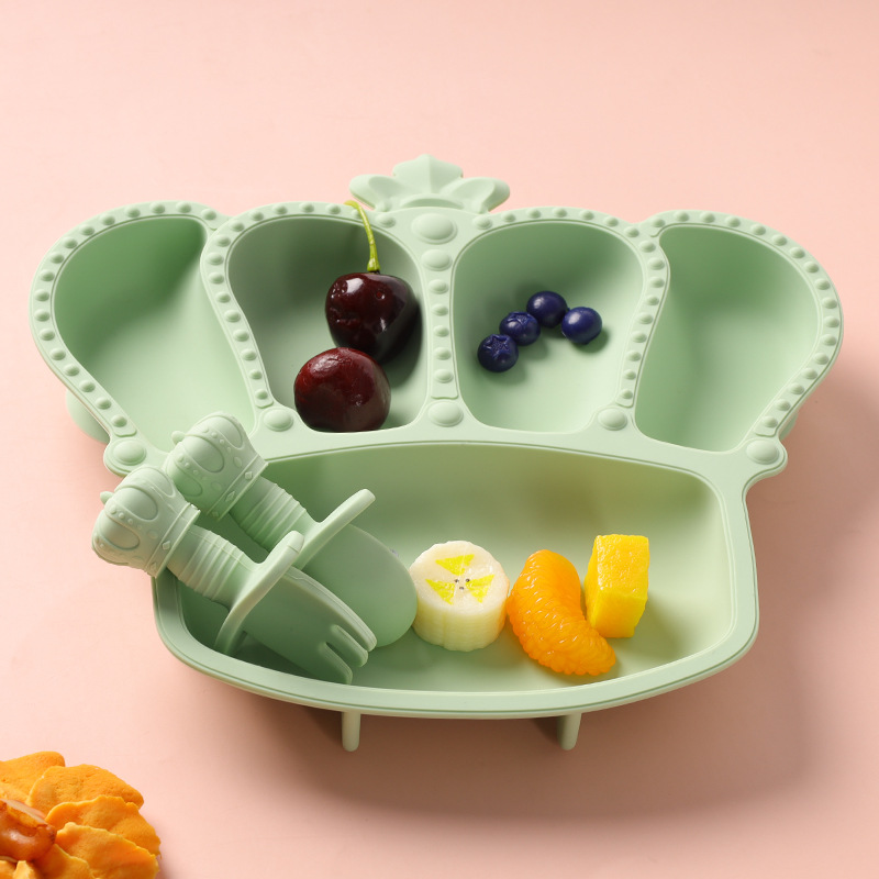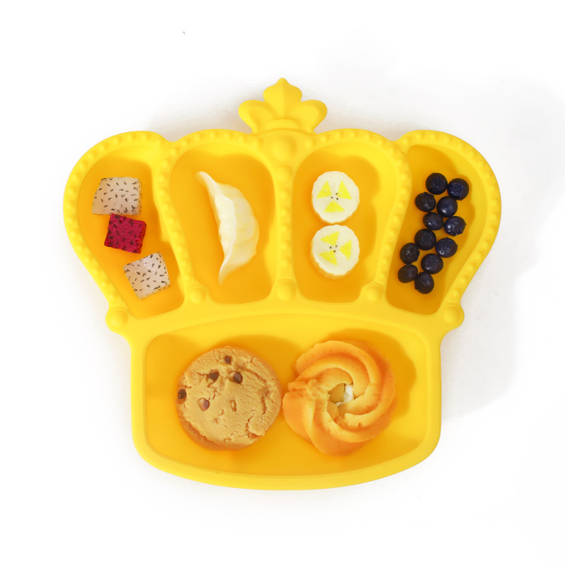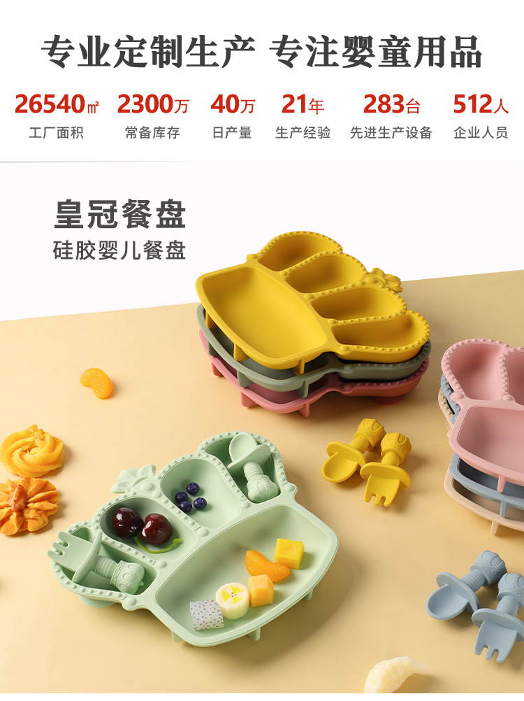 공장 도매 실리콘 식기 흡입 컵 식품 실리콘 고온 저항하는 구획 플레이트 아기 크라운 플레이트