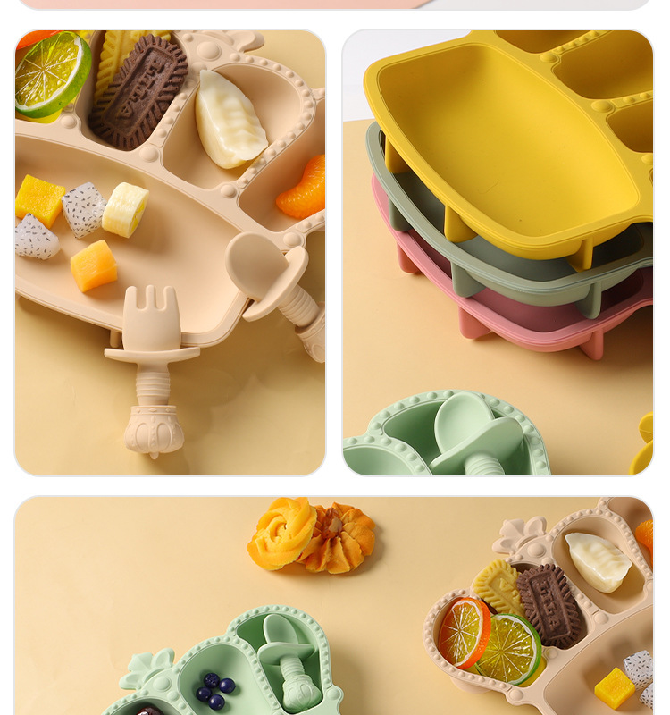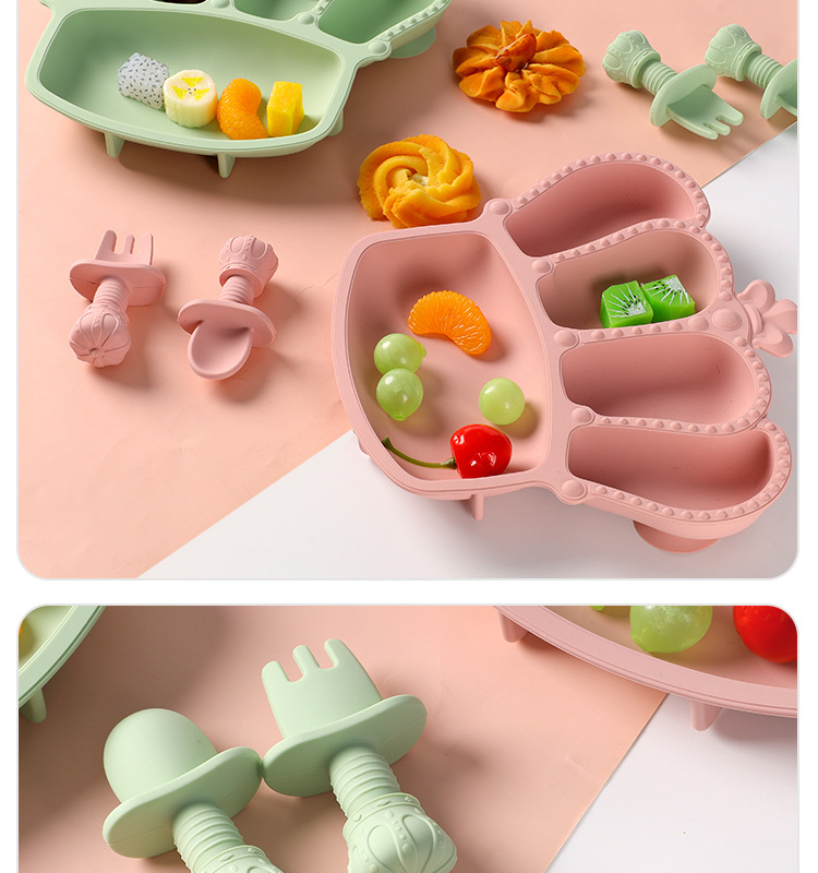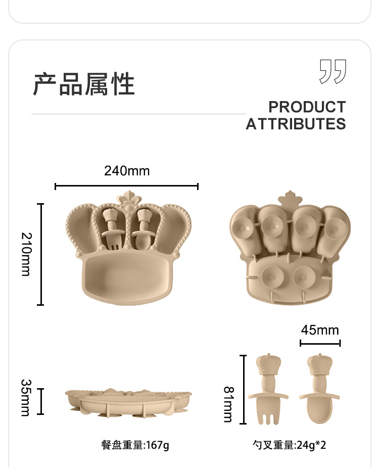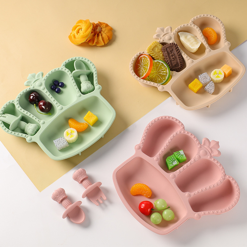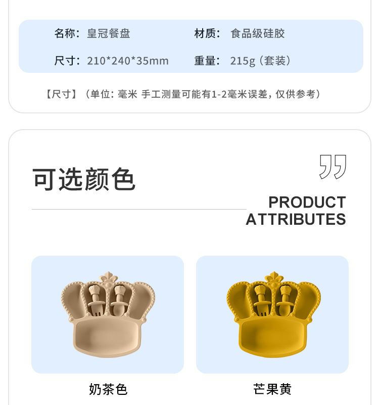 공장 도매 실리콘 식기 흡입 컵 식품 실리콘 고온 저항하는 구획 플레이트 아기 크라운 플레이트