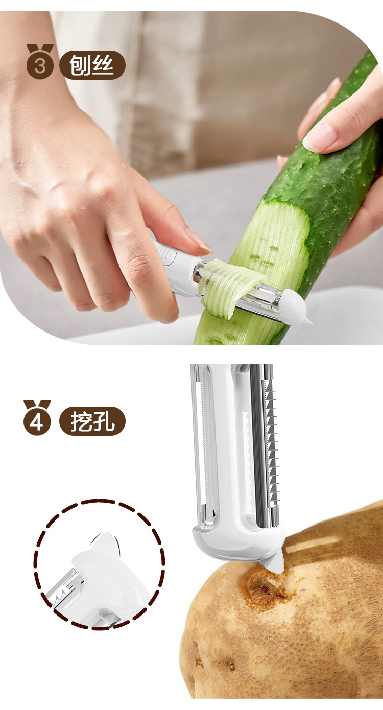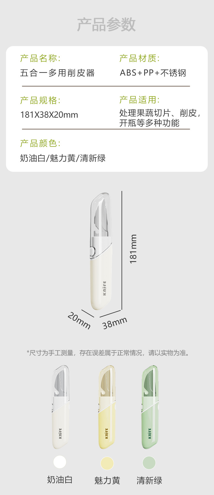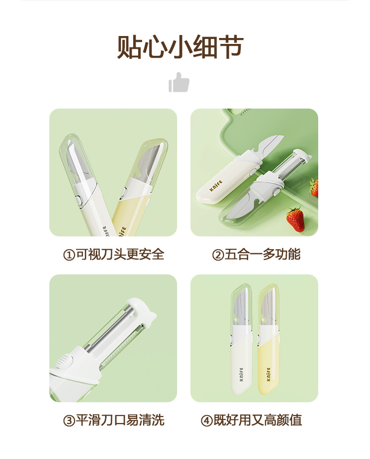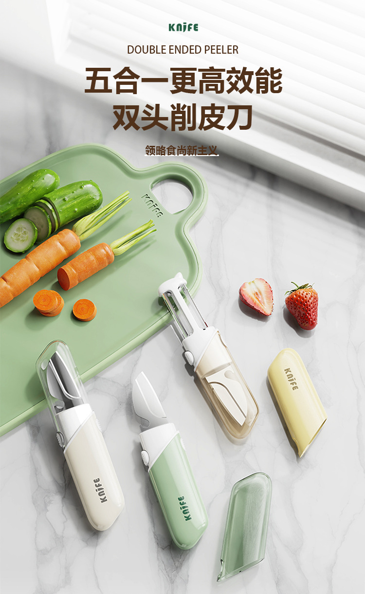 5 대 1 과일 칼 필러 커터 병 오프너 아이 파기 휴대용 다기능 필러 과일 칼