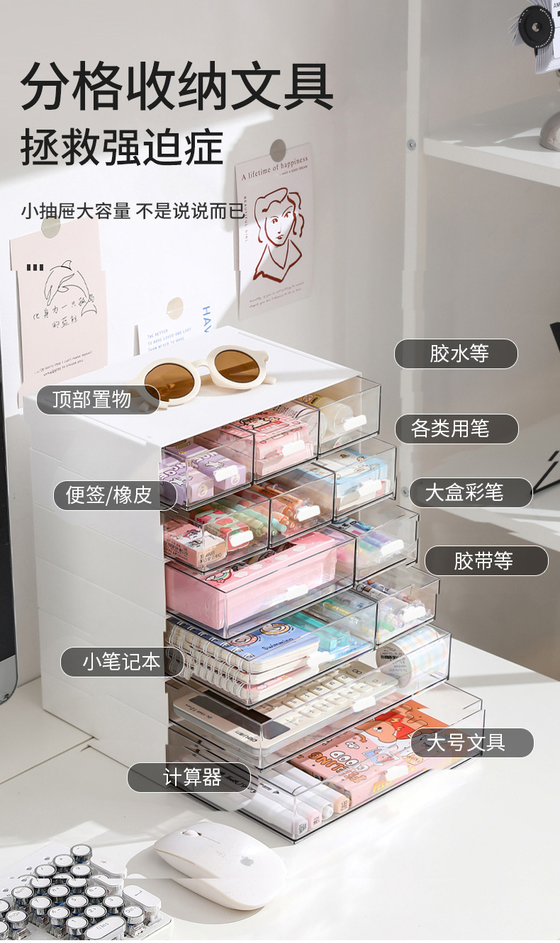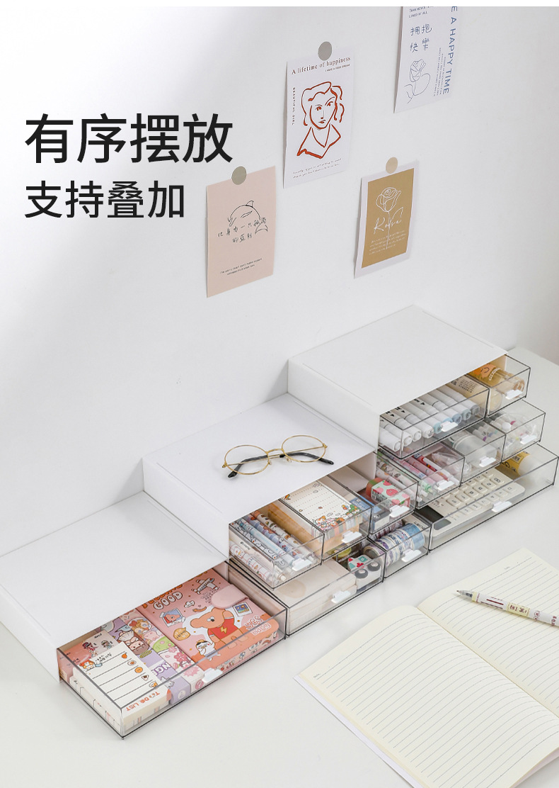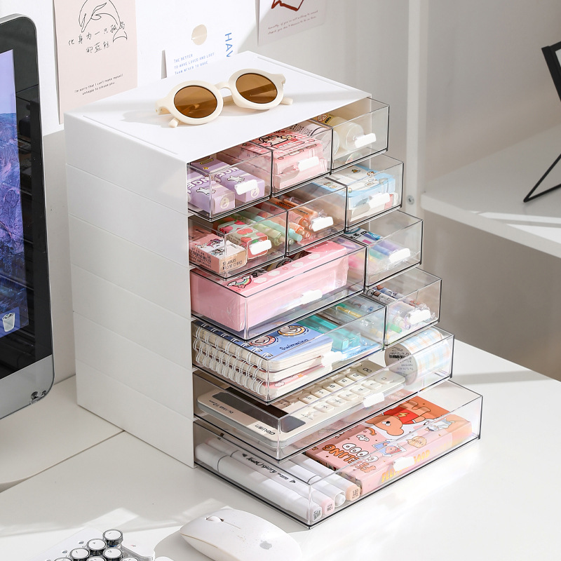 저장 상자 플라스틱 데스크탑 저장 상자 화장품 서랍 조직 상자 무료 조합 다층 쌓을 수있는 보석 상자
