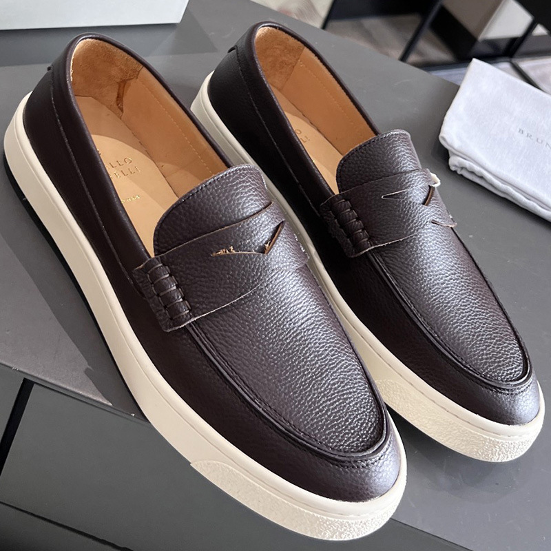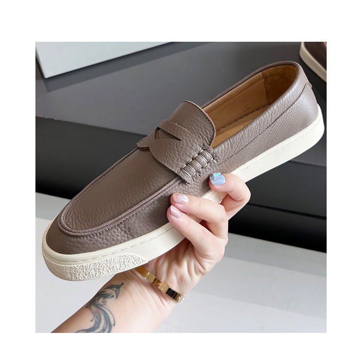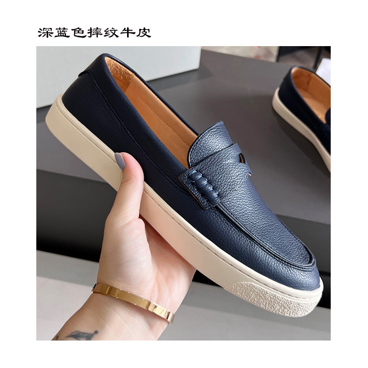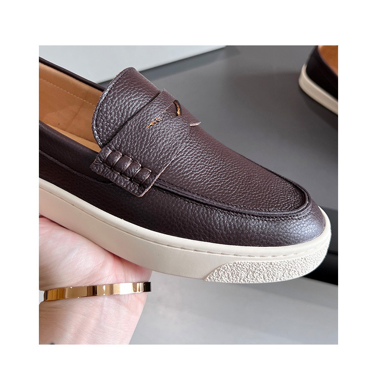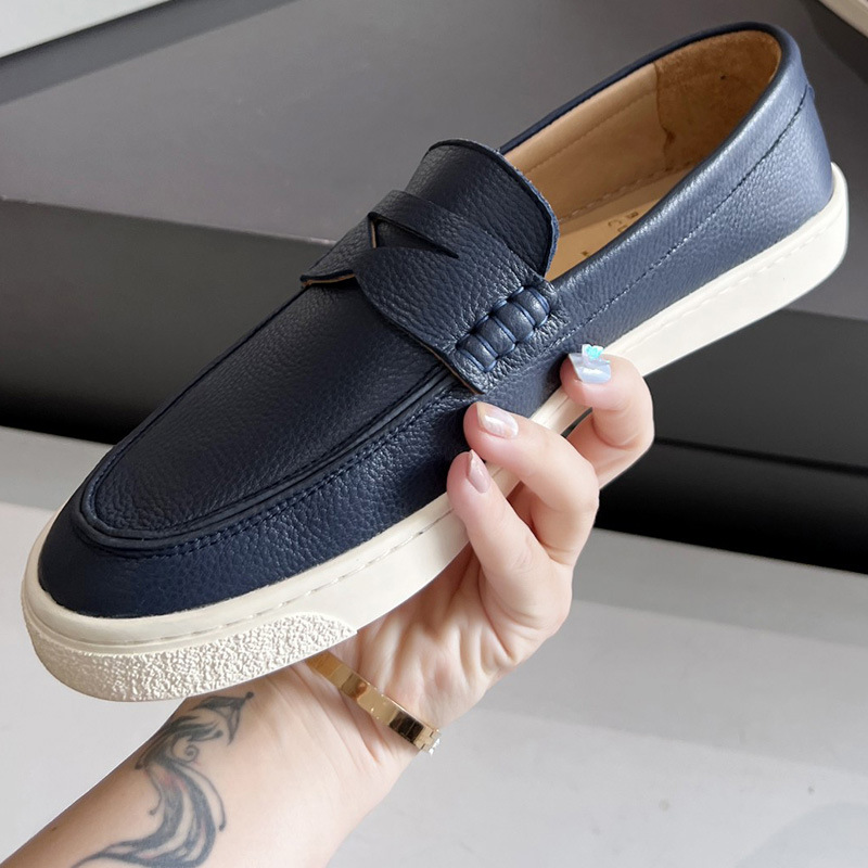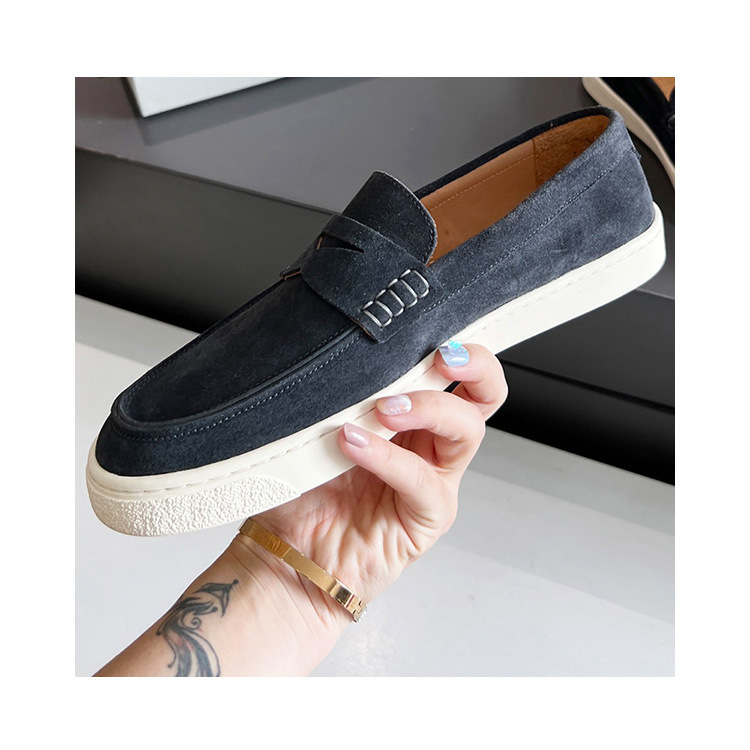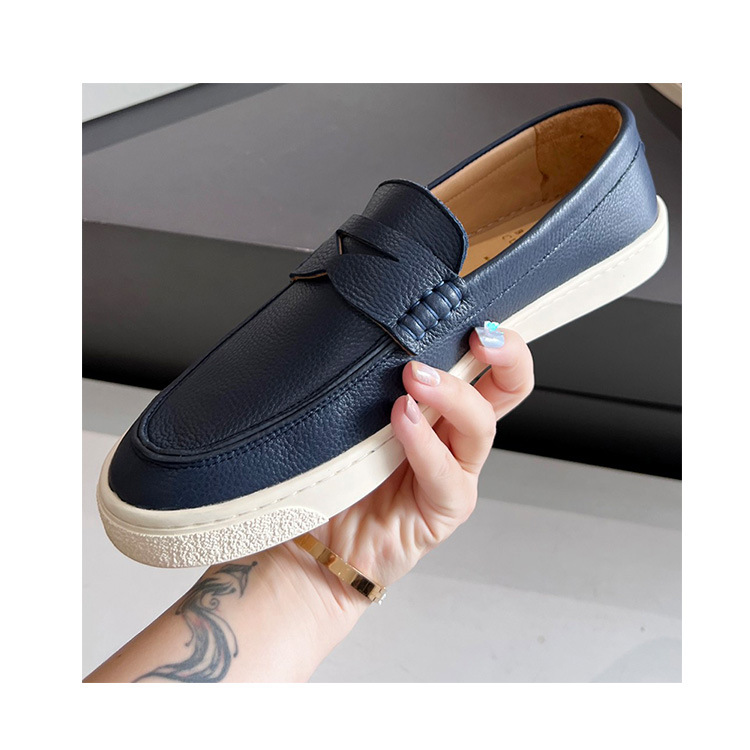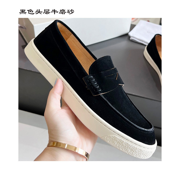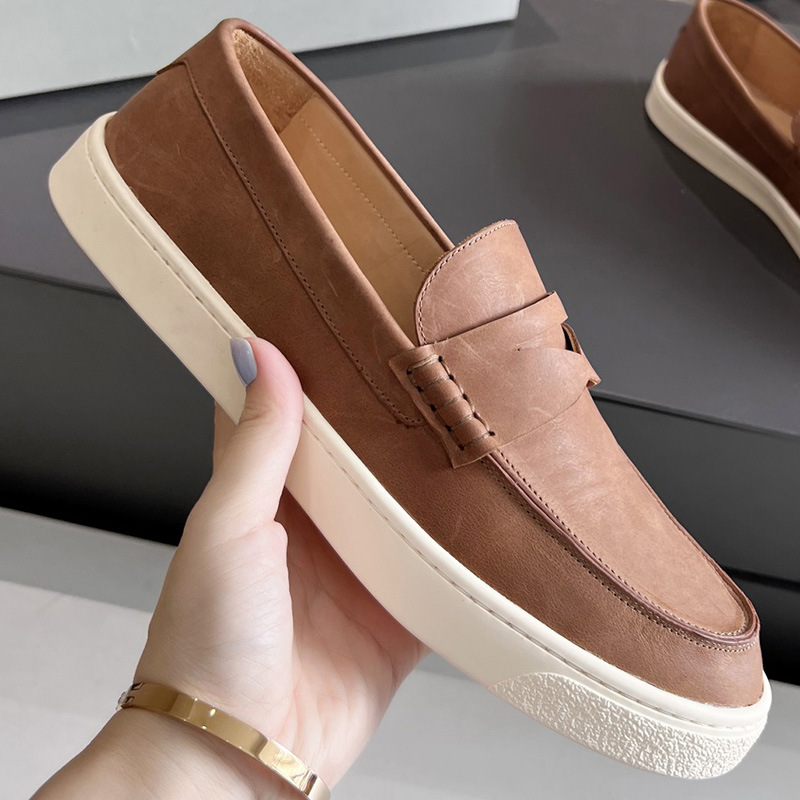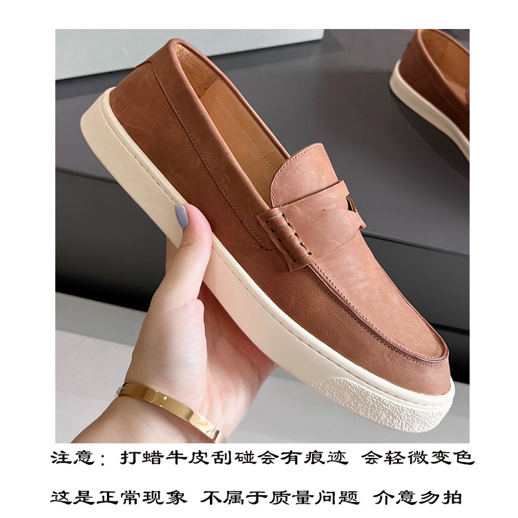 유럽과 미국의 수제 소가죽 라운드 토 블랙 플랫 비즈니스 남성 캐주얼 가죽 신발 2024 새로운 비니 신발 사이즈 47