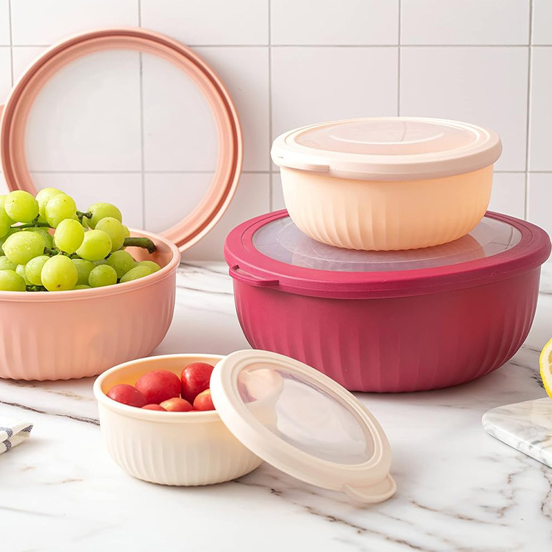 국경 간 뜨거운 판매 8 조각 중첩 플라스틱 그릇 세트 플라스틱 뚜껑 크리스퍼 냉장고 크리스퍼 도시락 상자