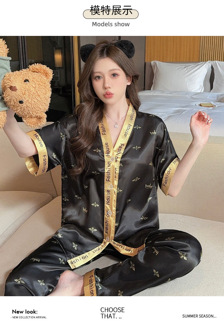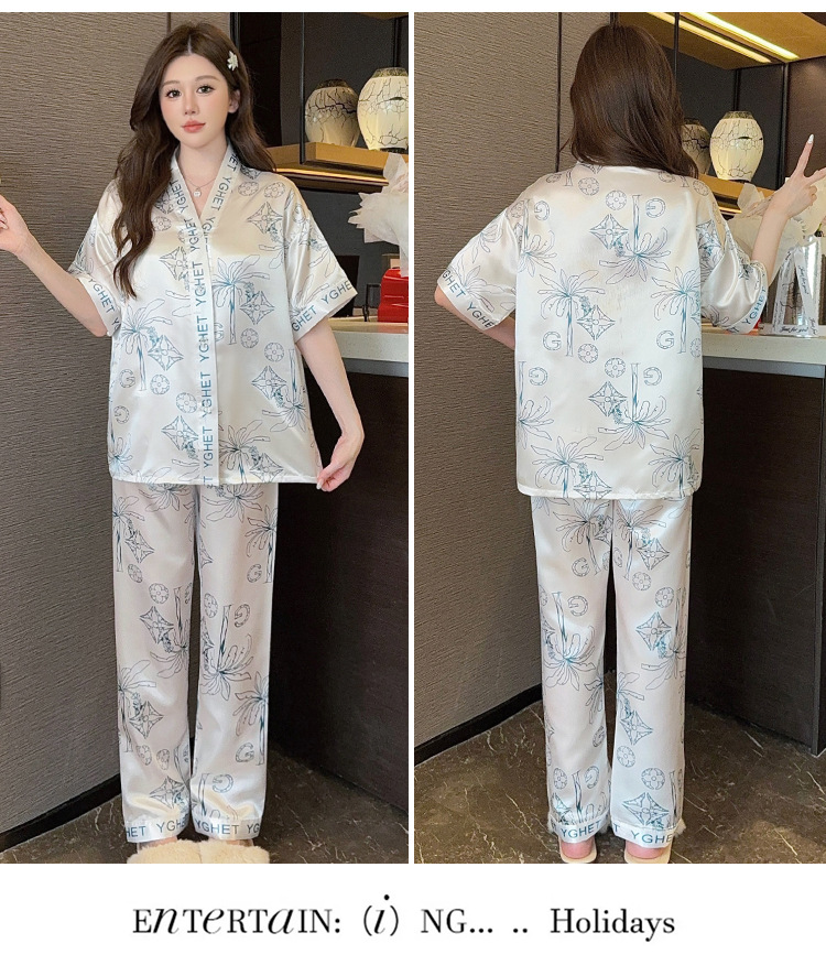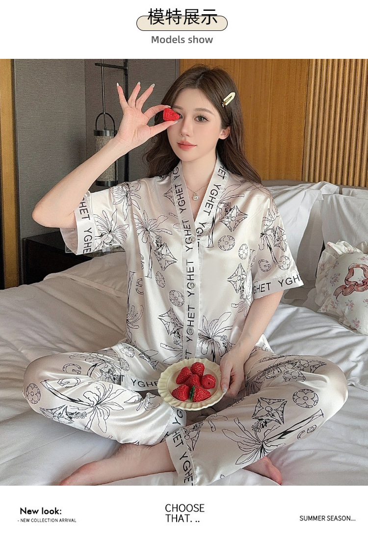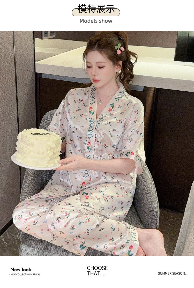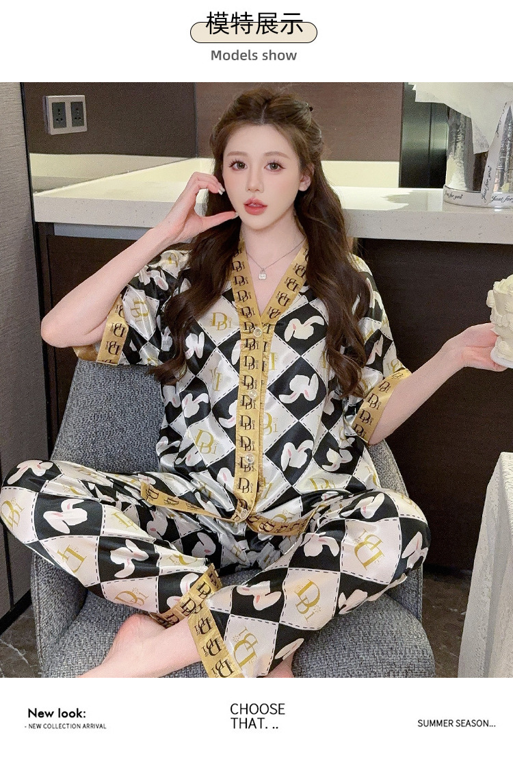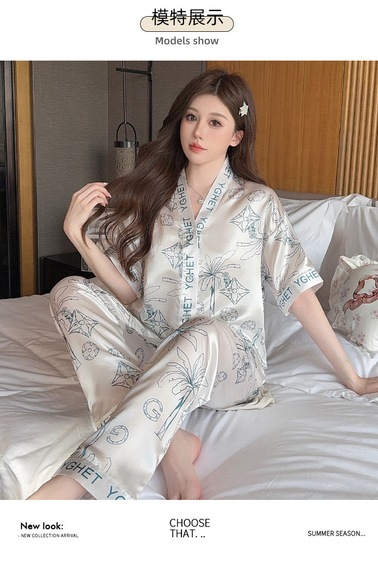 2024 뉴 아이스 실크 잠옷 여성 봄과 여름 고급 반팔 바지 실크 여름 여성 잠옷