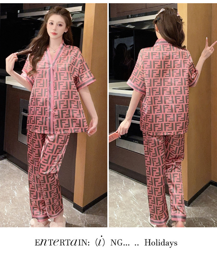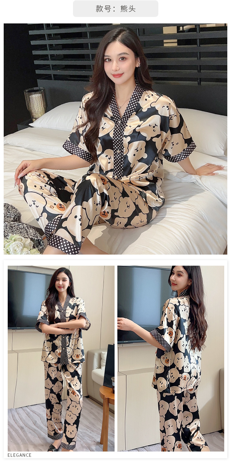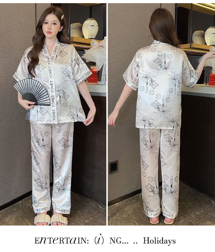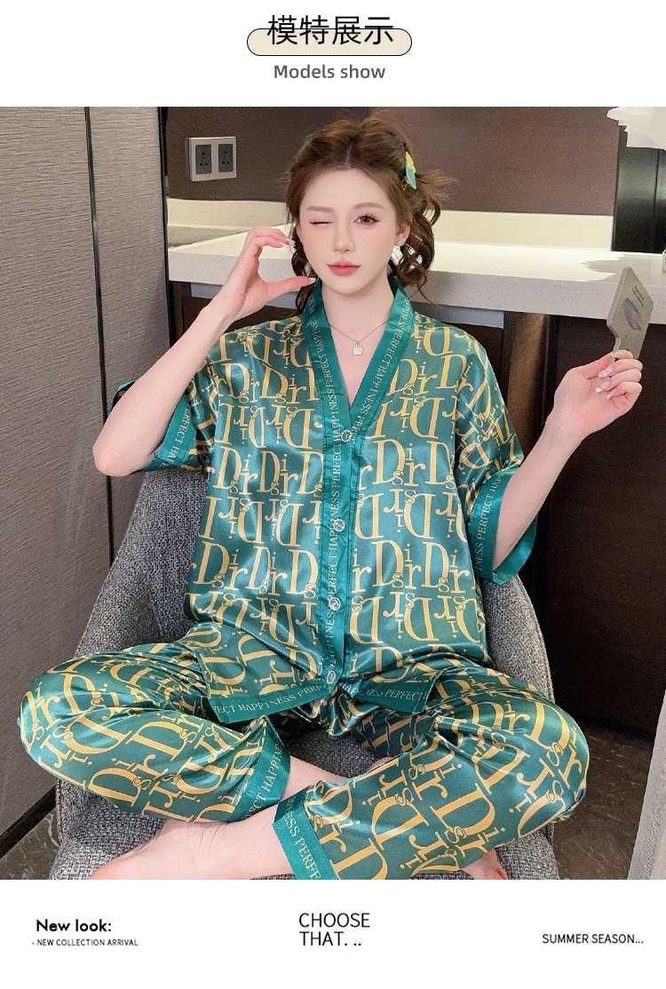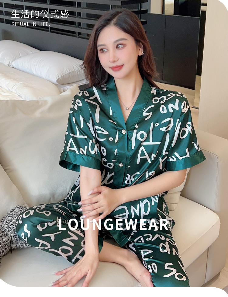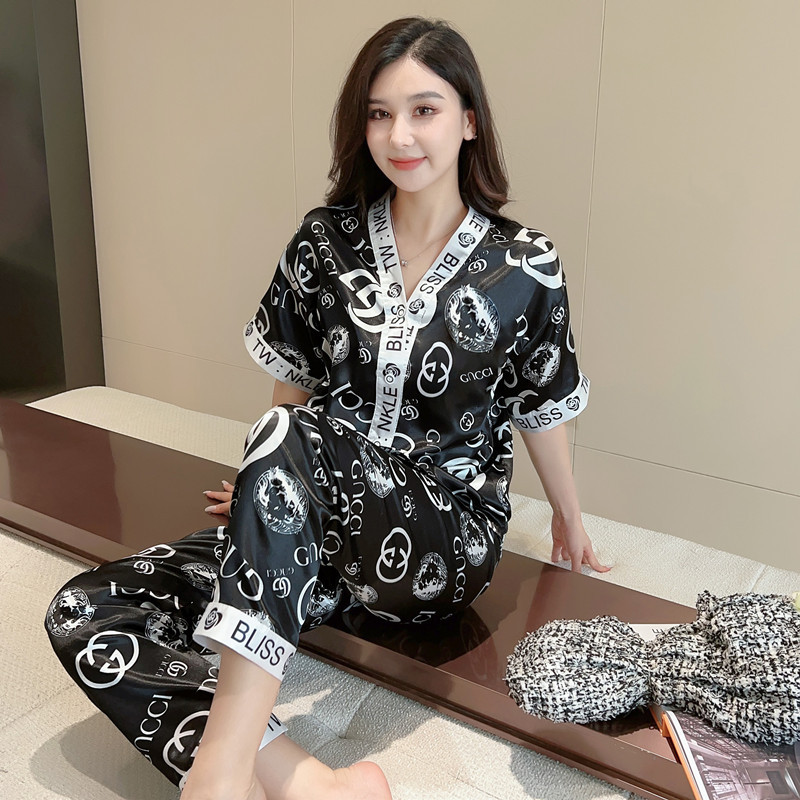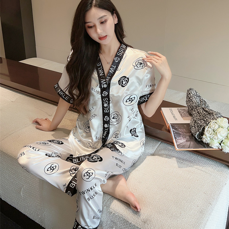 2024 뉴 아이스 실크 잠옷 여성 봄과 여름 고급 반팔 바지 실크 여름 여성 잠옷