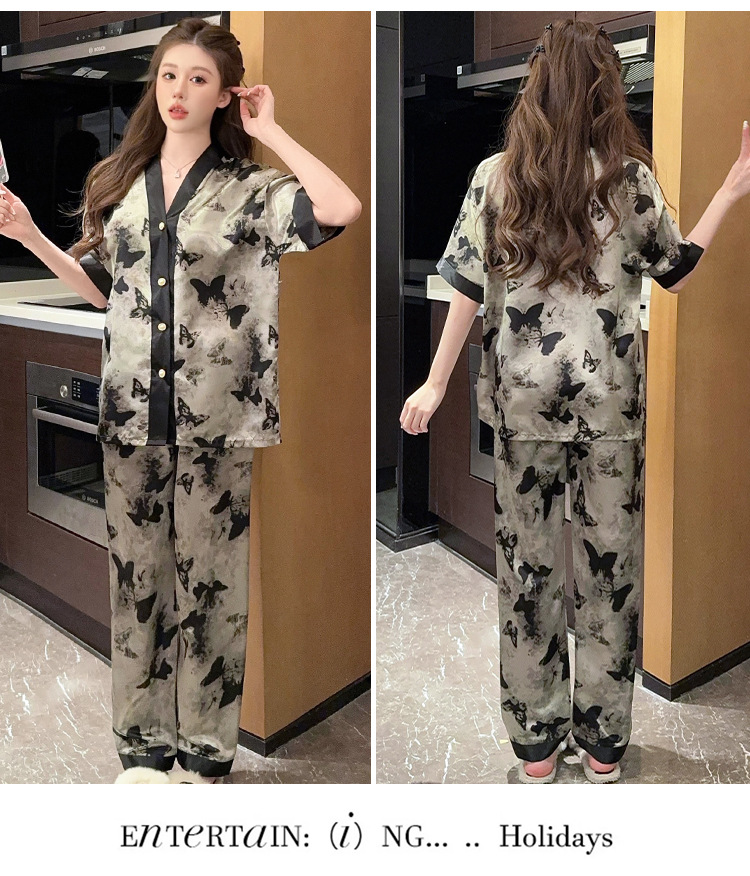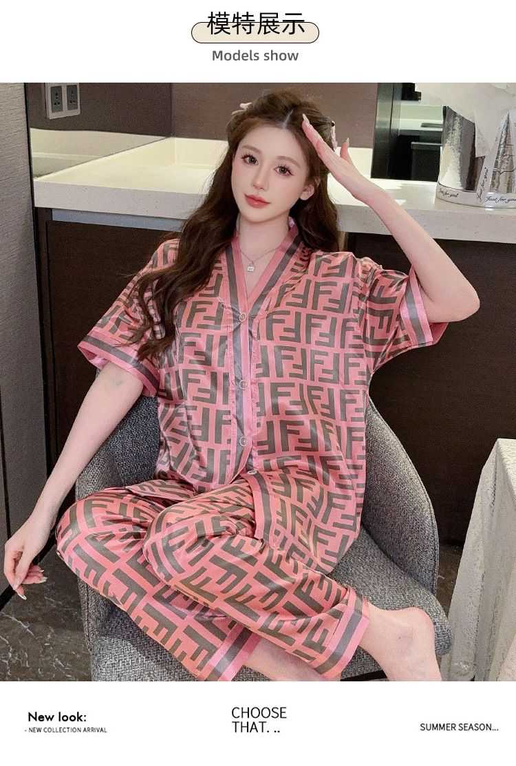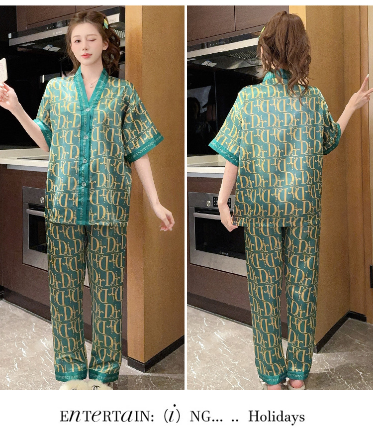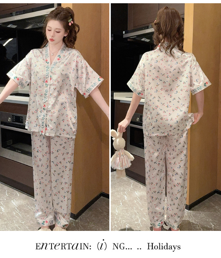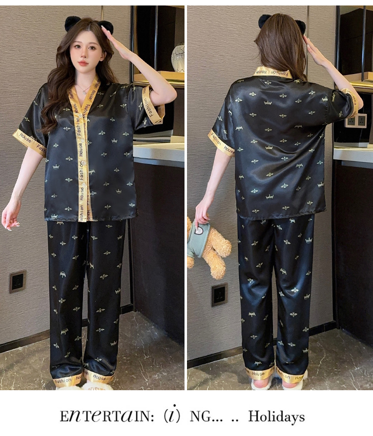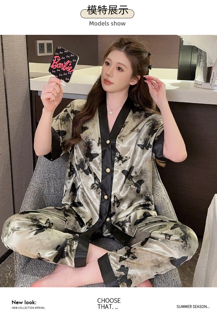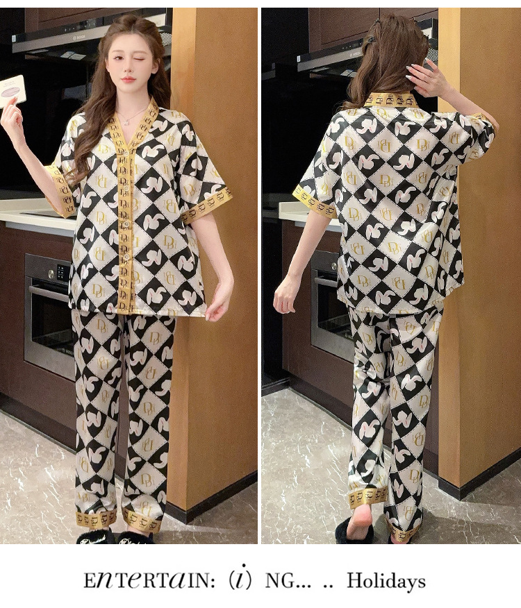 2024 뉴 아이스 실크 잠옷 여성 봄과 여름 고급 반팔 바지 실크 여름 여성 잠옷