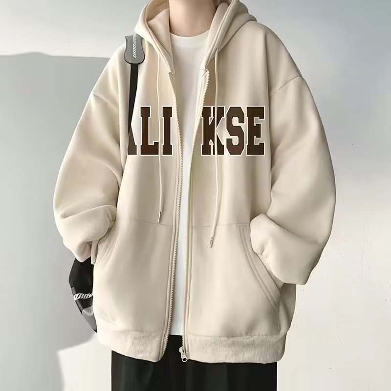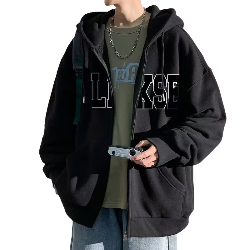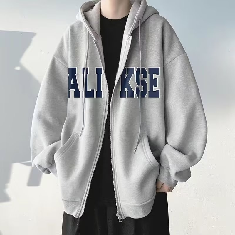 미국 스타일 남성용 봄, 가을, 겨울 후드 집업 스웨트셔츠 트렌디 브랜드 남성 프린트 스웨트셔츠