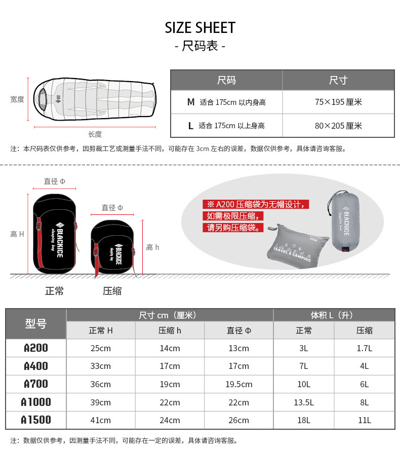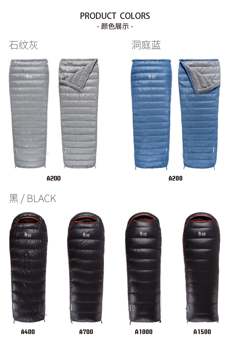블랙 아이스 A400/A700/A1000/A1500 시리즈 오리 다운 성인 싱글 봉투 야외 캠핑 침낭