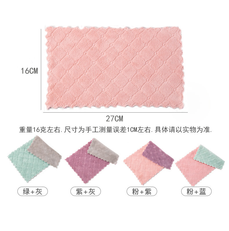 本款抹布现货16*27CM/25*25CM/30*30CM等,正常多片包都是4色混包装,请按整数下单,如果包装有其它要求请联系在线客服,其它尺寸支持定做!