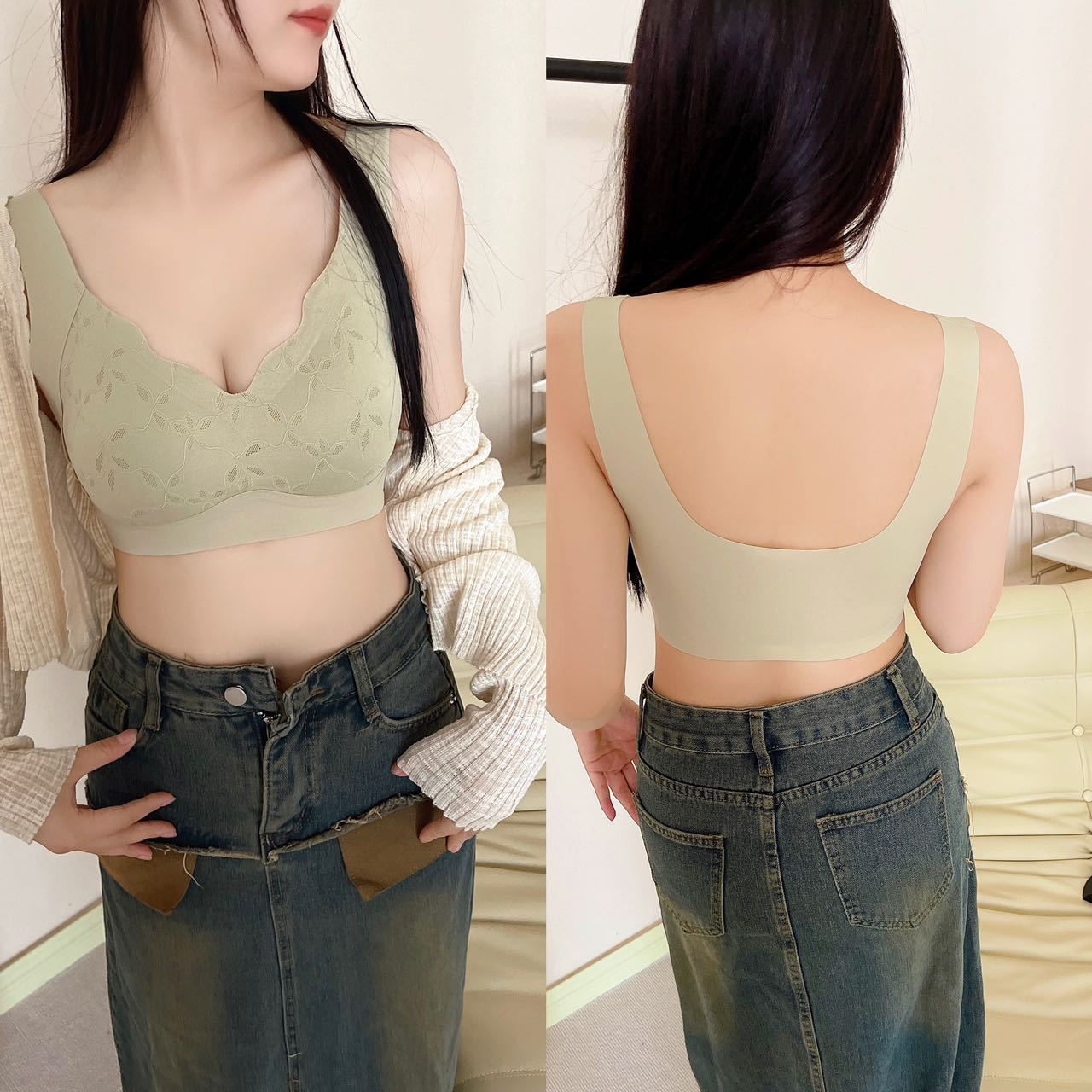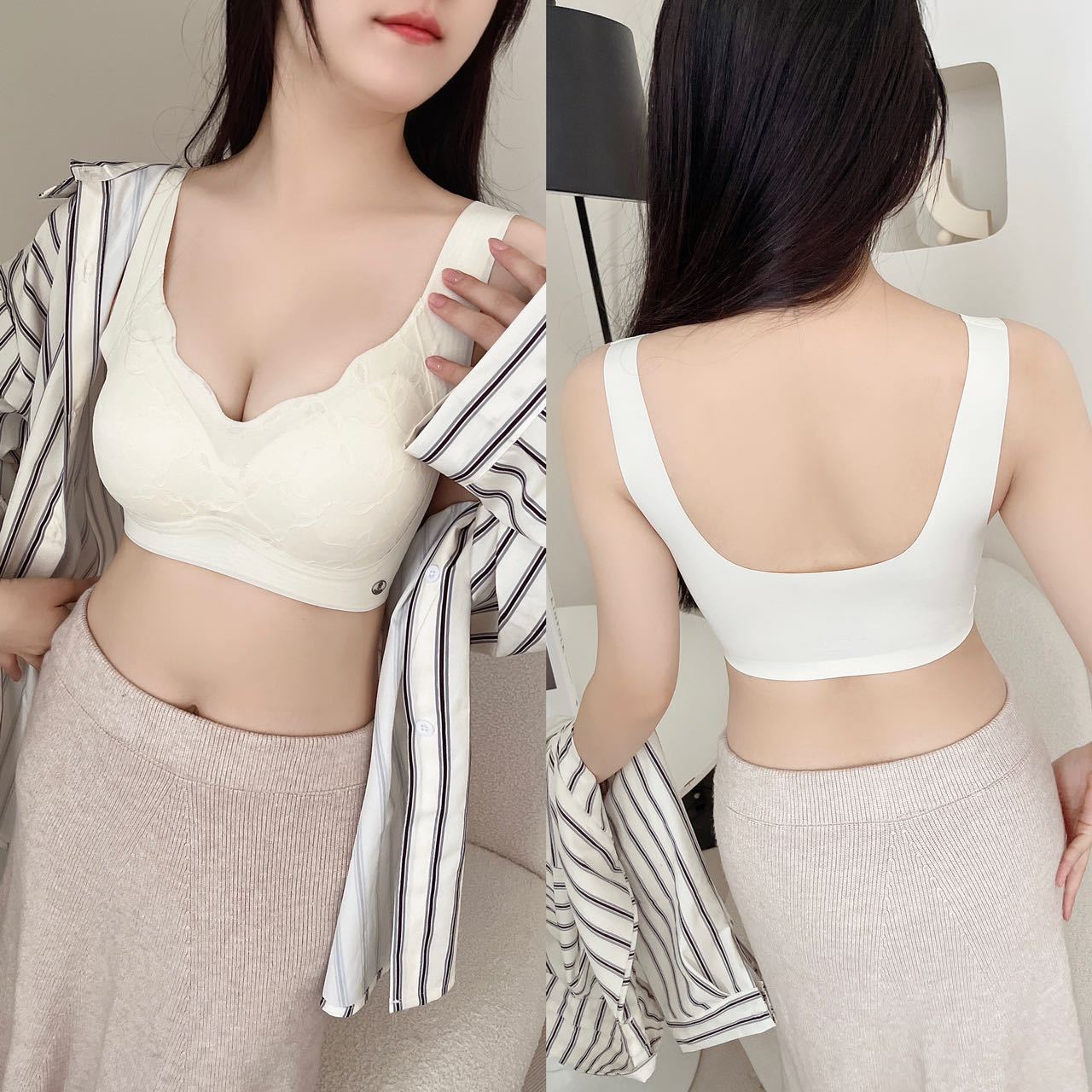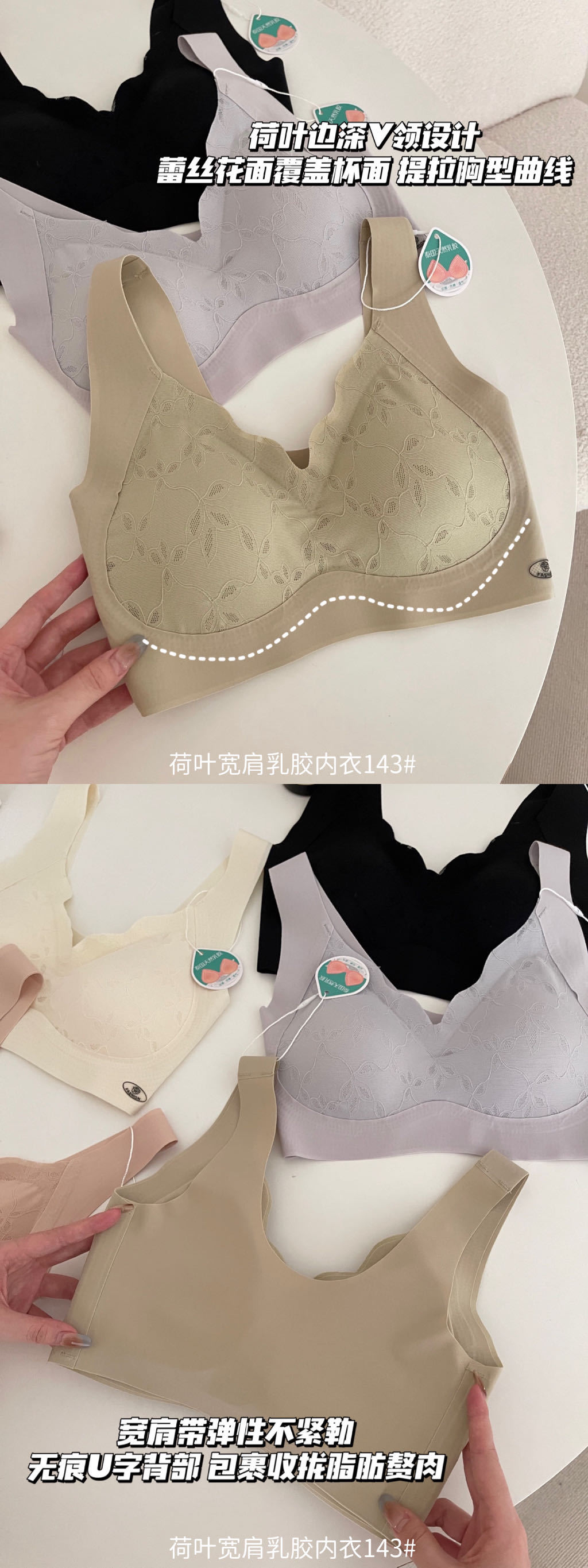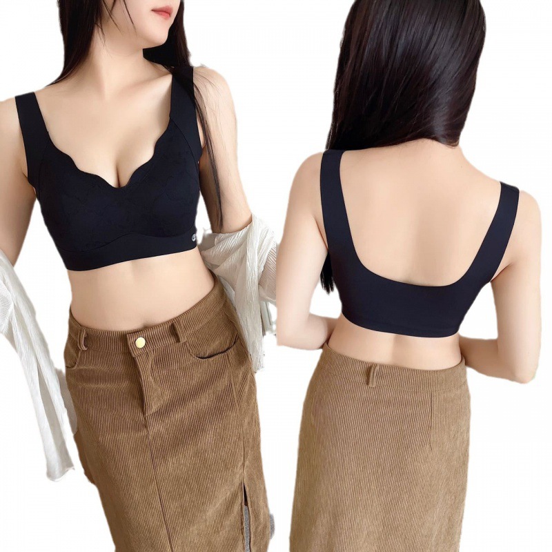 얇은 연꽃 잎 넓은 어깨 원활한 라텍스 속옷 여성 조끼 스타일 풀업 안티 처짐 누드 통기성 푸시 업 브래지어