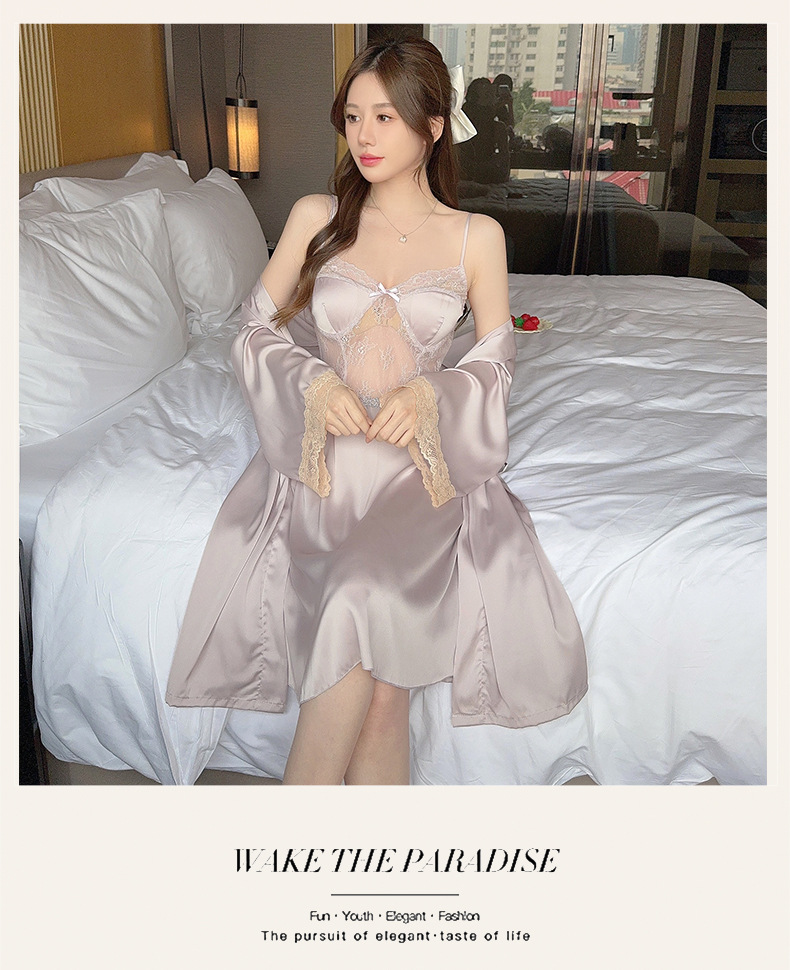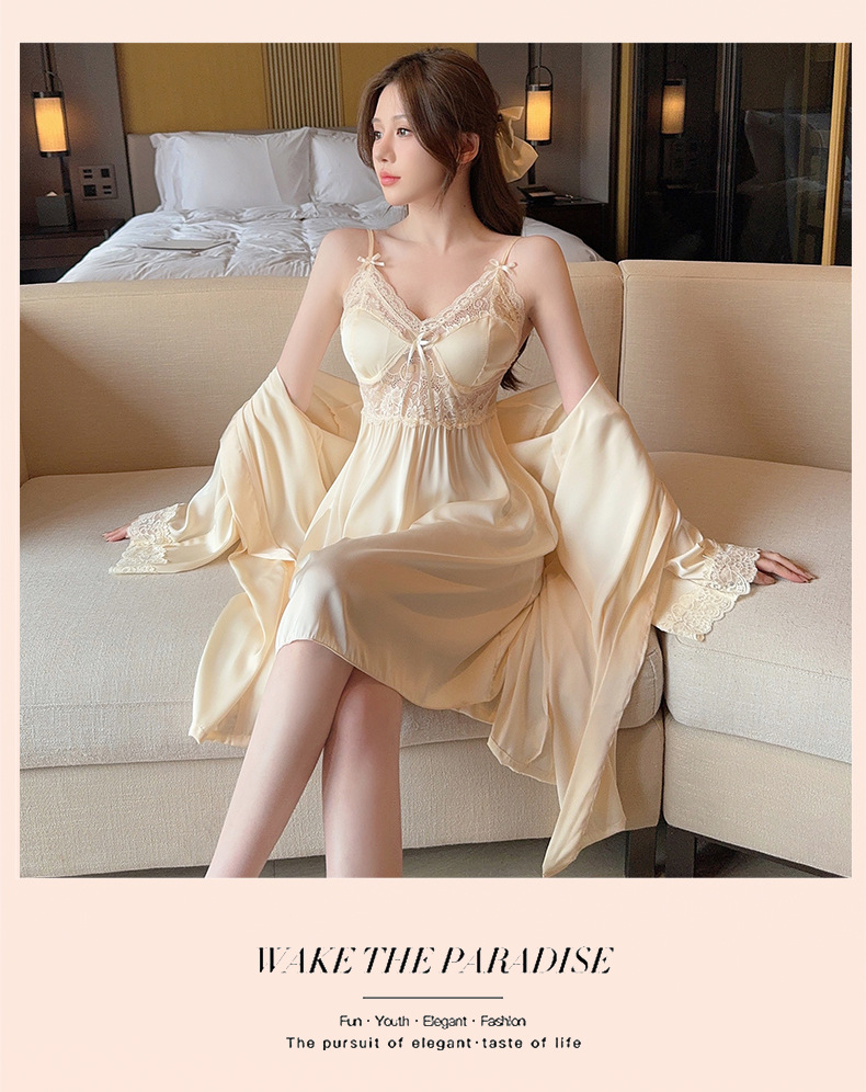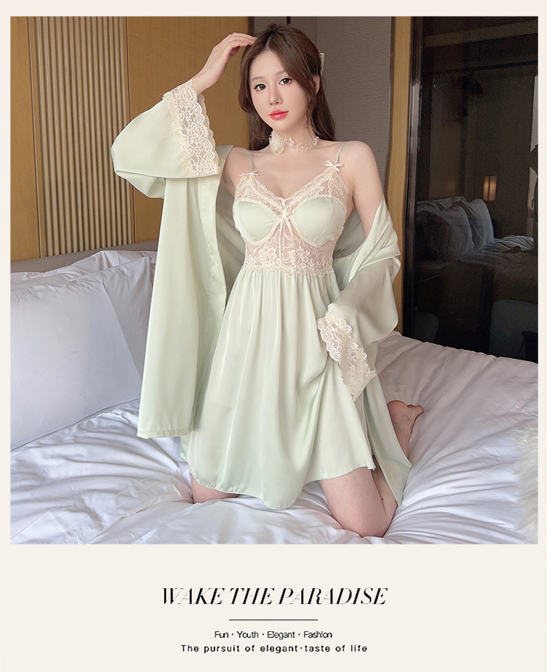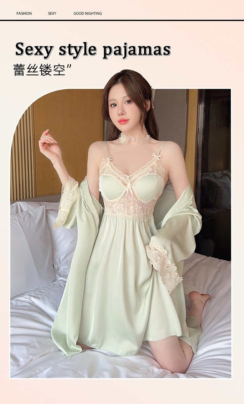 섹시한 봄과 가을 투피스 레이스 서스펜더 잠옷 투피스 여성용 홈웨어 서스펜더 스커트 얇은 세트