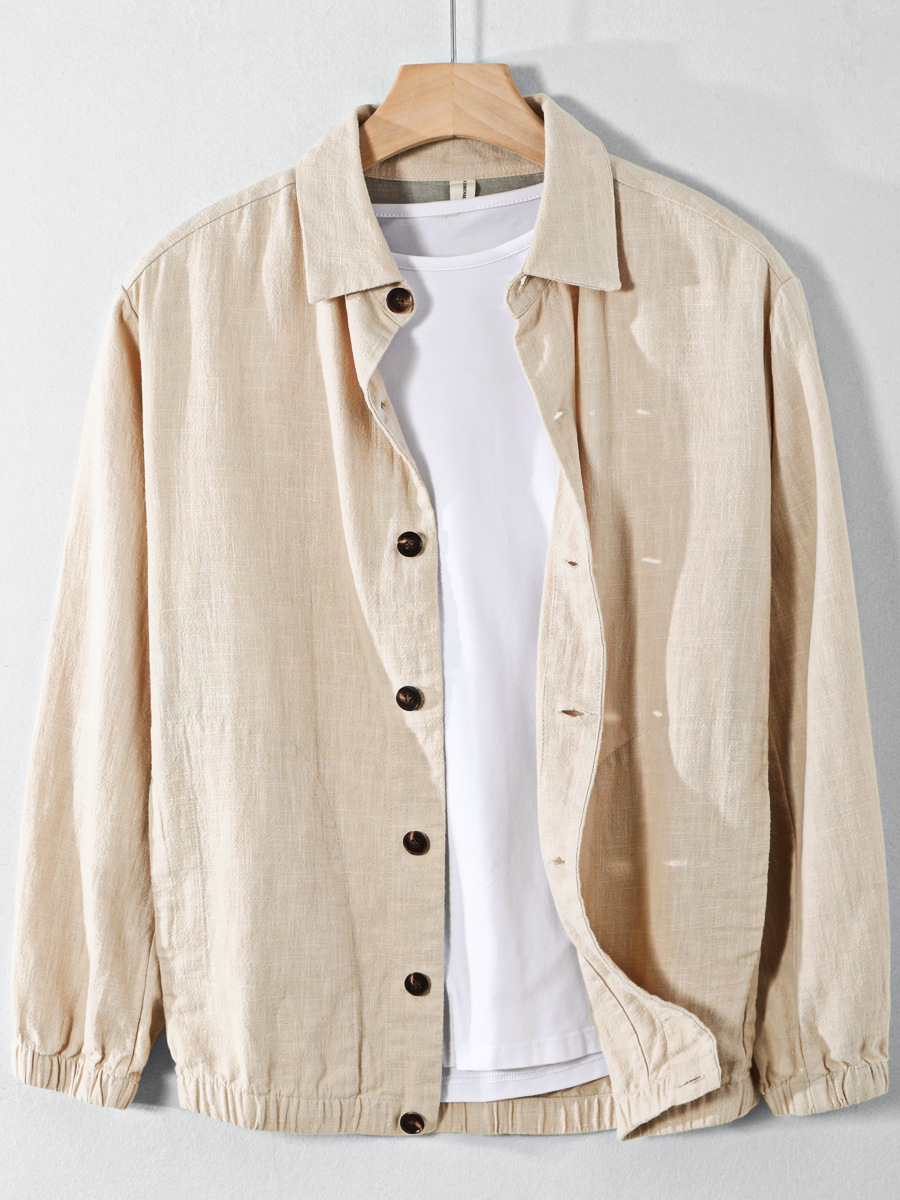 2026 봄 신상 남성 캐주얼 린넨 재킷 캐주얼 솔리드 컬러 면 린넨 라펠 심플 가디건-경춘