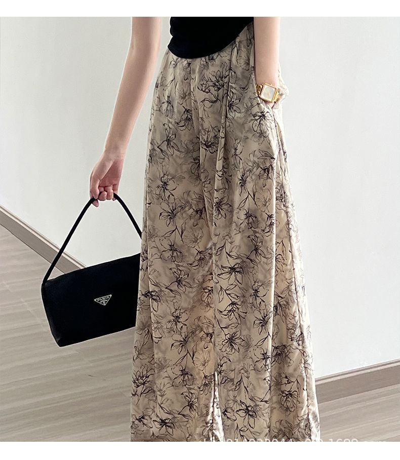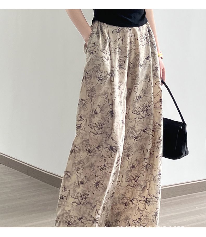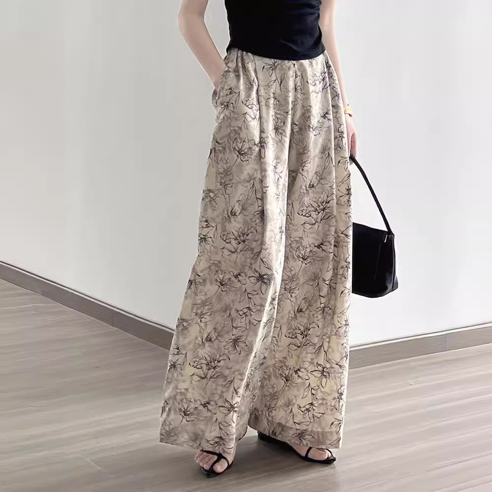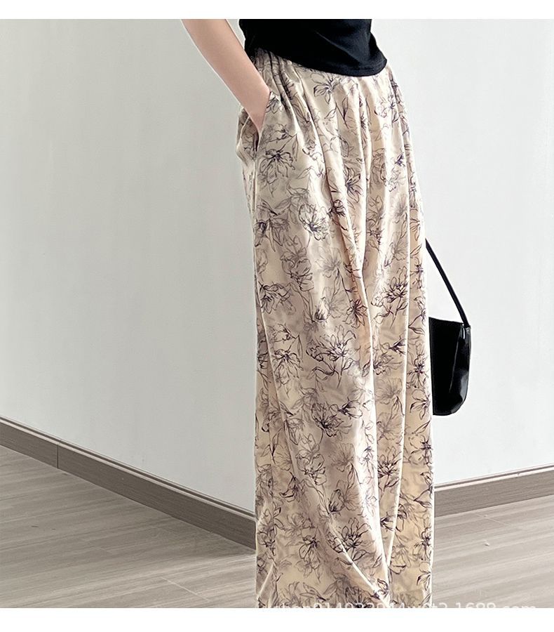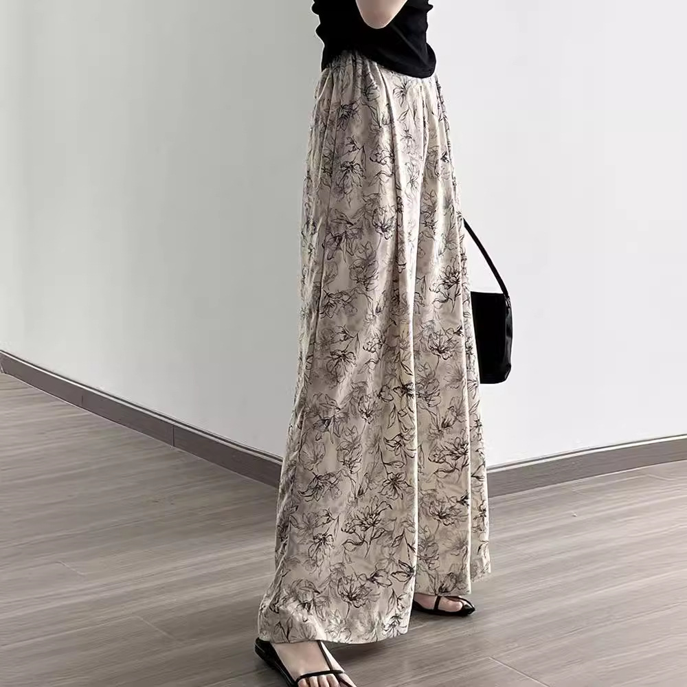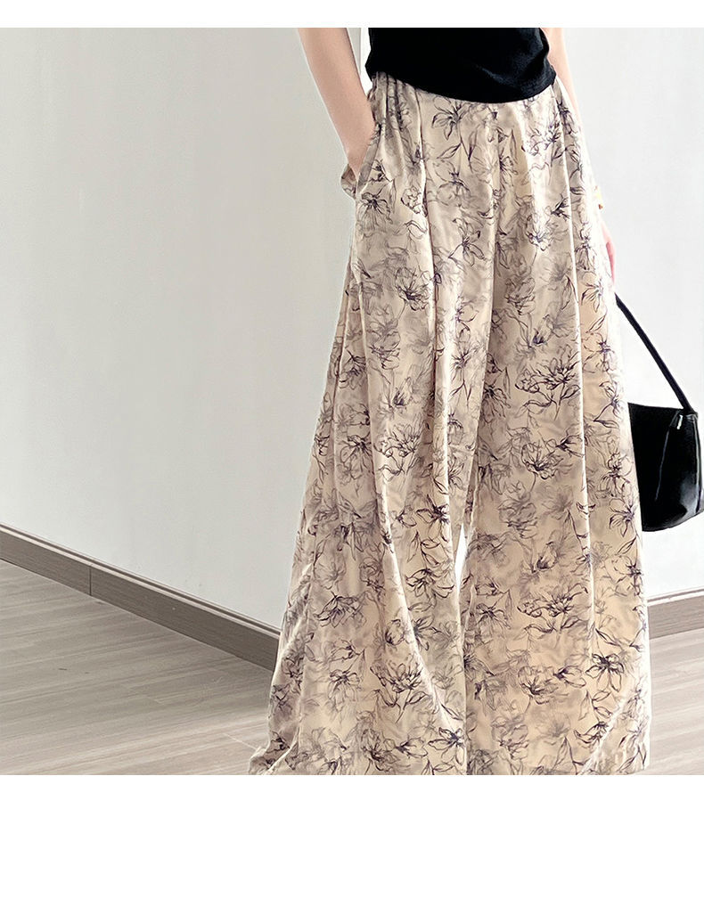 잉크 여성을위한 넓은 다리 바지 인쇄 2024 여름 여성을위한 새로운 높은 허리 슬리밍 얇은 차가운 캐주얼 바지