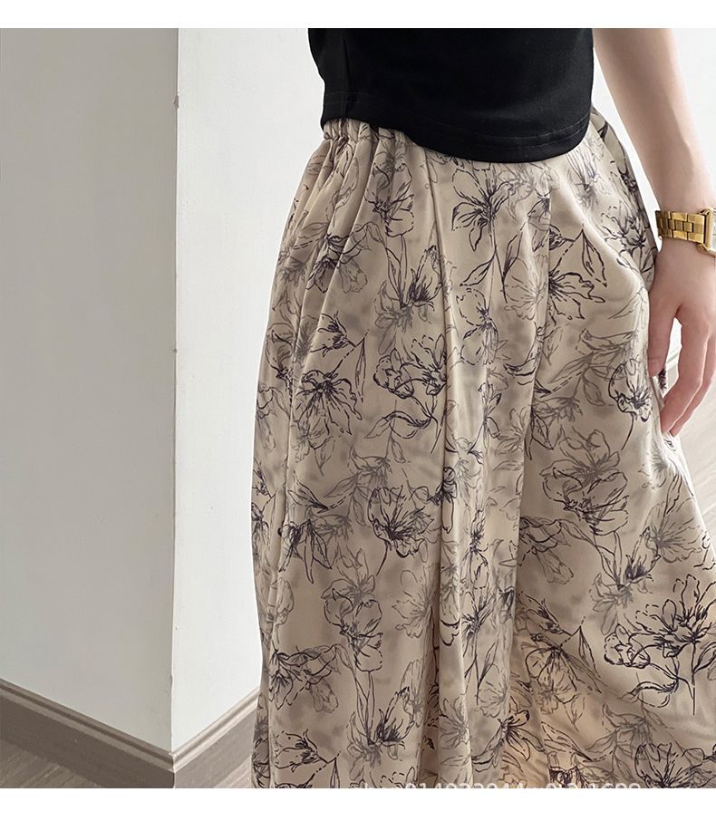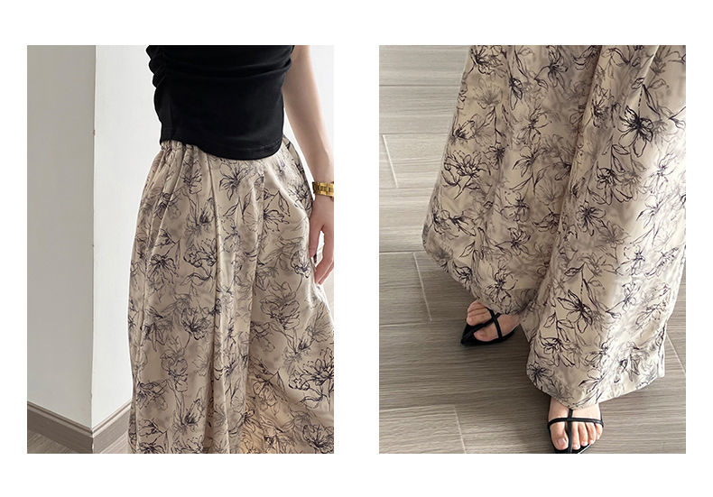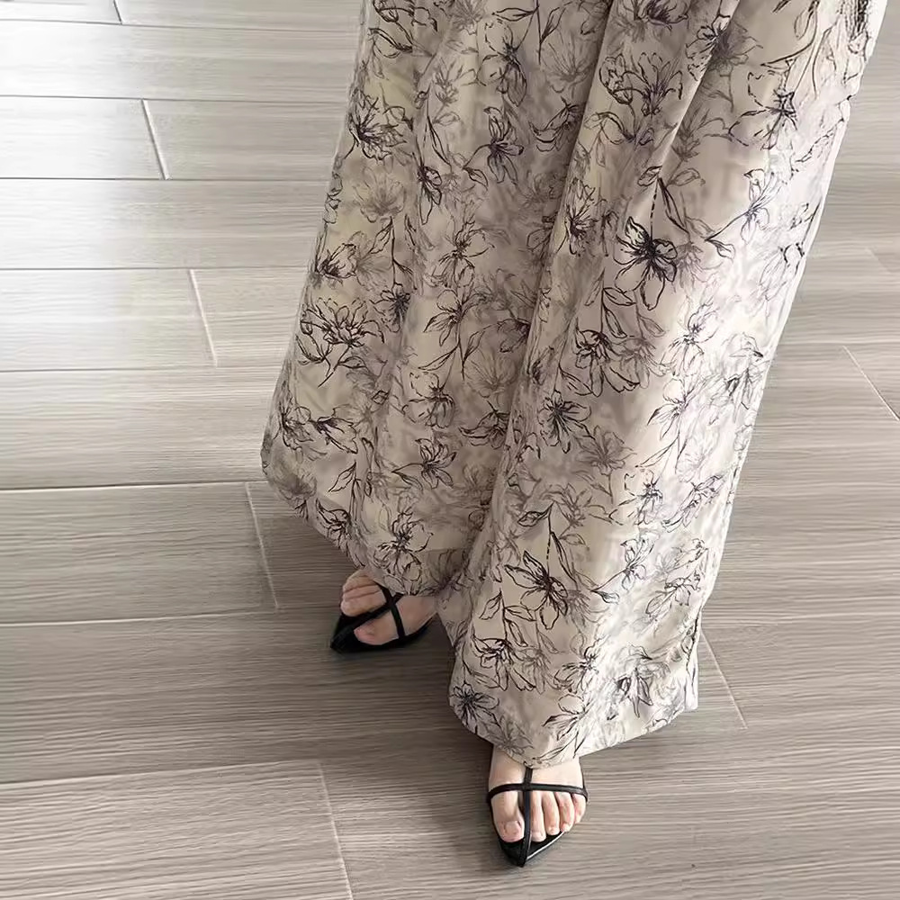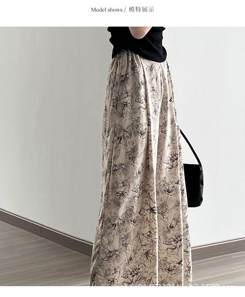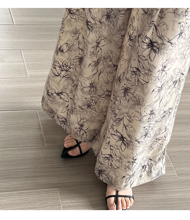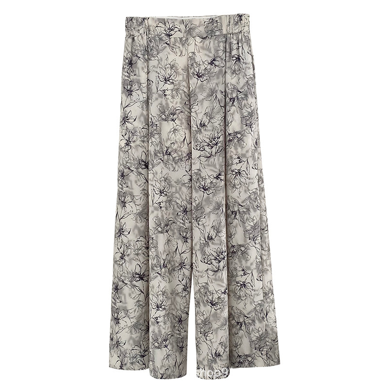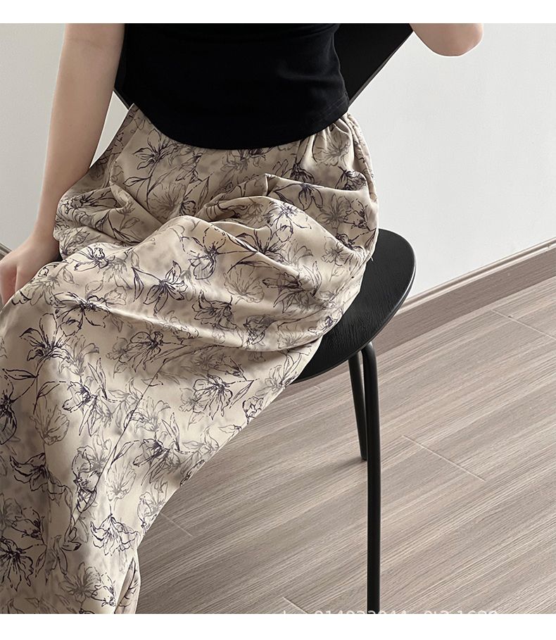 잉크 여성을위한 넓은 다리 바지 인쇄 2024 여름 여성을위한 새로운 높은 허리 슬리밍 얇은 차가운 캐주얼 바지