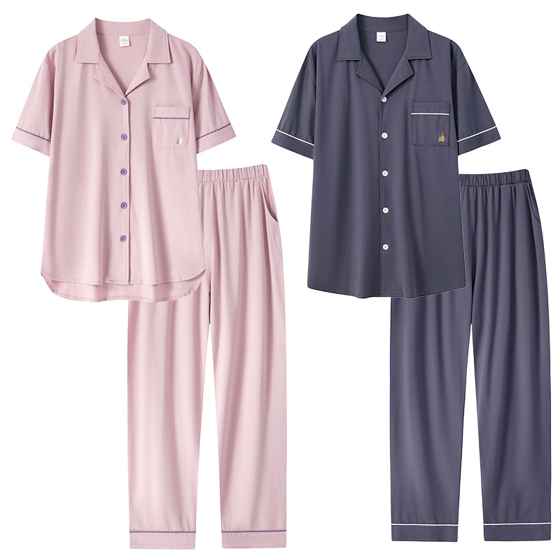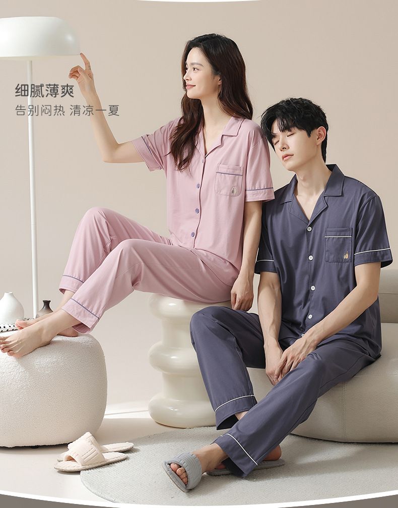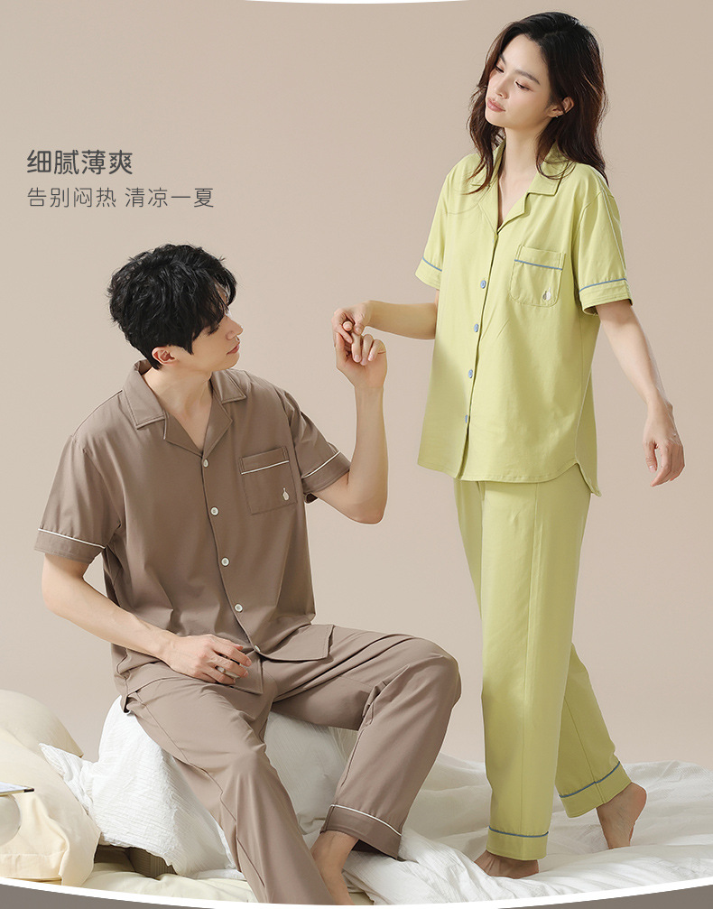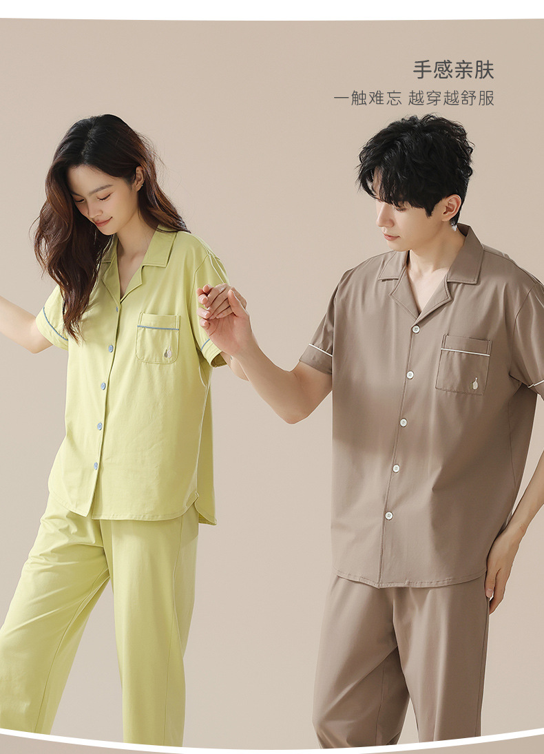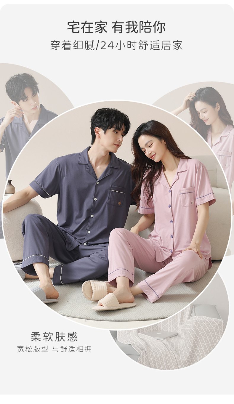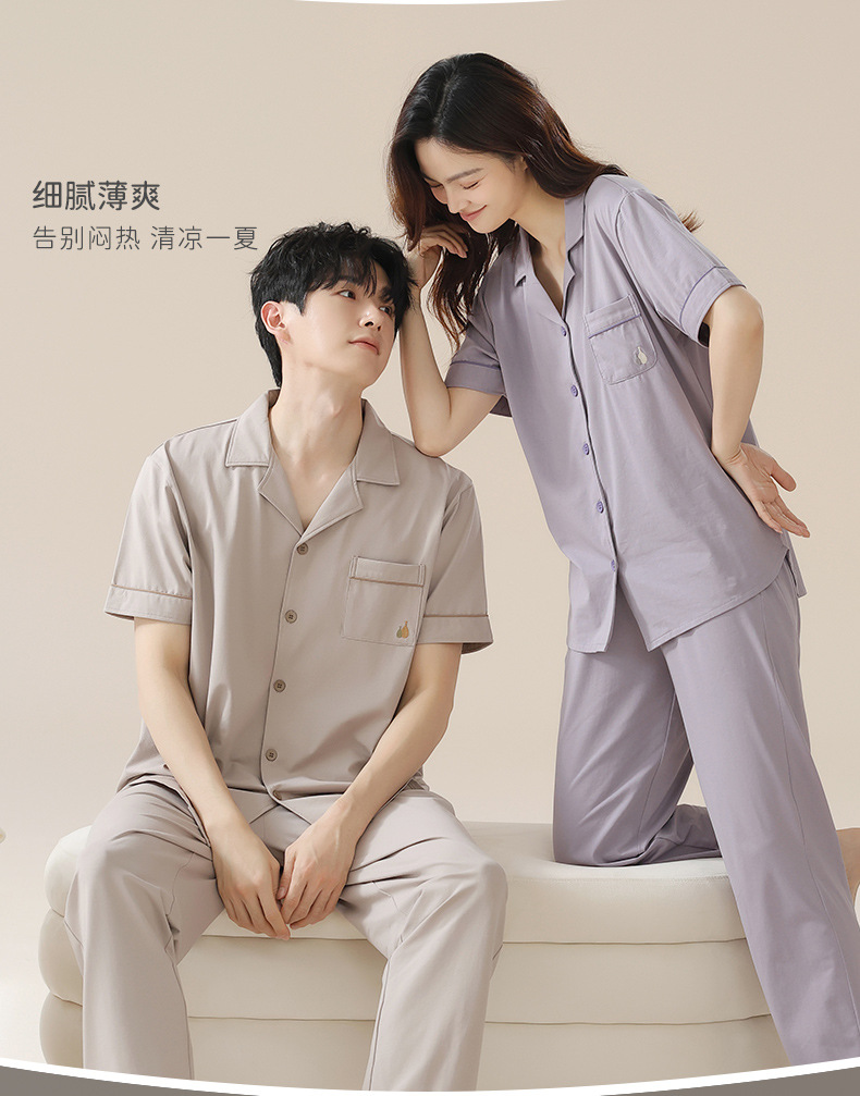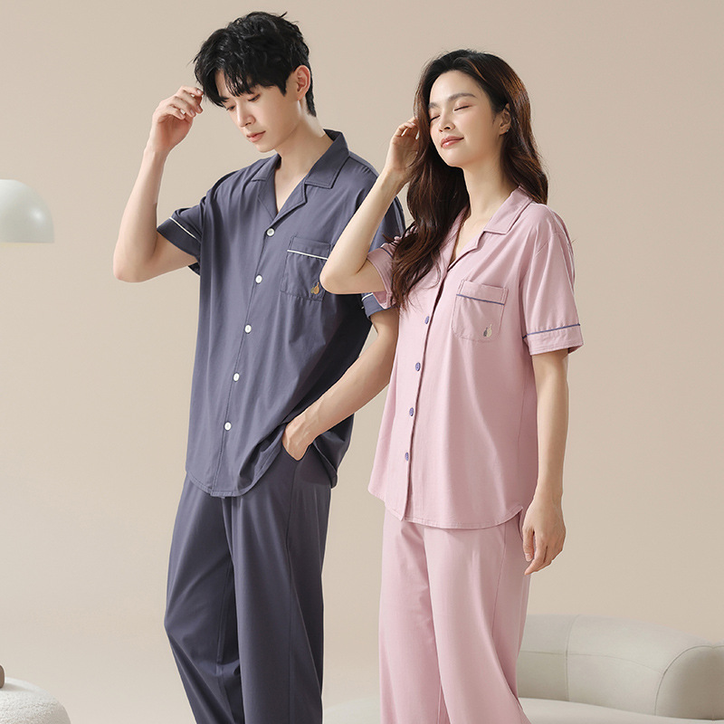 커플 잠옷 여름 얇은 순면 느슨한 대형 여성 잠옷은 여름 남성 순면 가정복 외부에 착용 가능