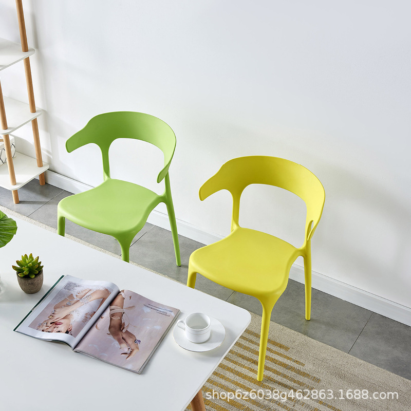간단한 두꺼운 북유럽 뿔 의자 작은 등받이 게으른 레저 가정용 플라스틱 의자