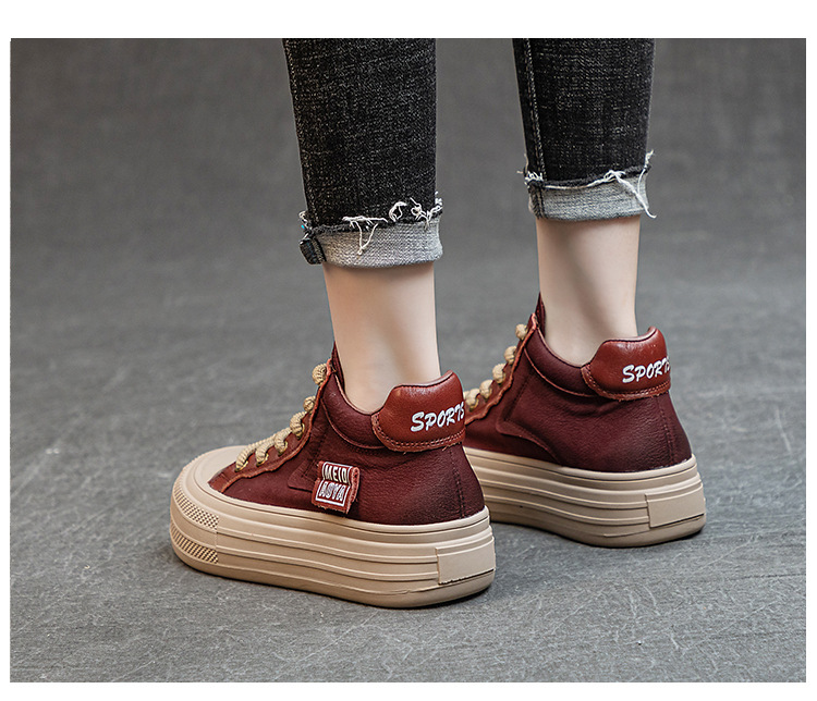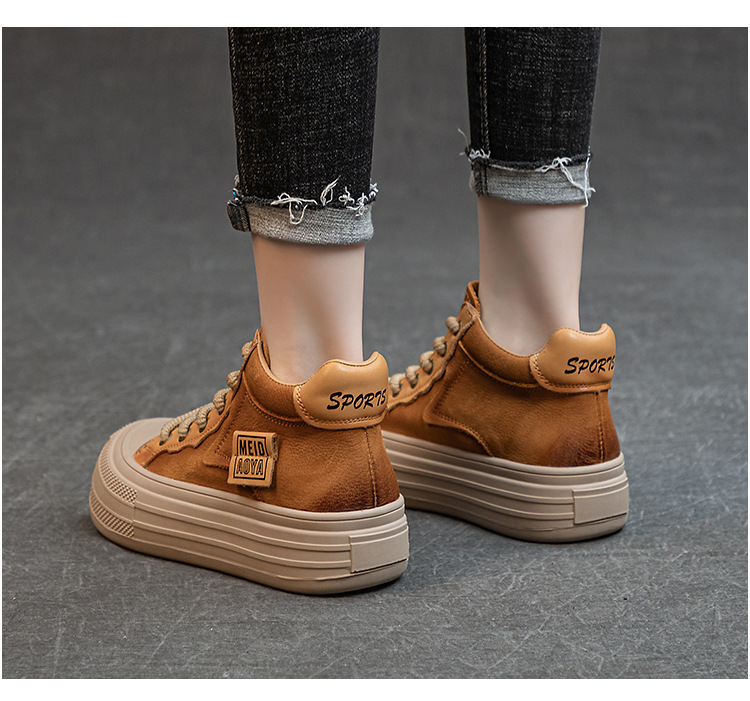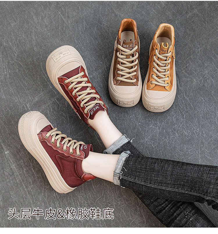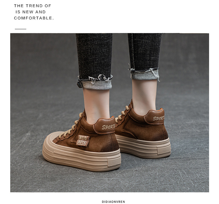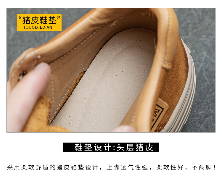 가을과 겨울의 새로운 복고풍 수제 여성 신발 탑 레이어 소 가죽 짧은 부츠 잘 생긴 인형 헤드 플랫 힐 부드러운 바닥 마틴 부츠