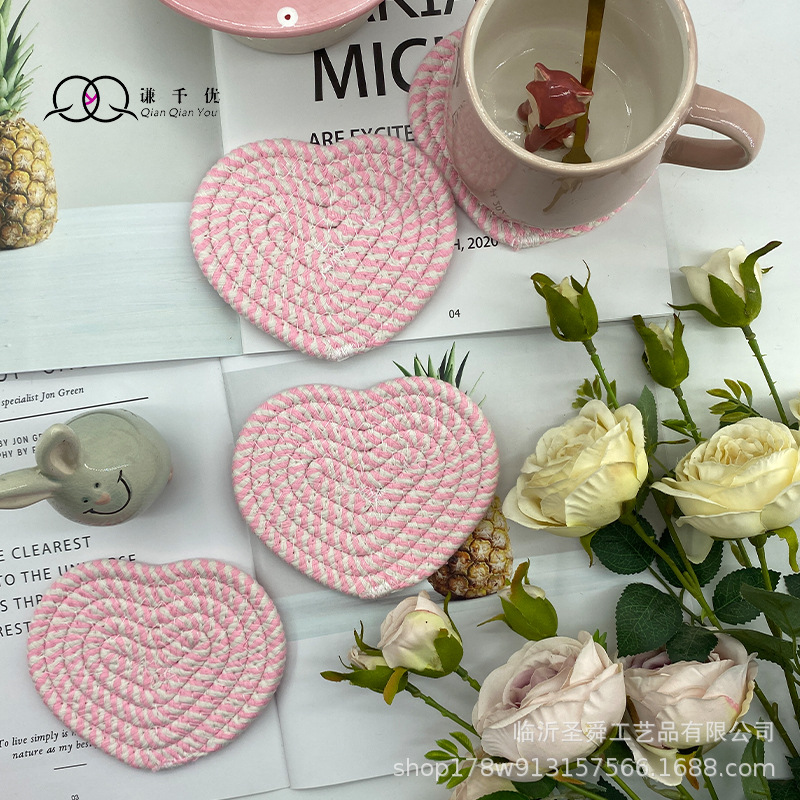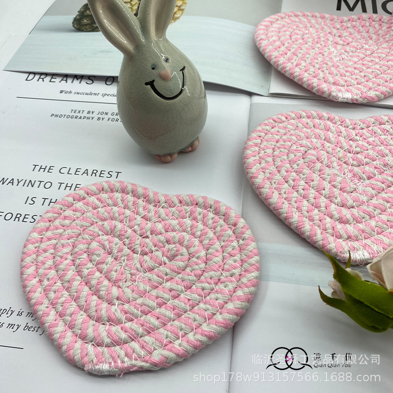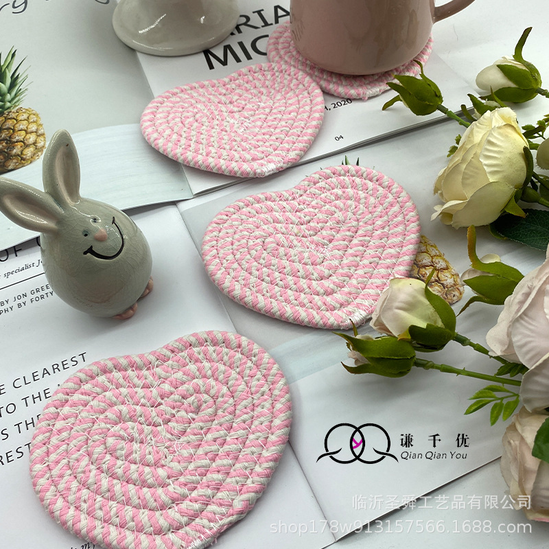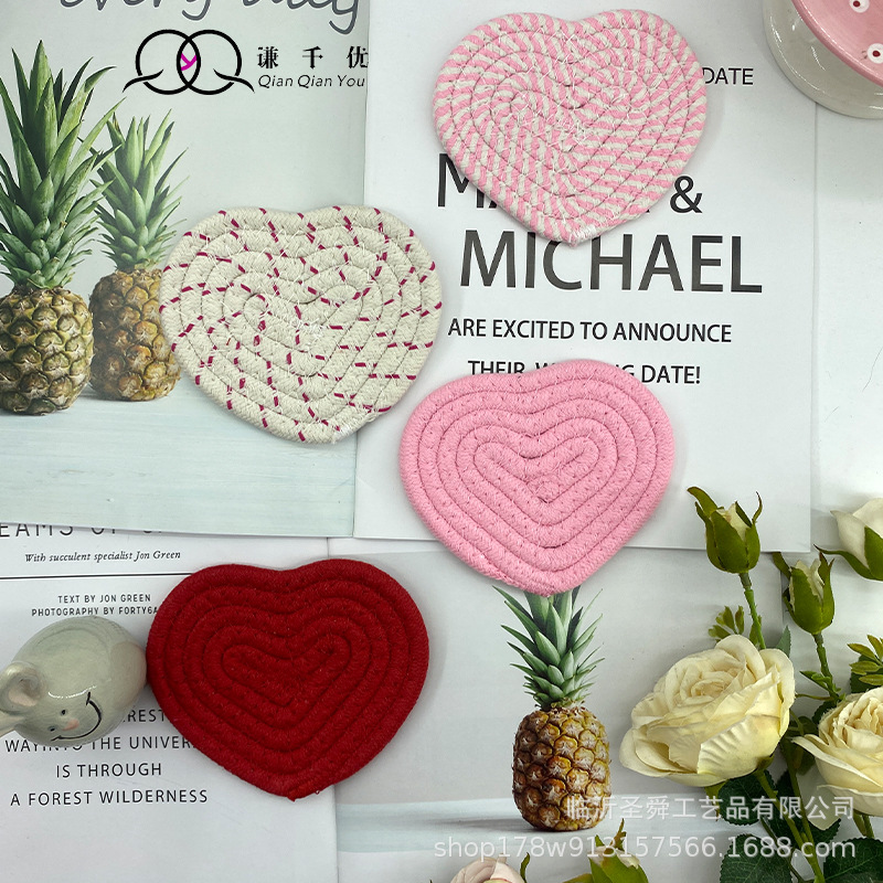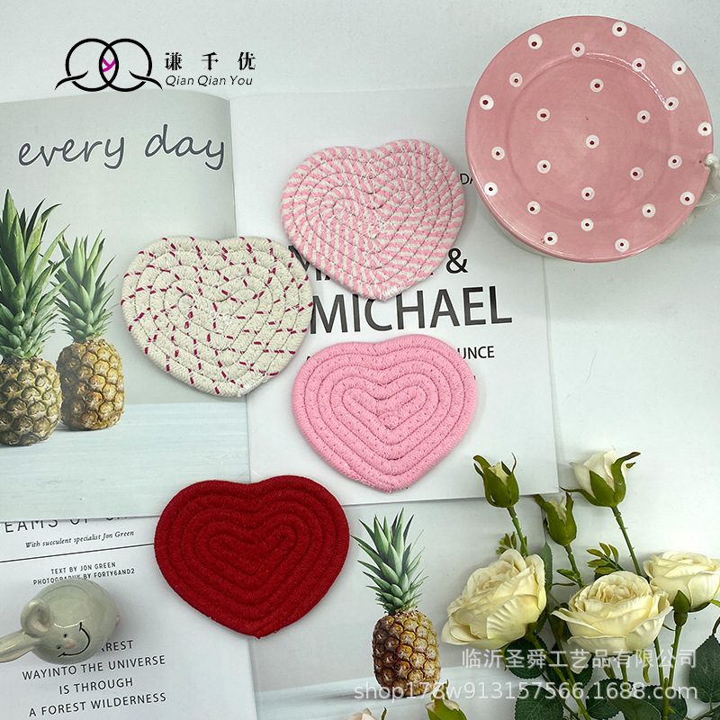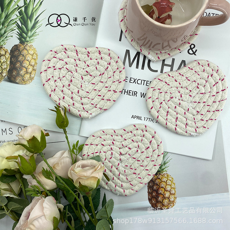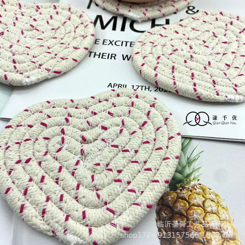 수제 하트 모양의 단열재 코스터 북유럽 간단한 냄비 매트 면사 짠 코튼 로프 보울 매트 코스터 안티 스케일 세트