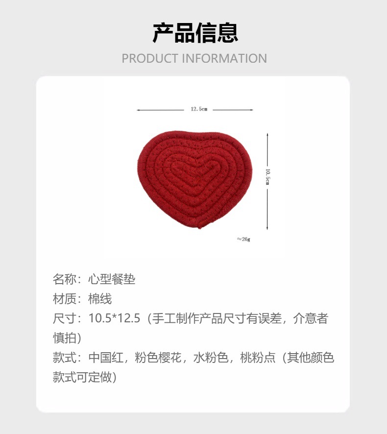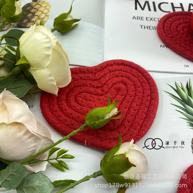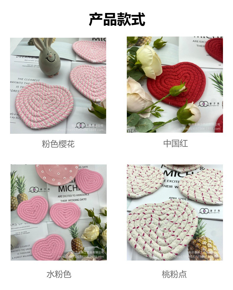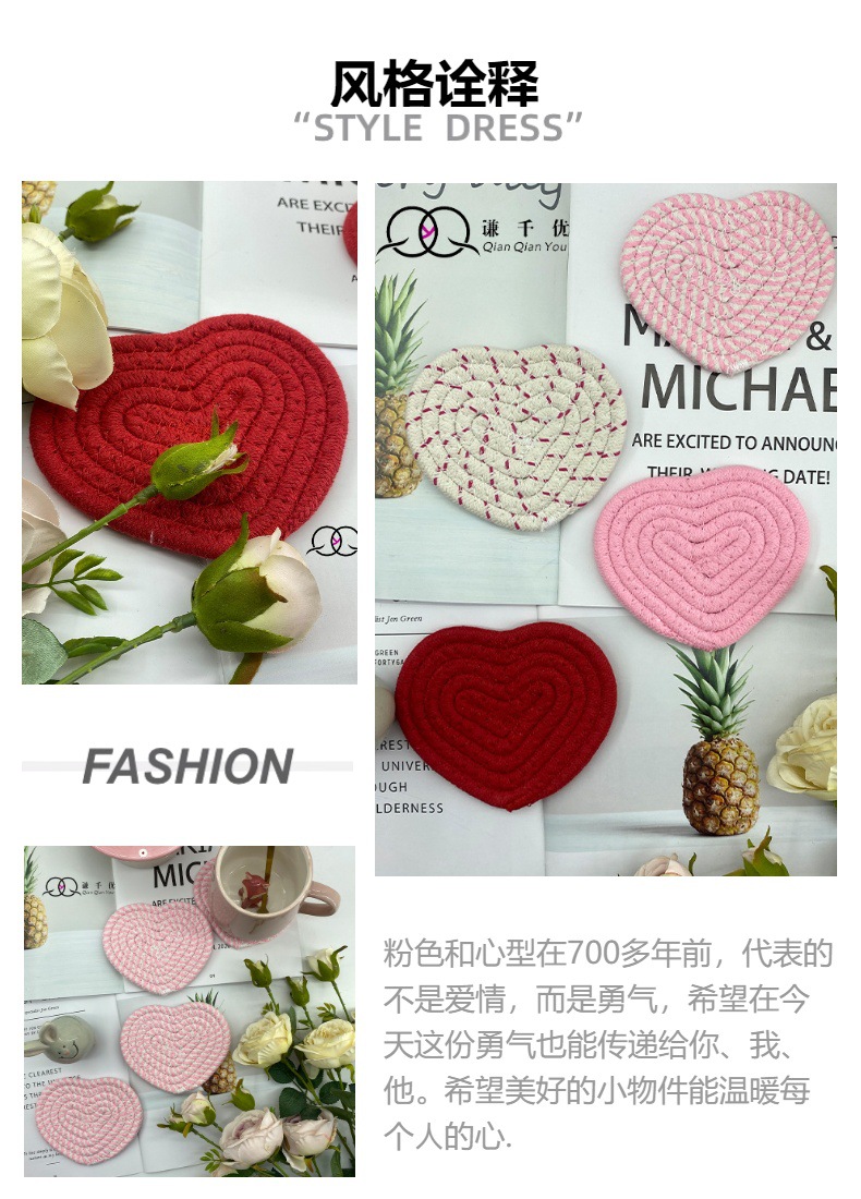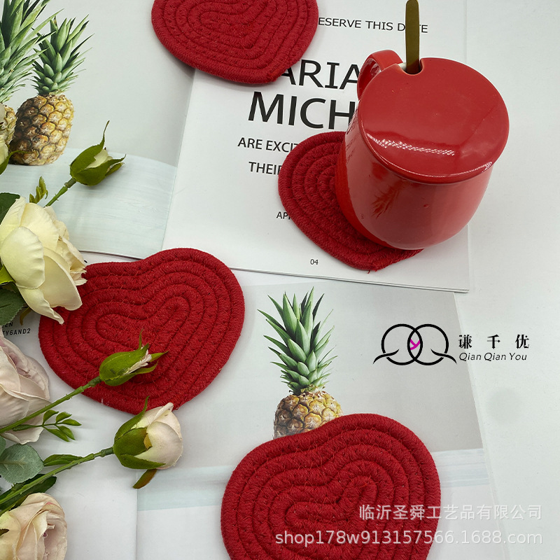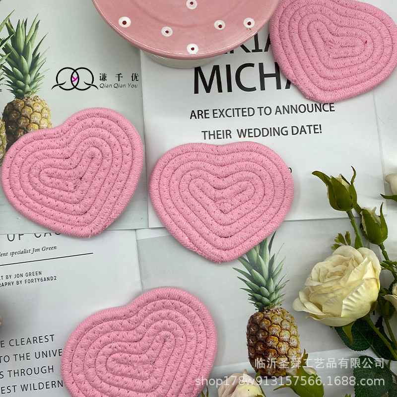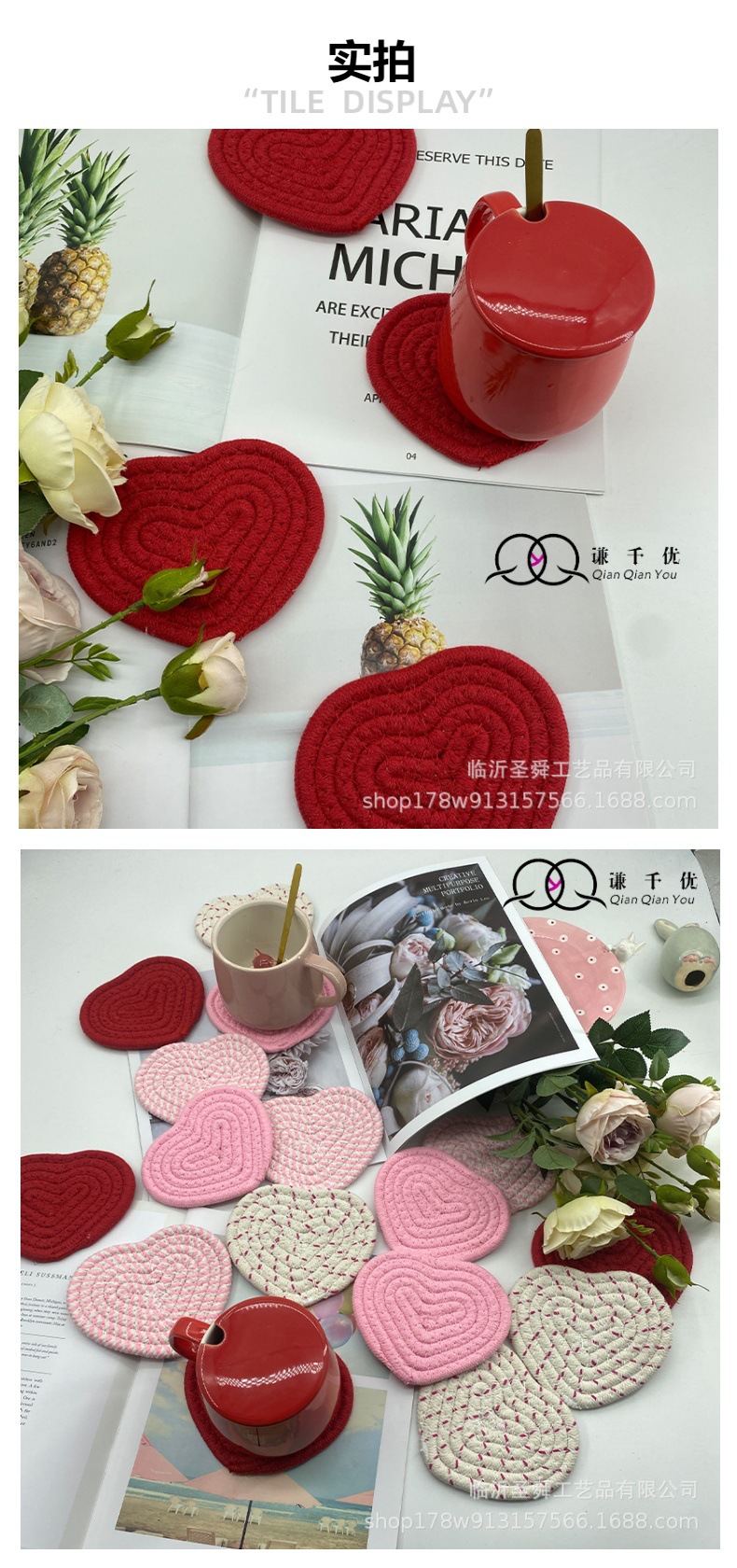 수제 하트 모양의 단열재 코스터 북유럽 간단한 냄비 매트 면사 짠 코튼 로프 보울 매트 코스터 안티 스케일 세트