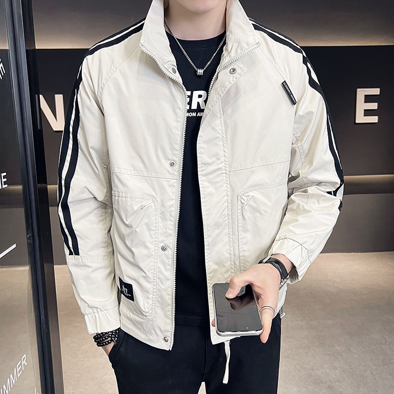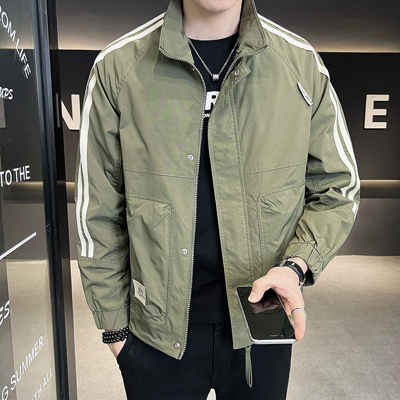 봄과 가을 남성 코트 트렌디 한 올 매치 남성복 2024 새로운 작업복 컬러 매칭 탑 옷 파일럿 재킷 남성