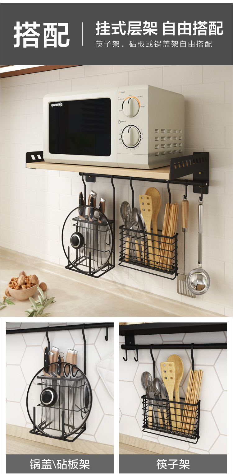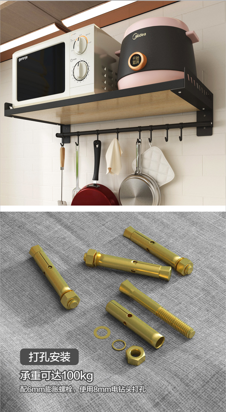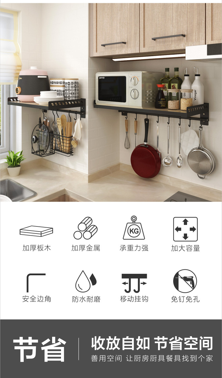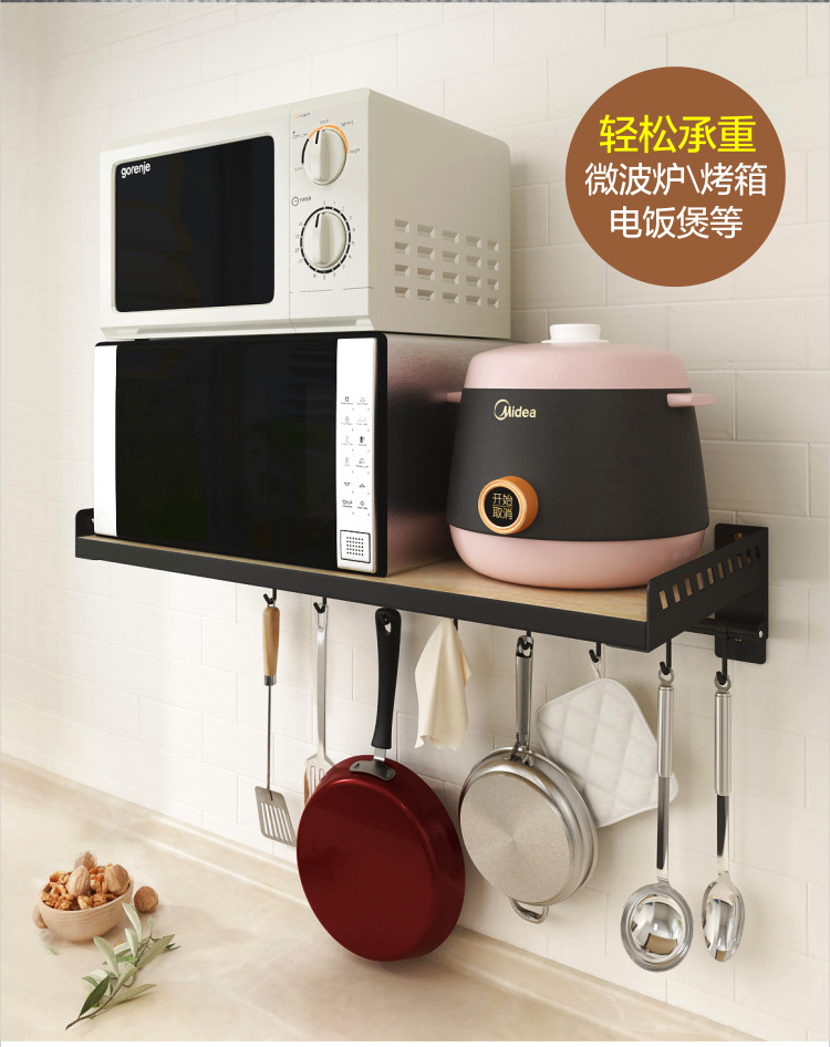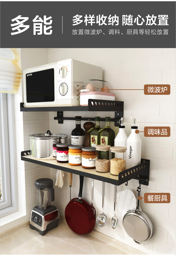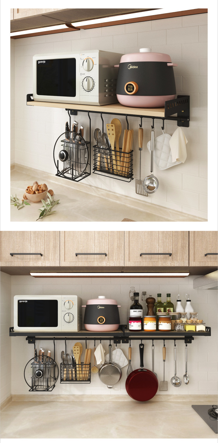 주방 수납 선반 벽걸이형 무타공 전자레인지 선반 오븐 거치대 냄비 및 양념 보관 선반