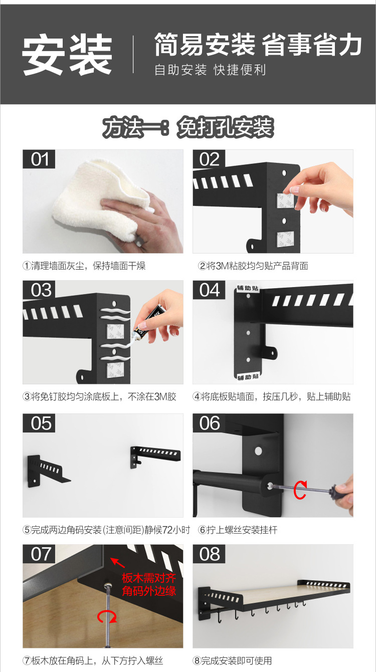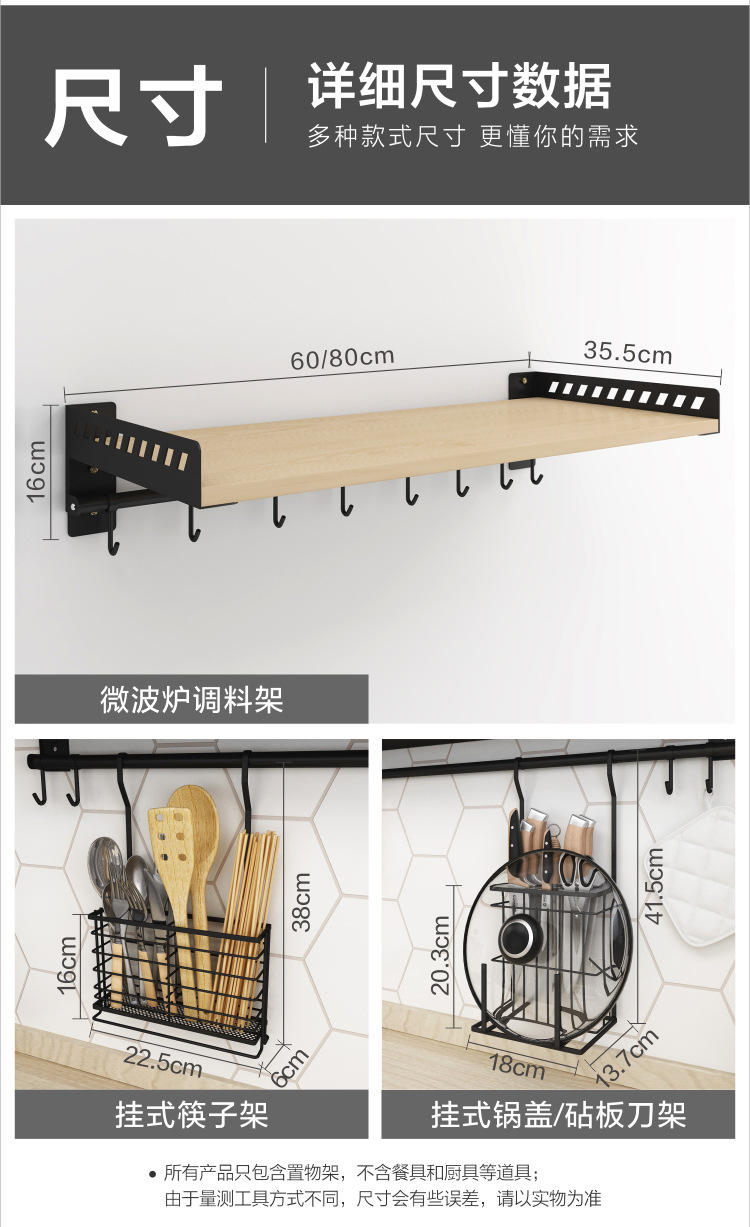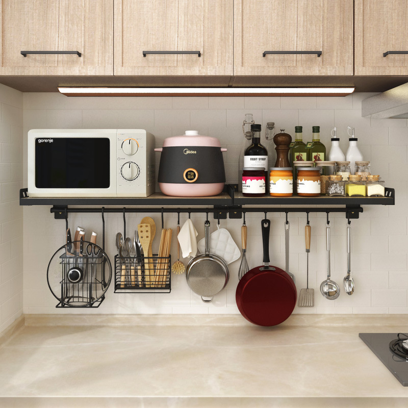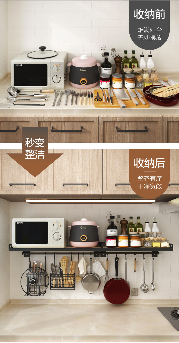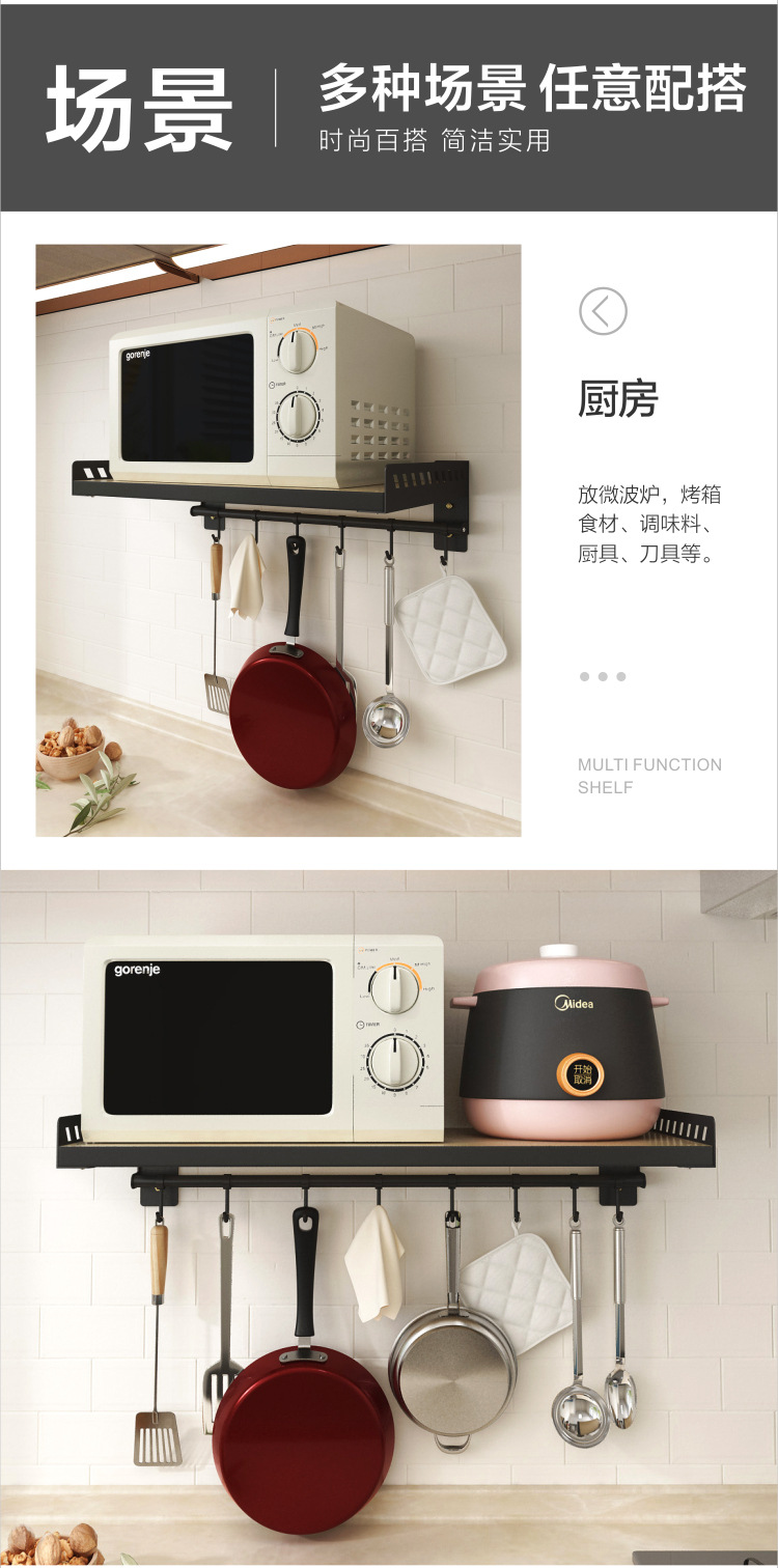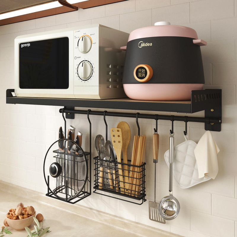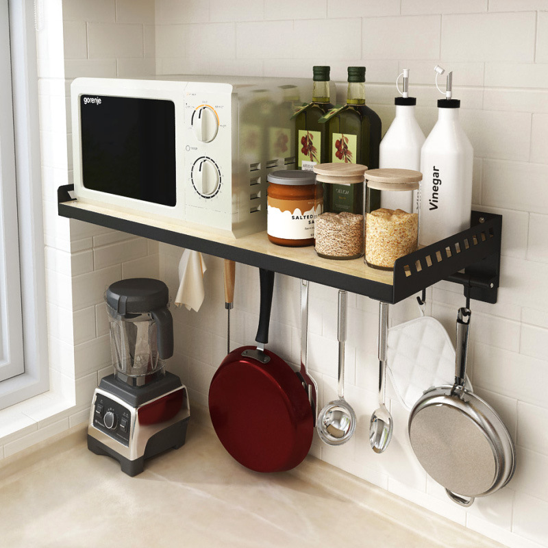 주방 수납 선반 벽걸이형 무타공 전자레인지 선반 오븐 거치대 냄비 및 양념 보관 선반