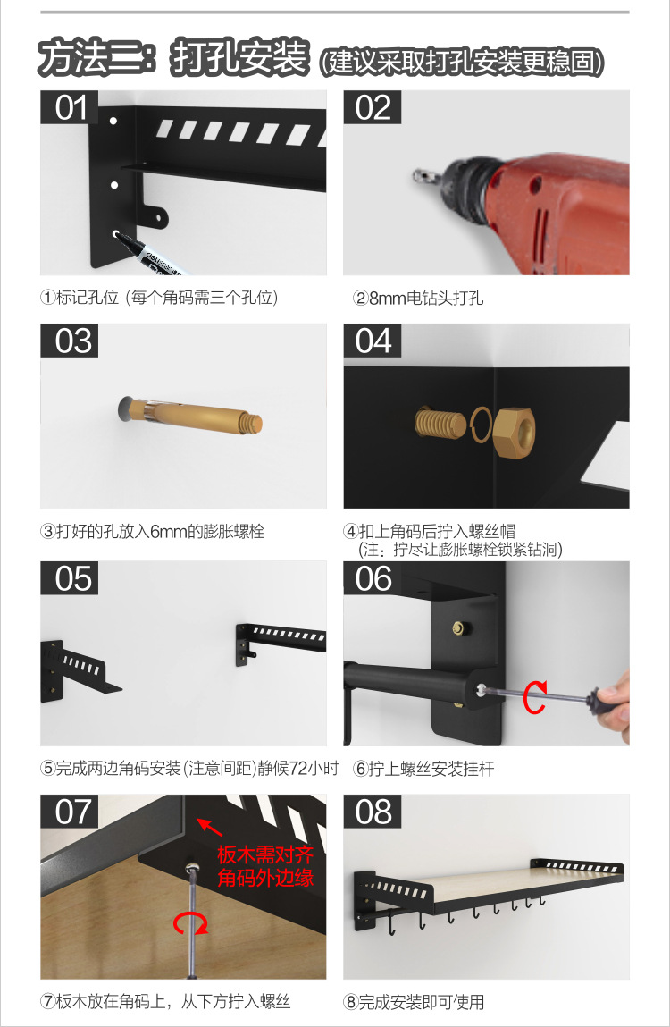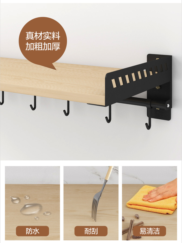 80CM 목재 선반 + 3 후크 + 커팅 보드 나이프 홀더 + 젓가락 홀더