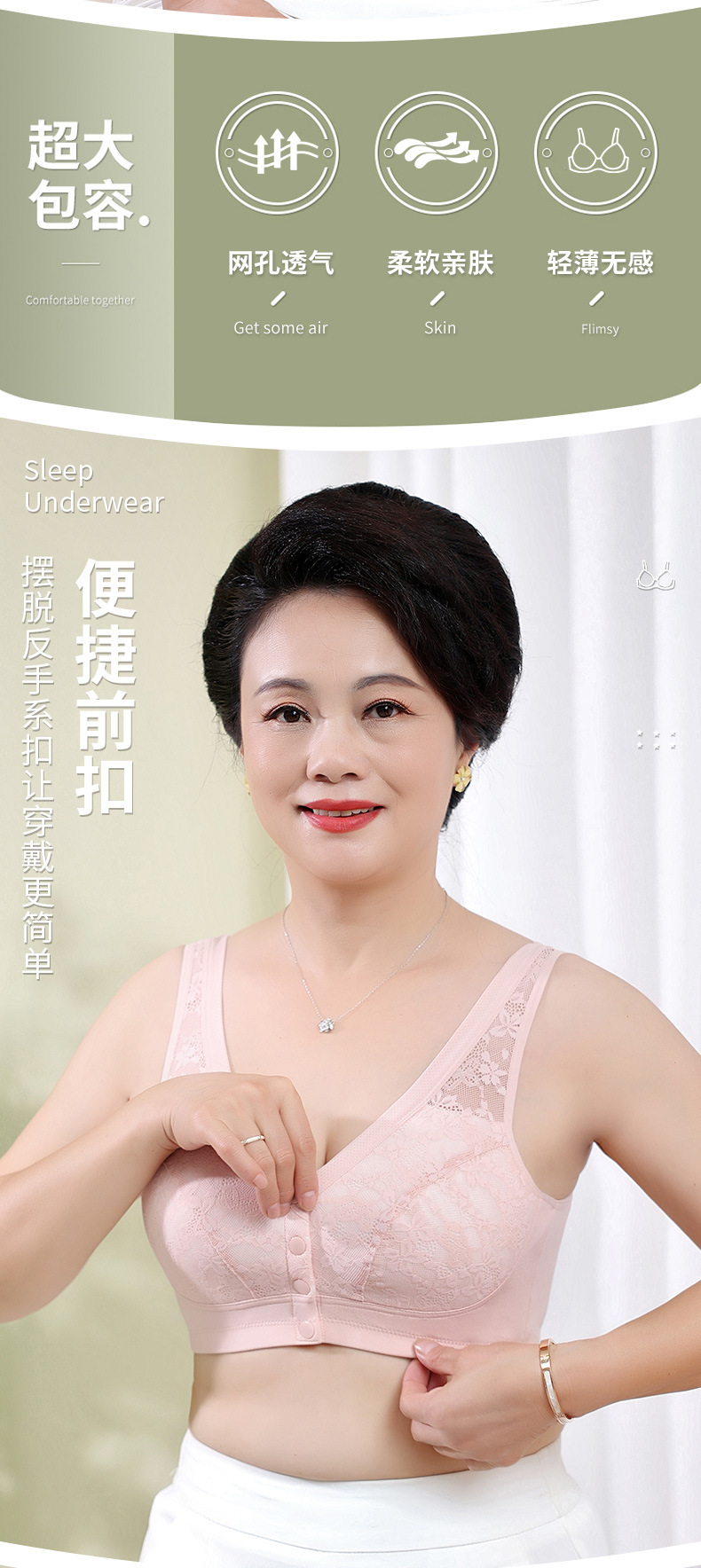 2026년 신형 중노년 여성용 앞후크 조끼형 통기성 브라, 얇은 무선 편안한 속옷 도매