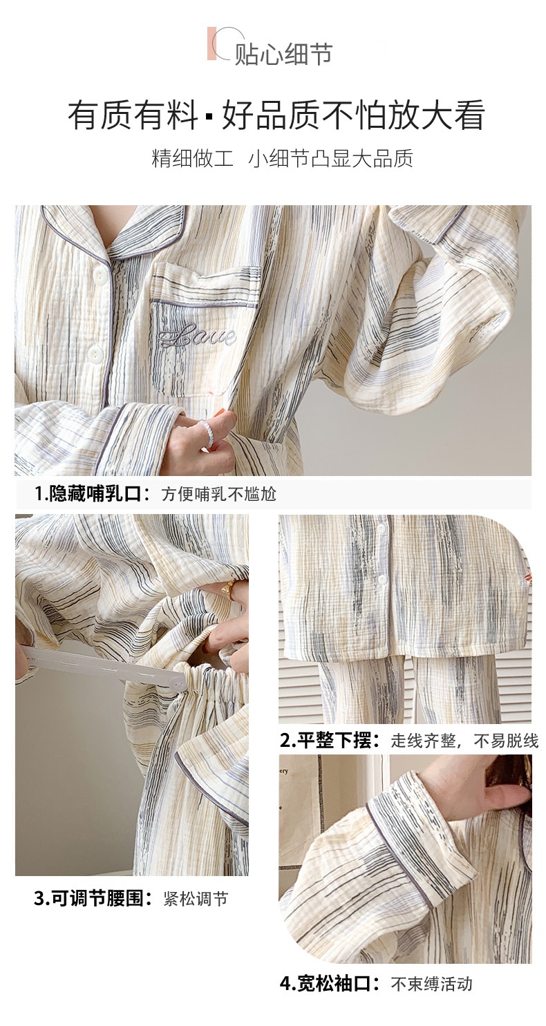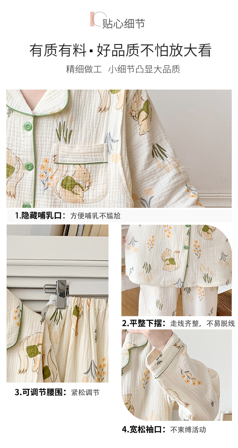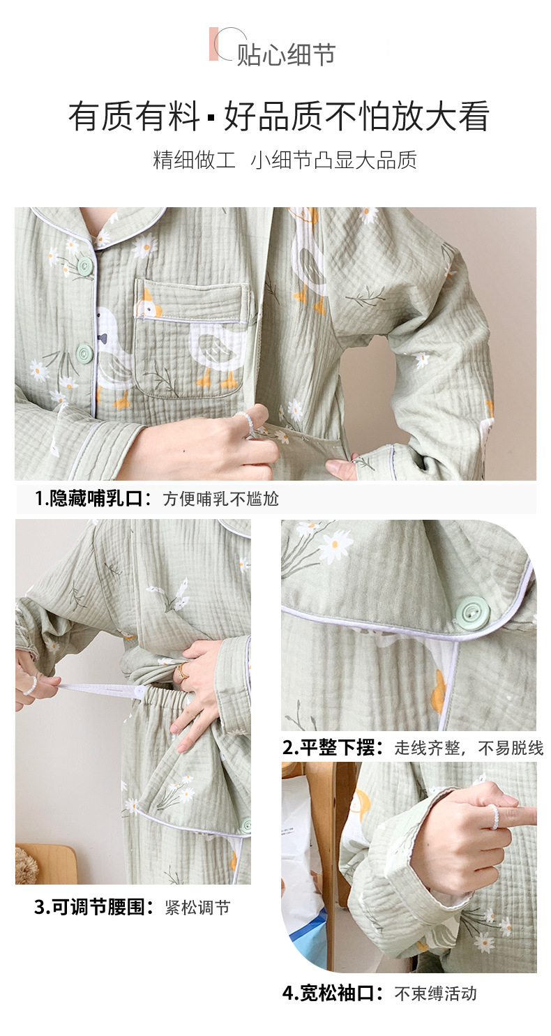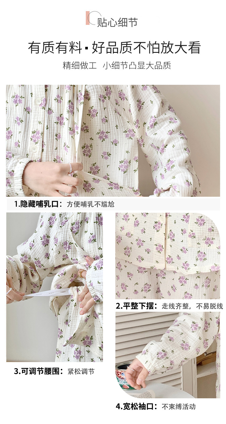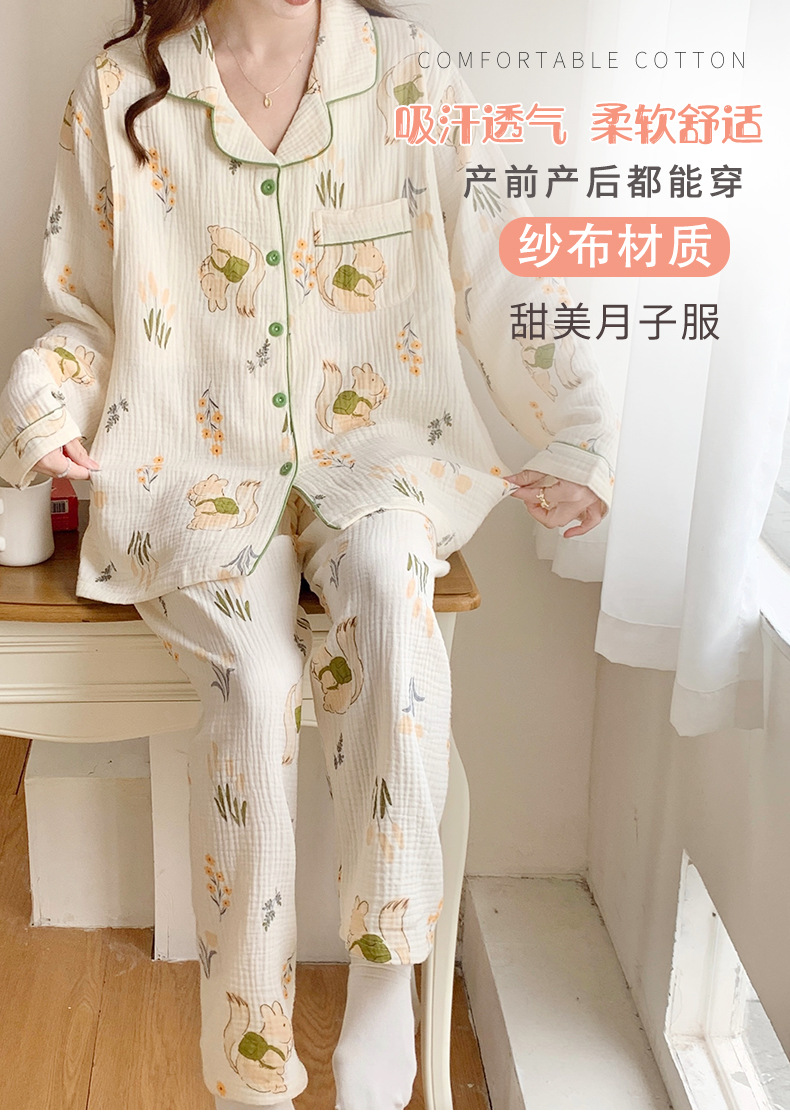 여름 얇은 순면 거즈 감금 의류 임산부 산후 간호 의류 봄 가을 새 세트 잠옷 여성 홈웨어