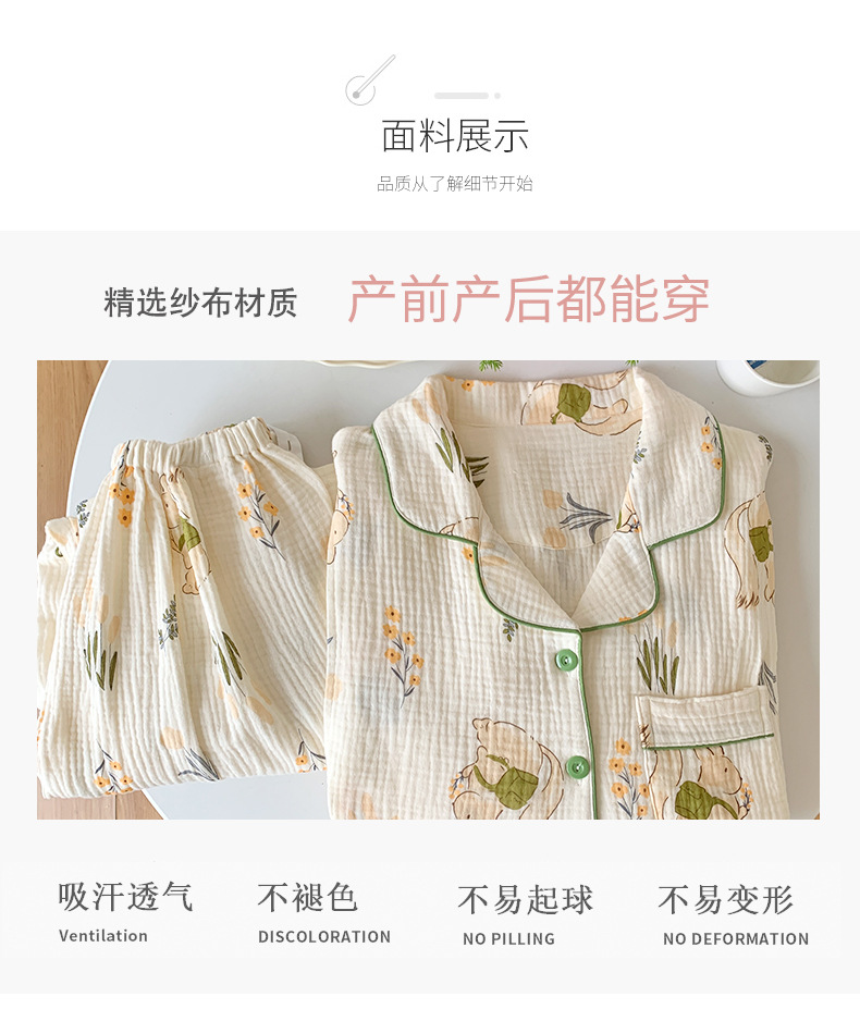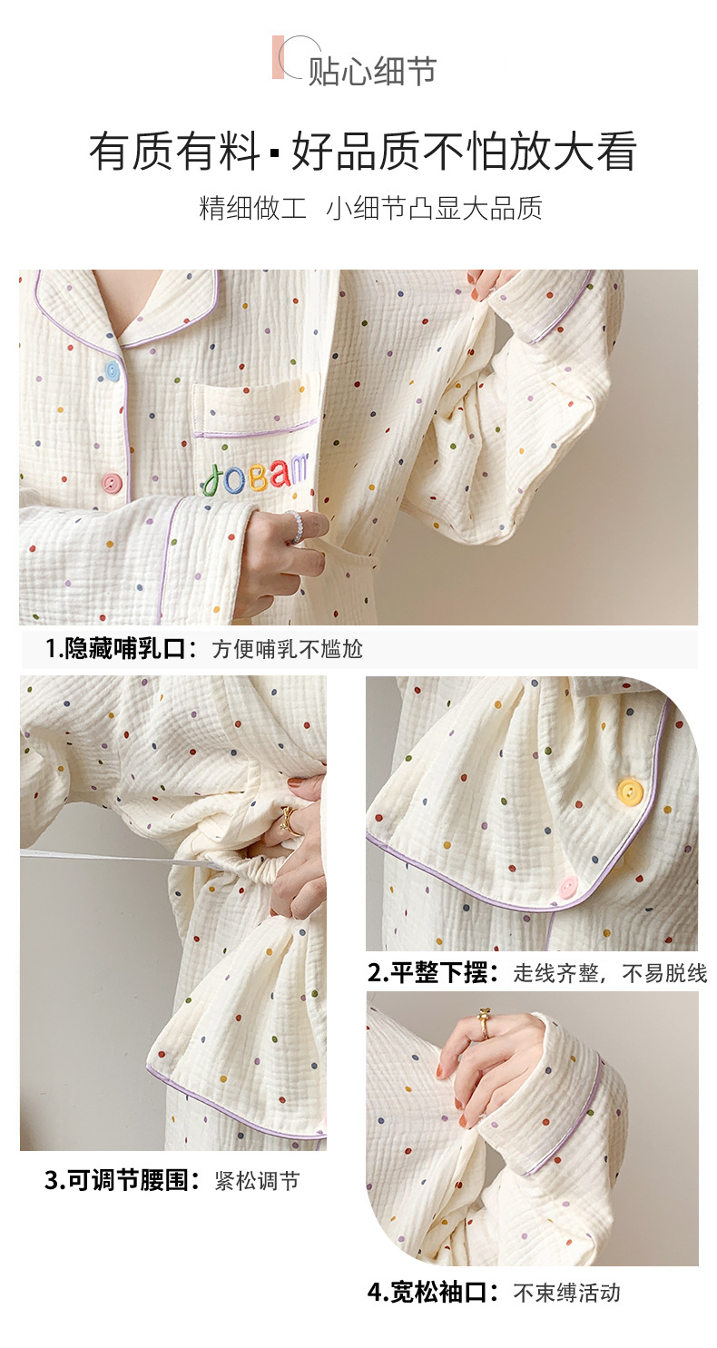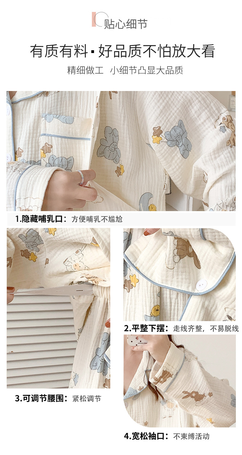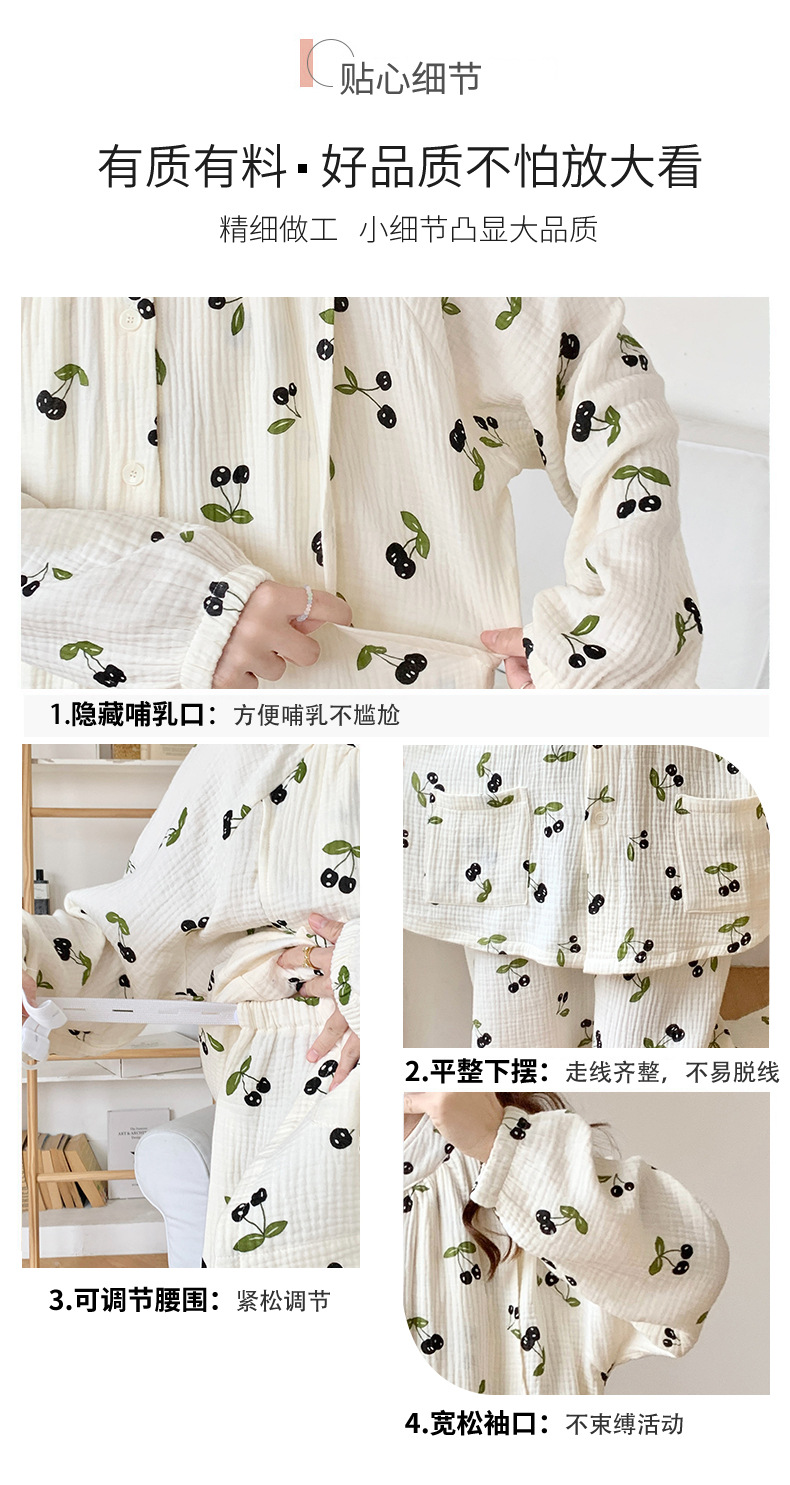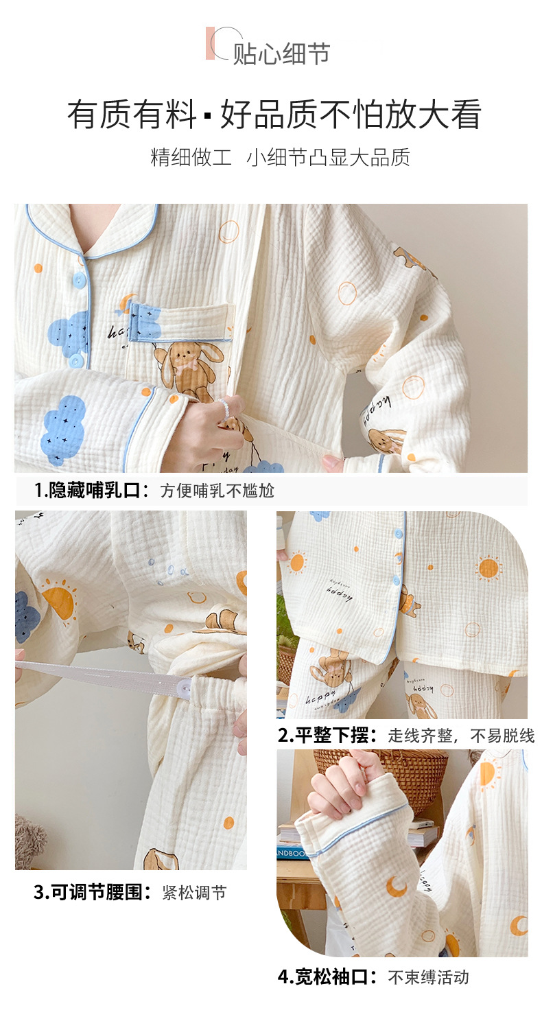 여름 얇은 순면 거즈 감금 의류 임산부 산후 간호 의류 봄 가을 새 세트 잠옷 여성 홈웨어