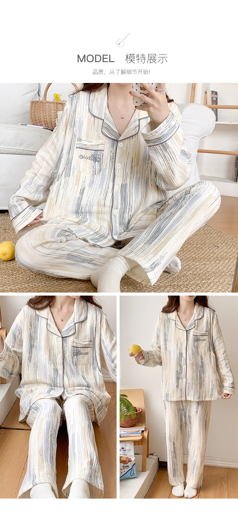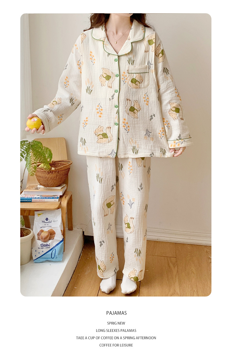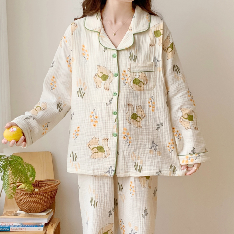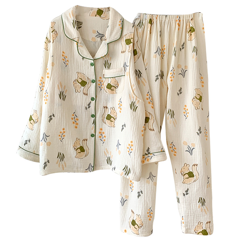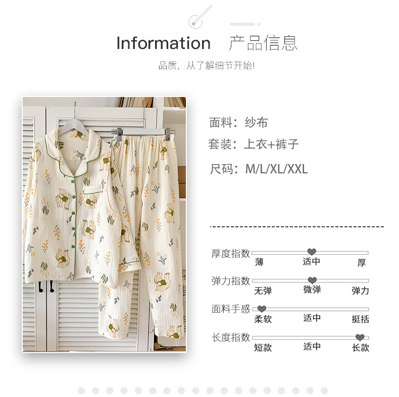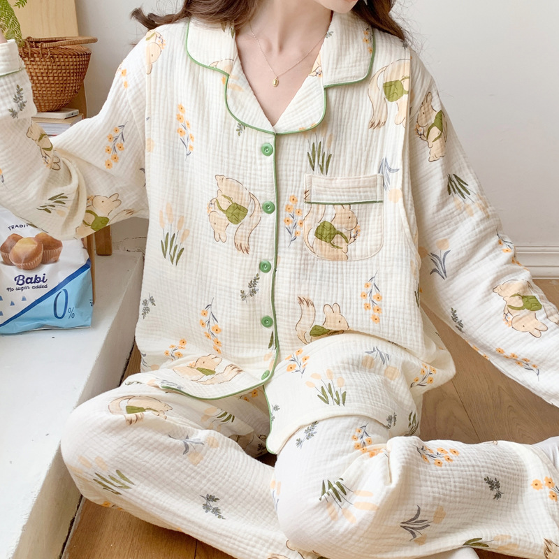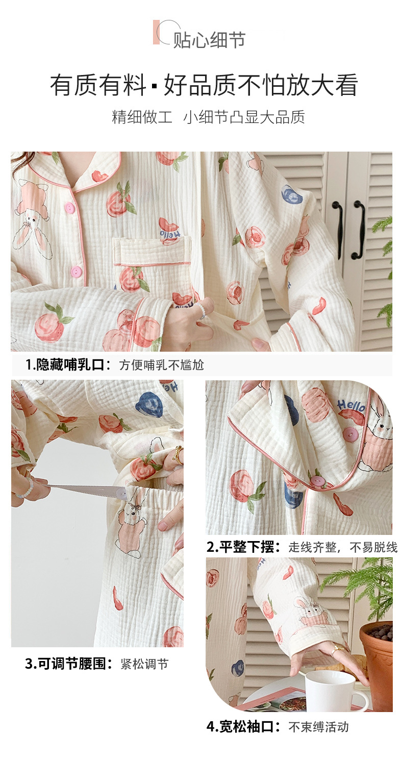 여름 얇은 순면 거즈 감금 의류 임산부 산후 간호 의류 봄 가을 새 세트 잠옷 여성 홈웨어