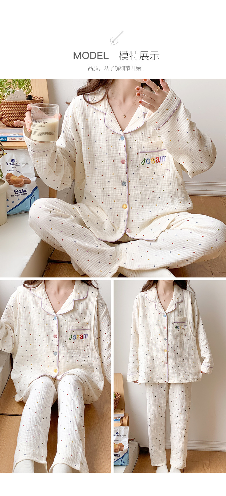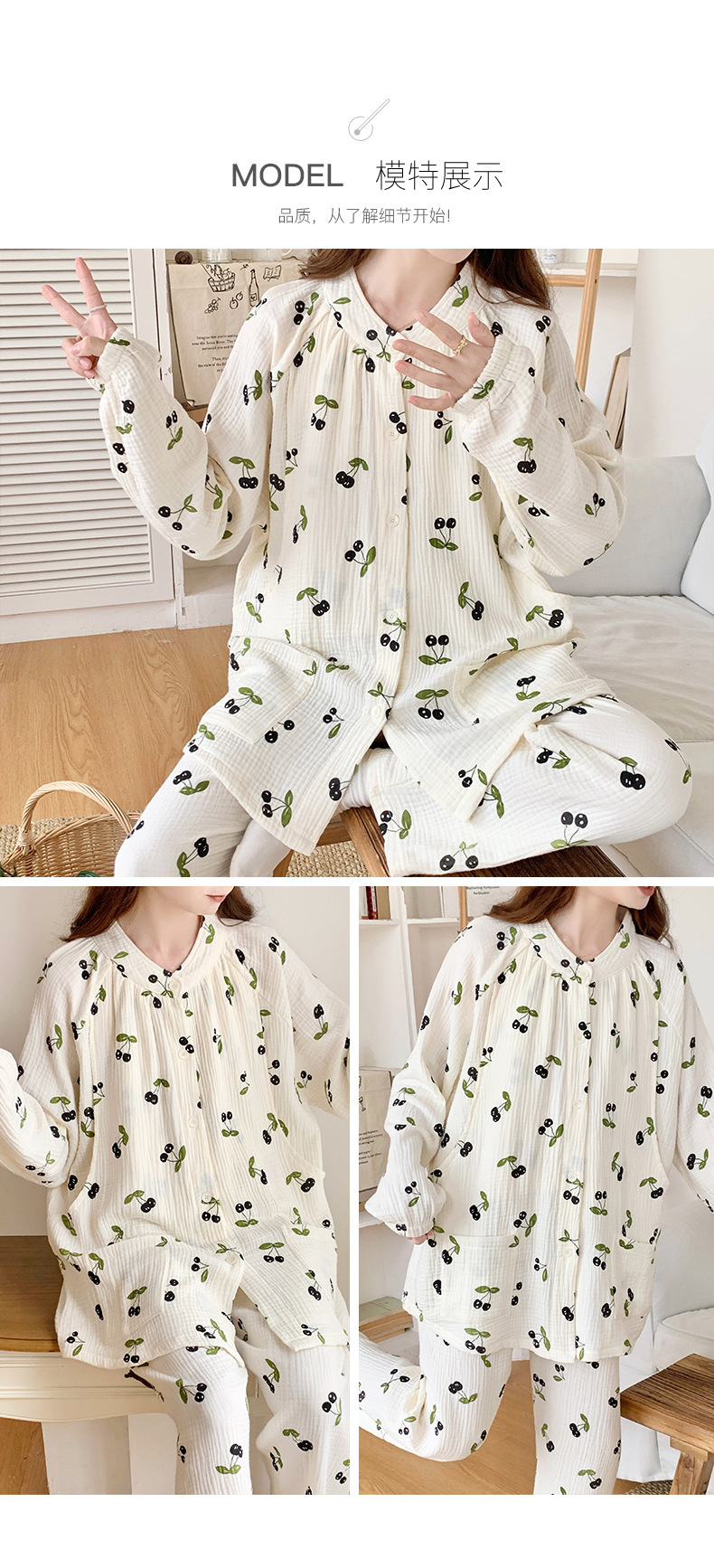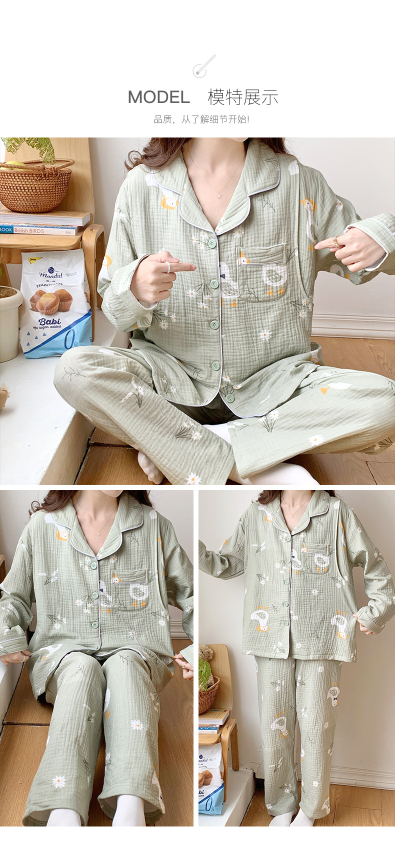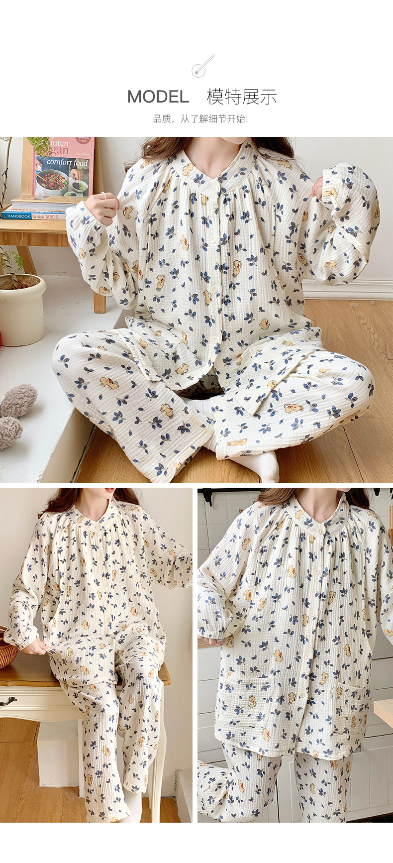 여름 얇은 순면 거즈 감금 의류 임산부 산후 간호 의류 봄 가을 새 세트 잠옷 여성 홈웨어