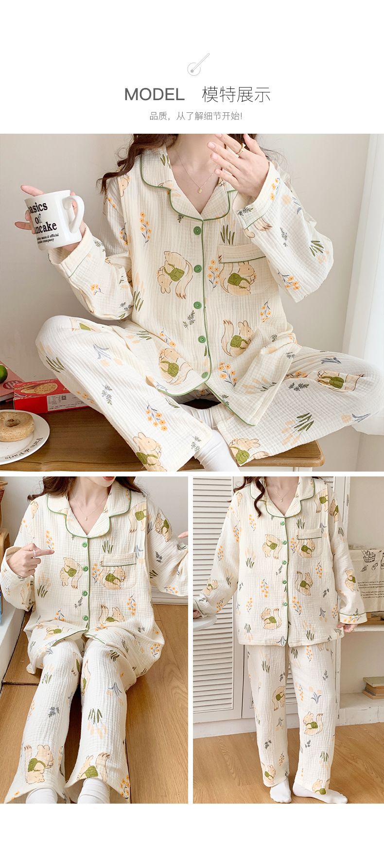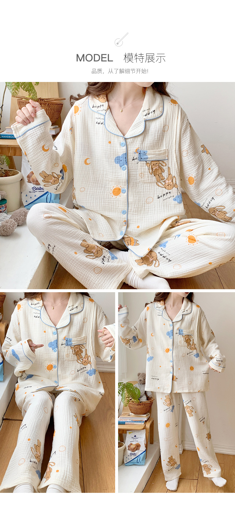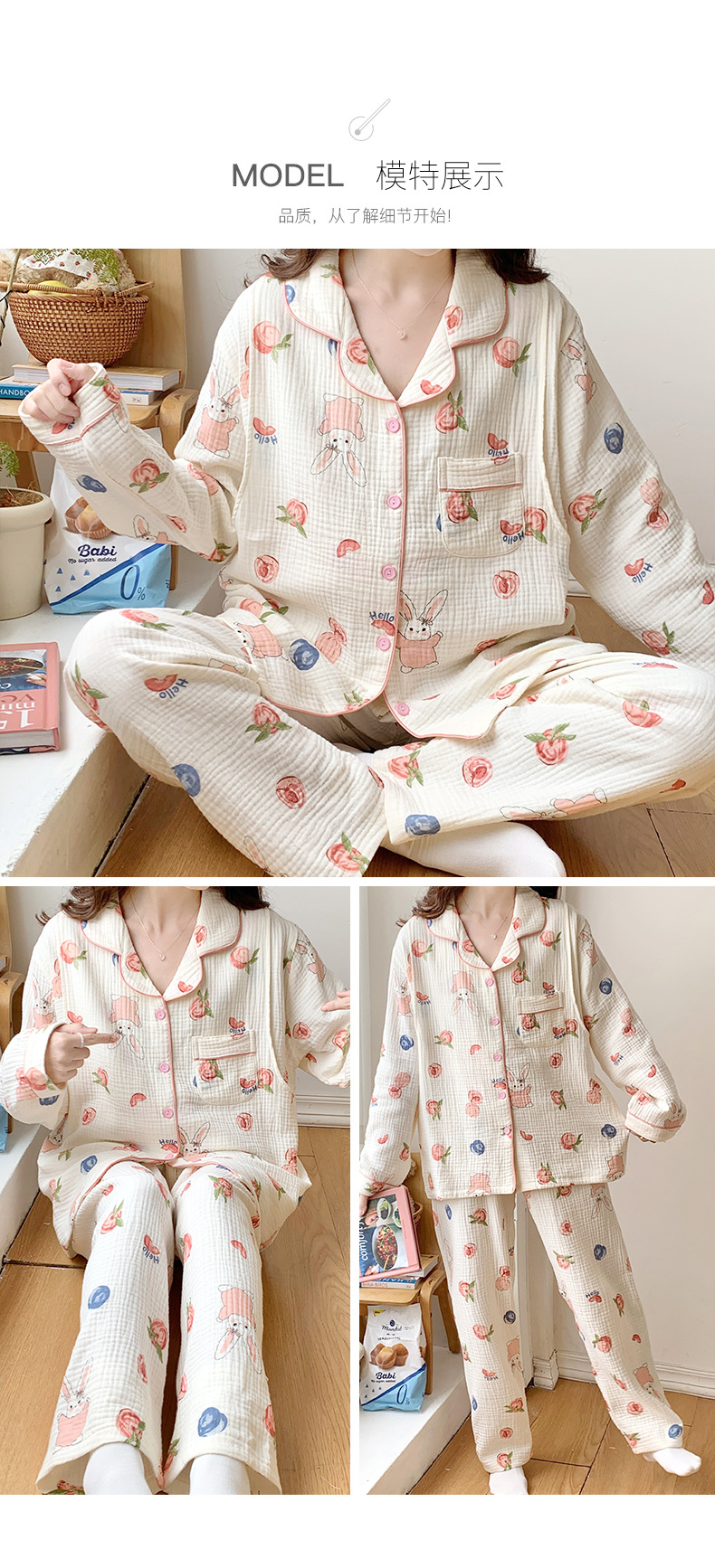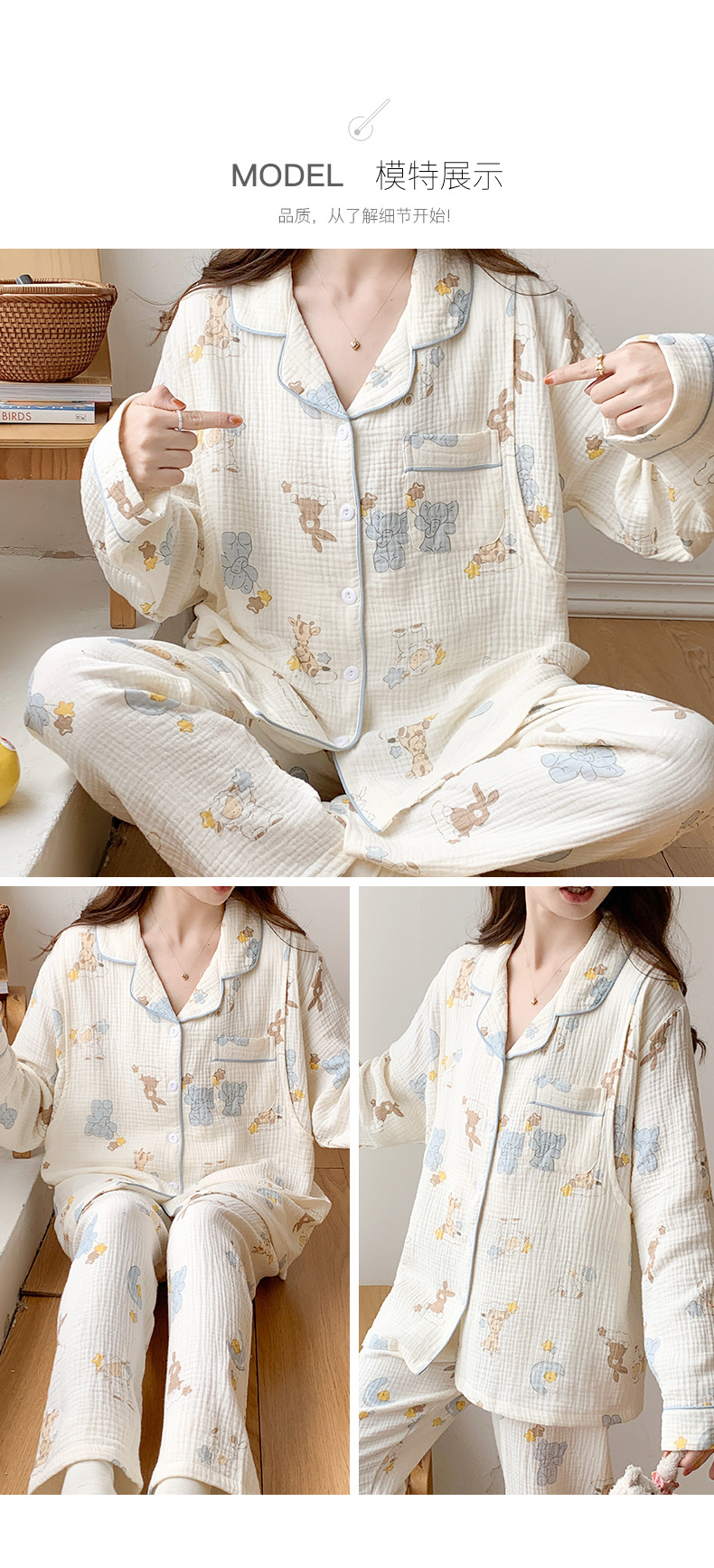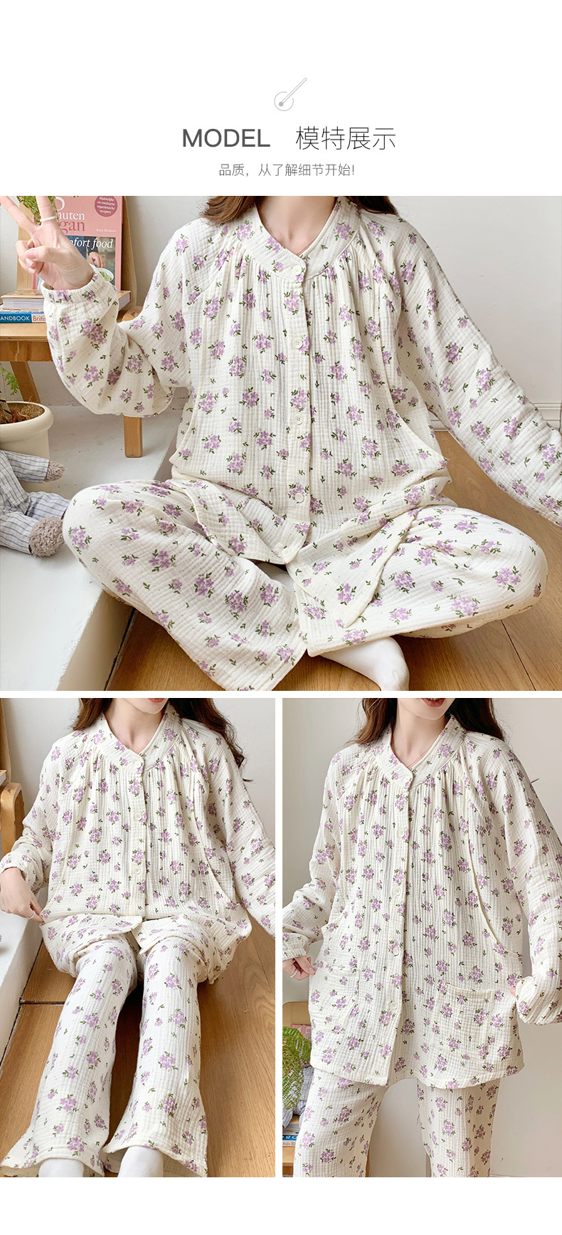 여름 얇은 순면 거즈 감금 의류 임산부 산후 간호 의류 봄 가을 새 세트 잠옷 여성 홈웨어