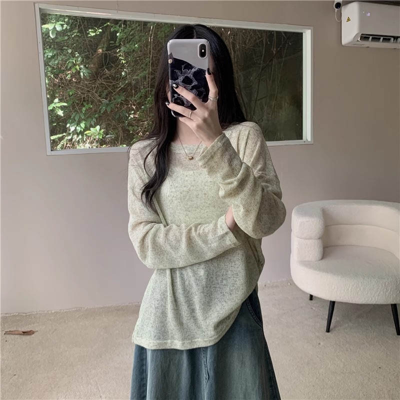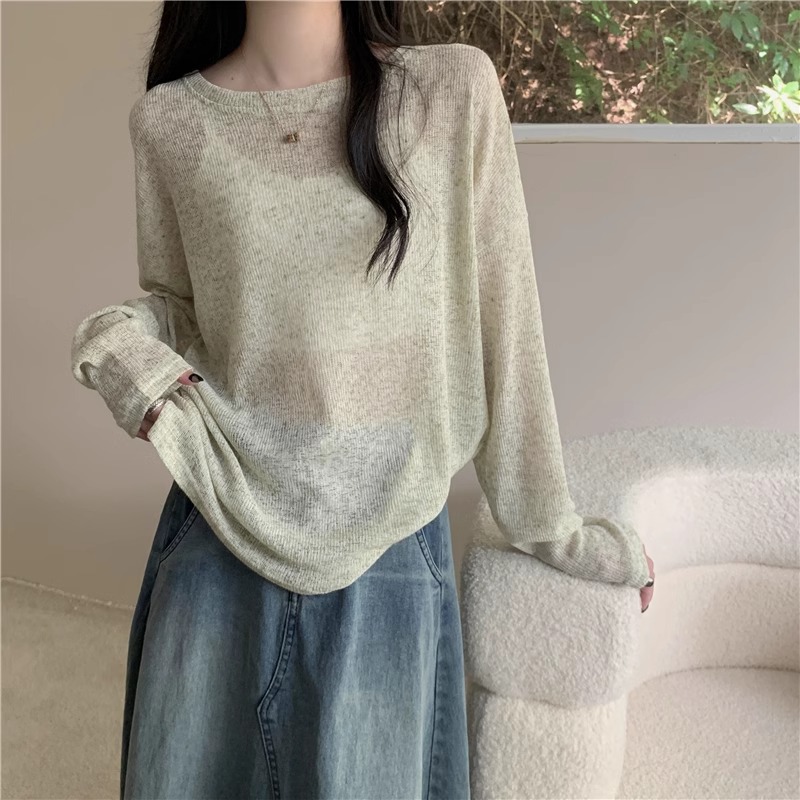 2026년 봄 여름 신상 얇은 라운드넥 슬리밍 블라우스 에어컨 셔츠 긴팔 니트 자외선 차단 셔츠 여성 티셔츠 상의
