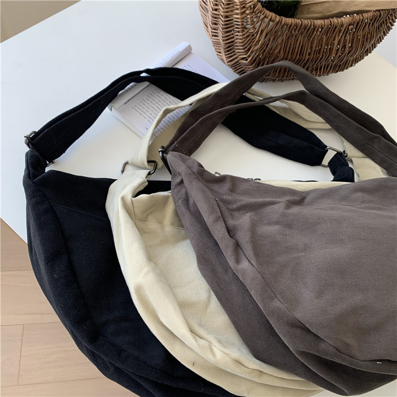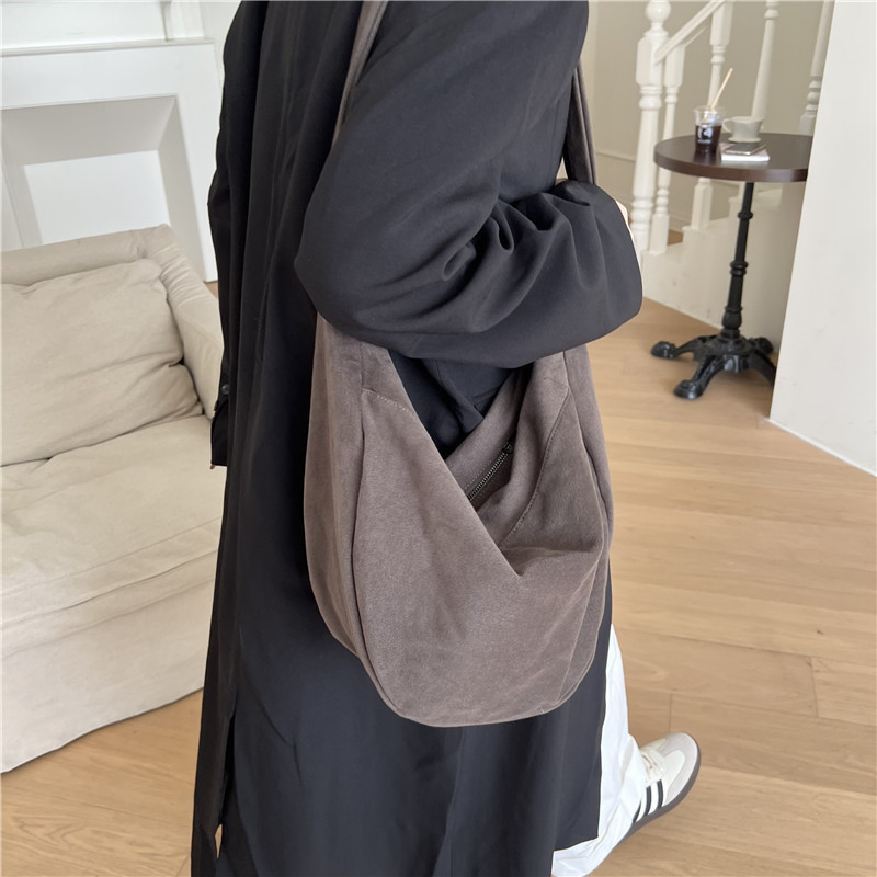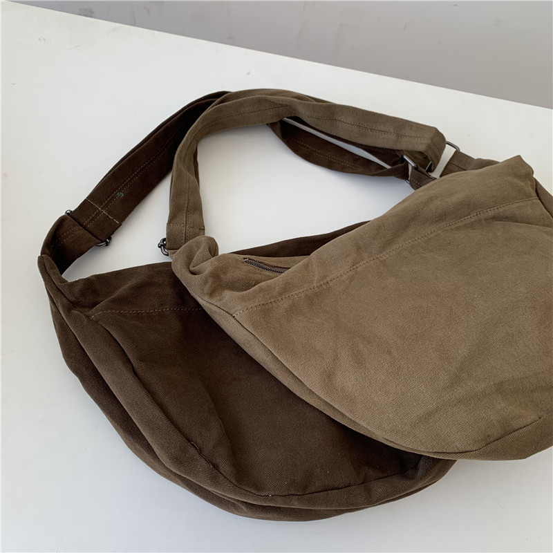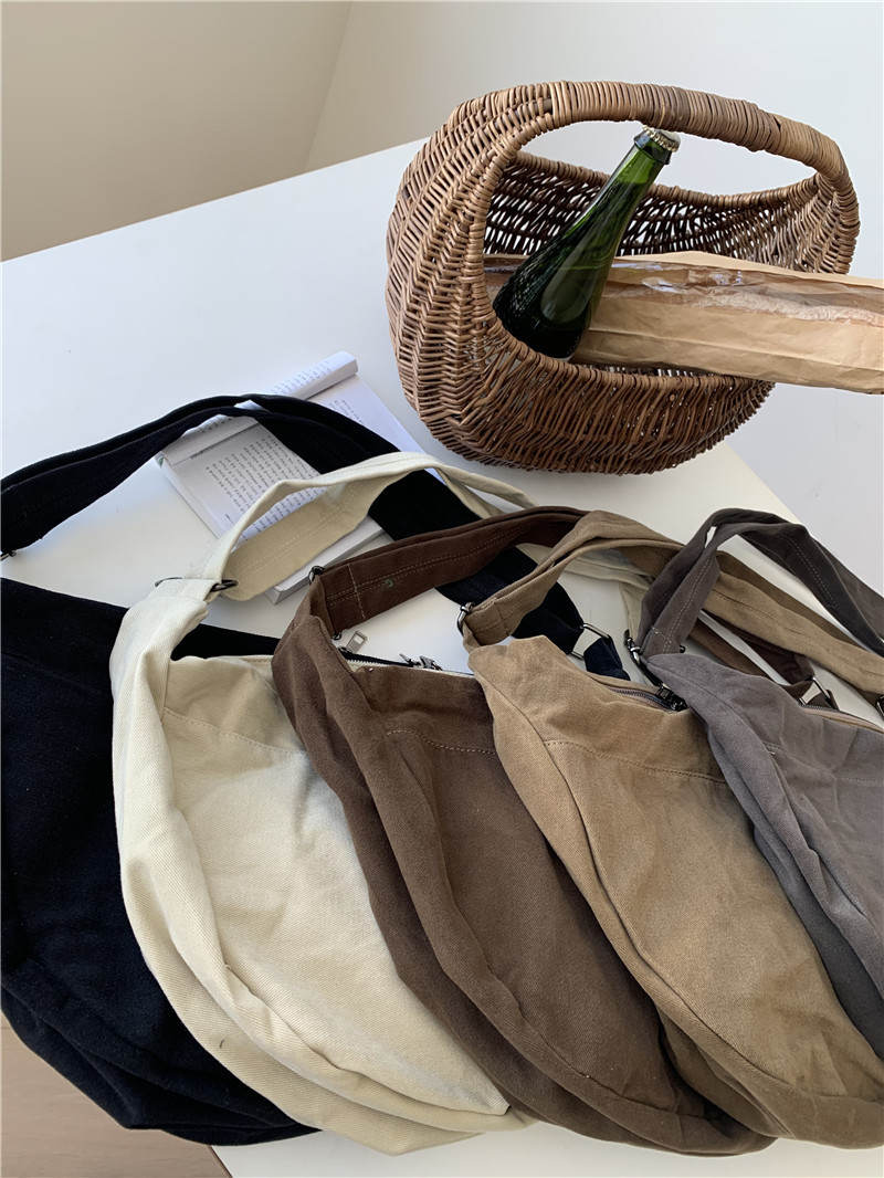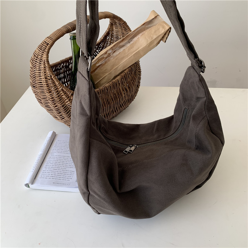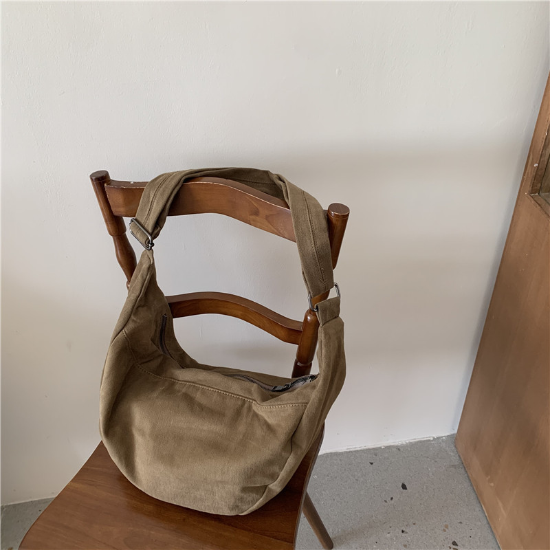 레트로 다크 브라운 홍콩 스타일 크로스 바디 토트 백 대용량 가을과 겨울 새로운 하라주쿠 게으른 스타일 캔버스 숄더백 패션
