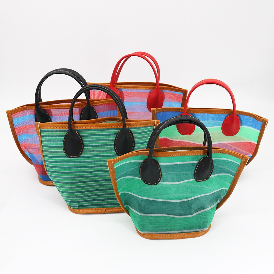 대만 낚시망 가방 동전 지갑 삼색 줄무늬 핸드백 할머니의 손뜨개 가방 야채 바구니 속이 빈 버킷백