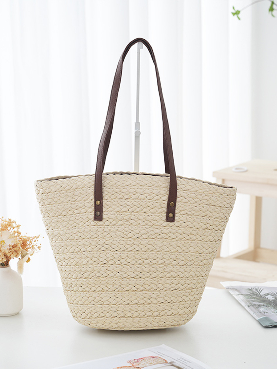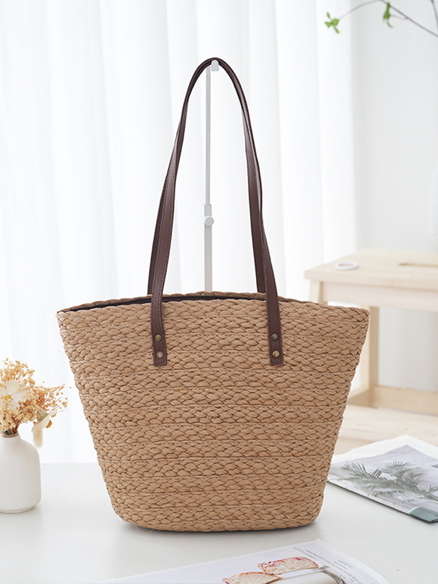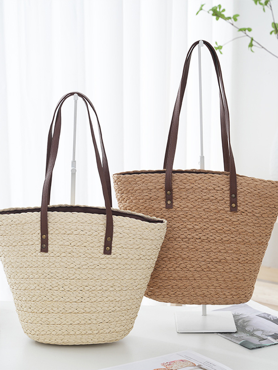밀짚 어깨 가방 간단한 통근 한국 짠 가방 문학 복고풍 휴가 레저 해변 여성용 가방