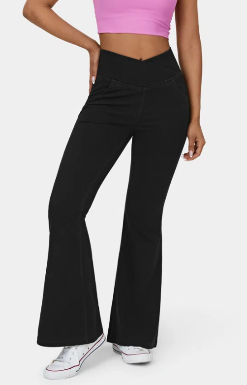 2024 최신 슈퍼 하이 스트레치 데님 플레어 바지 다용도 플러스 사이즈 여성의 항균 높은 스트레치 패브릭 모델 요가