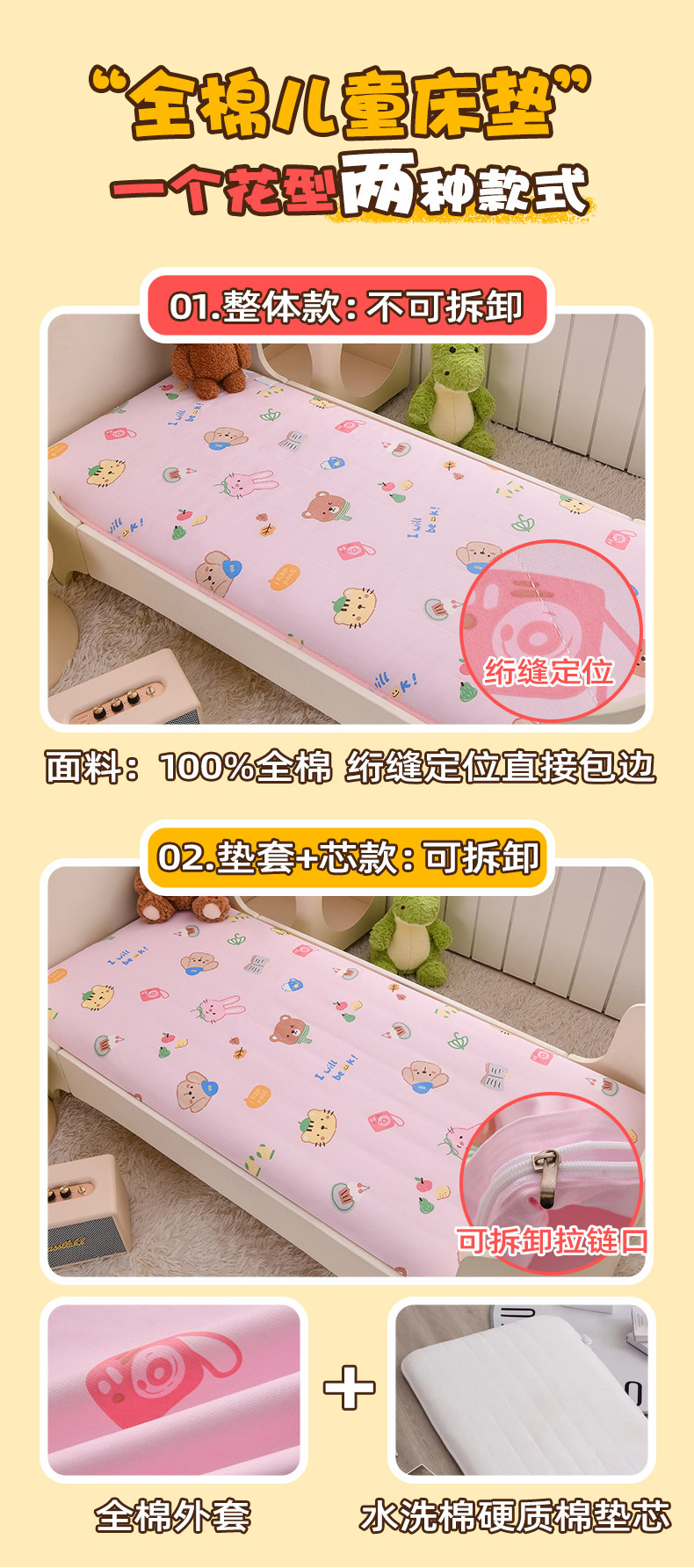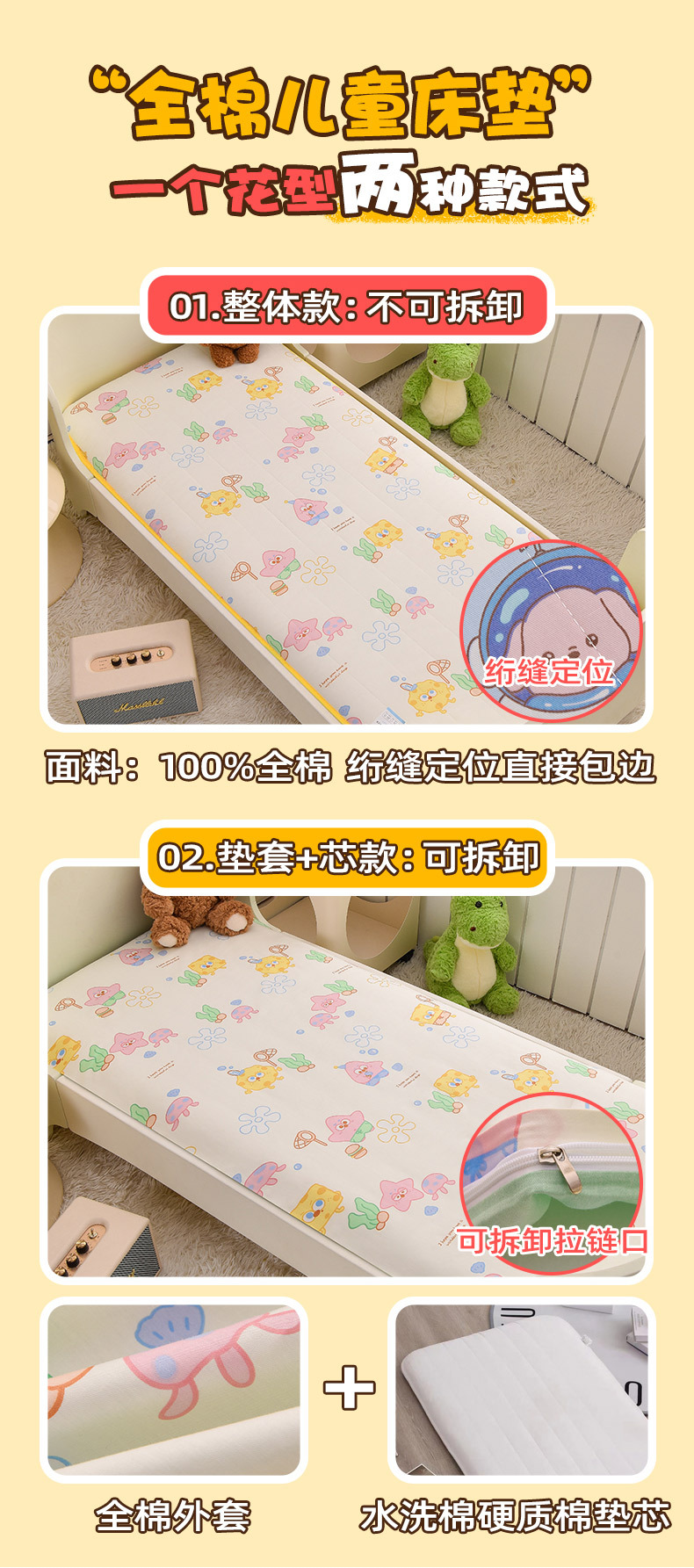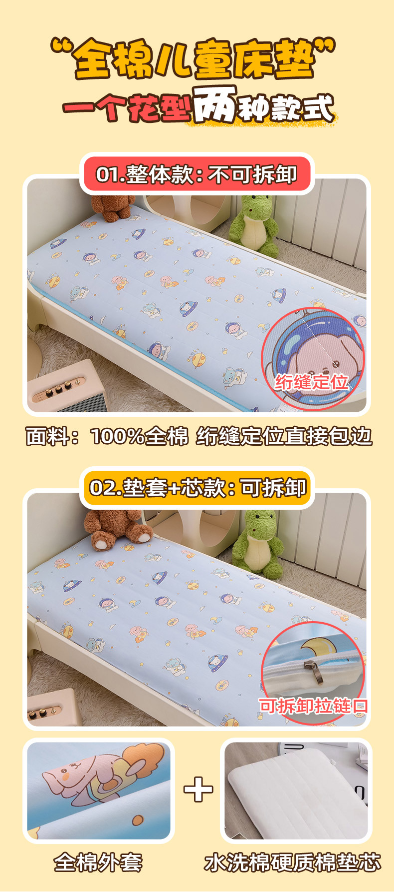 A급 100% 순면 유치원 매트리스, 순면 두꺼운 아기 매트리스, 탈부착 가능한 낮잠용 매트리스, 탈부착 및 세탁 가능