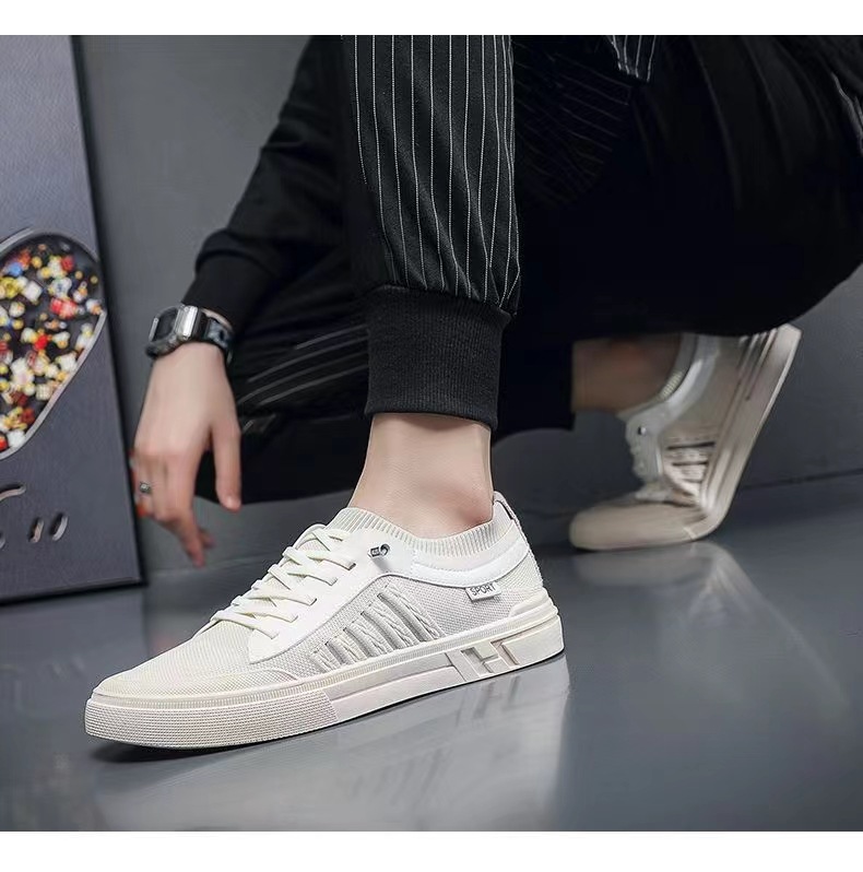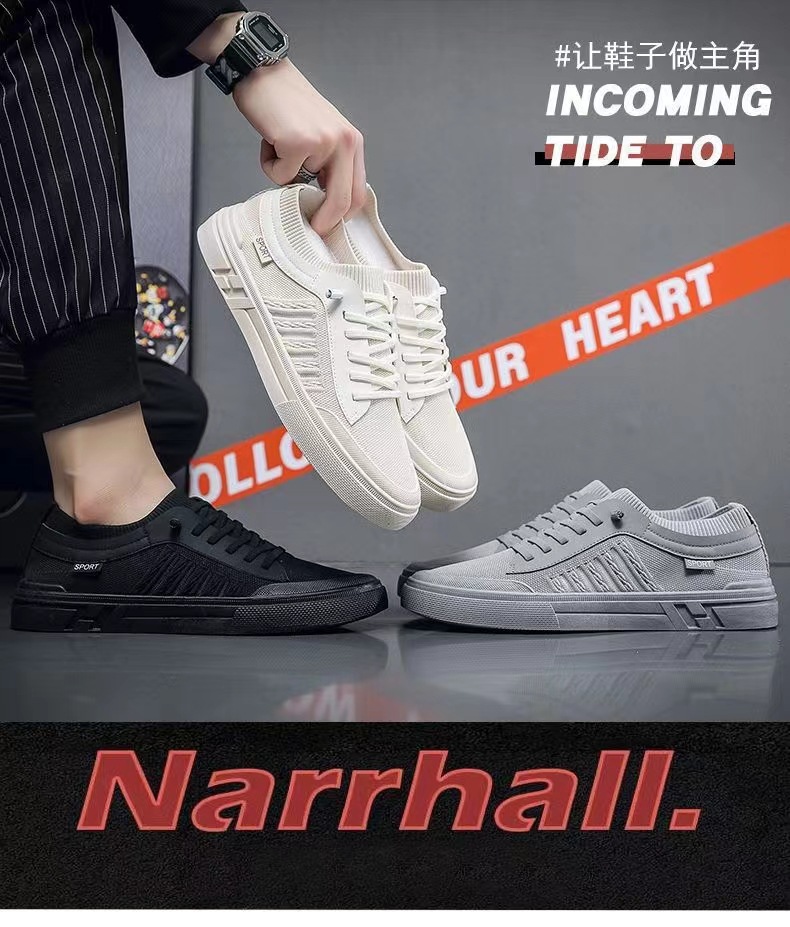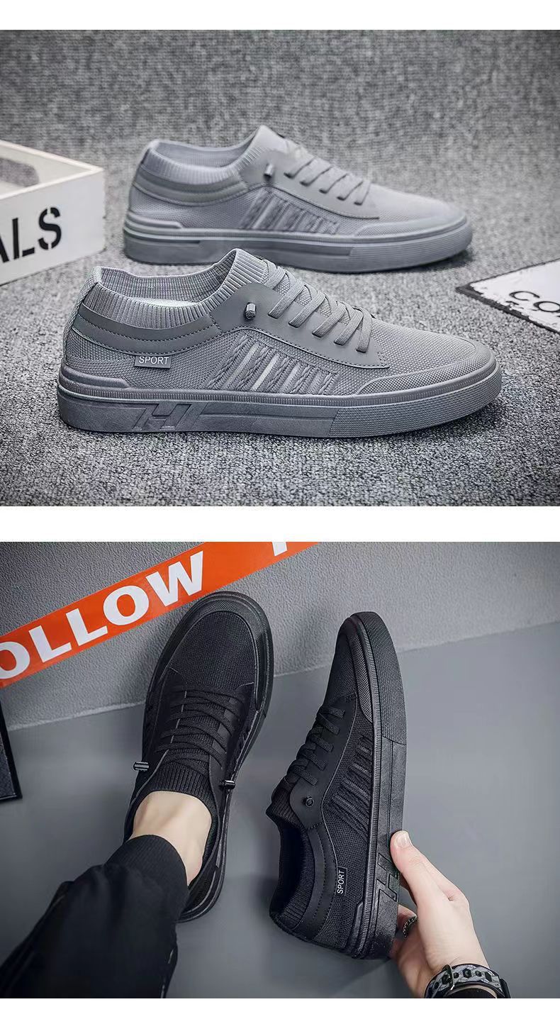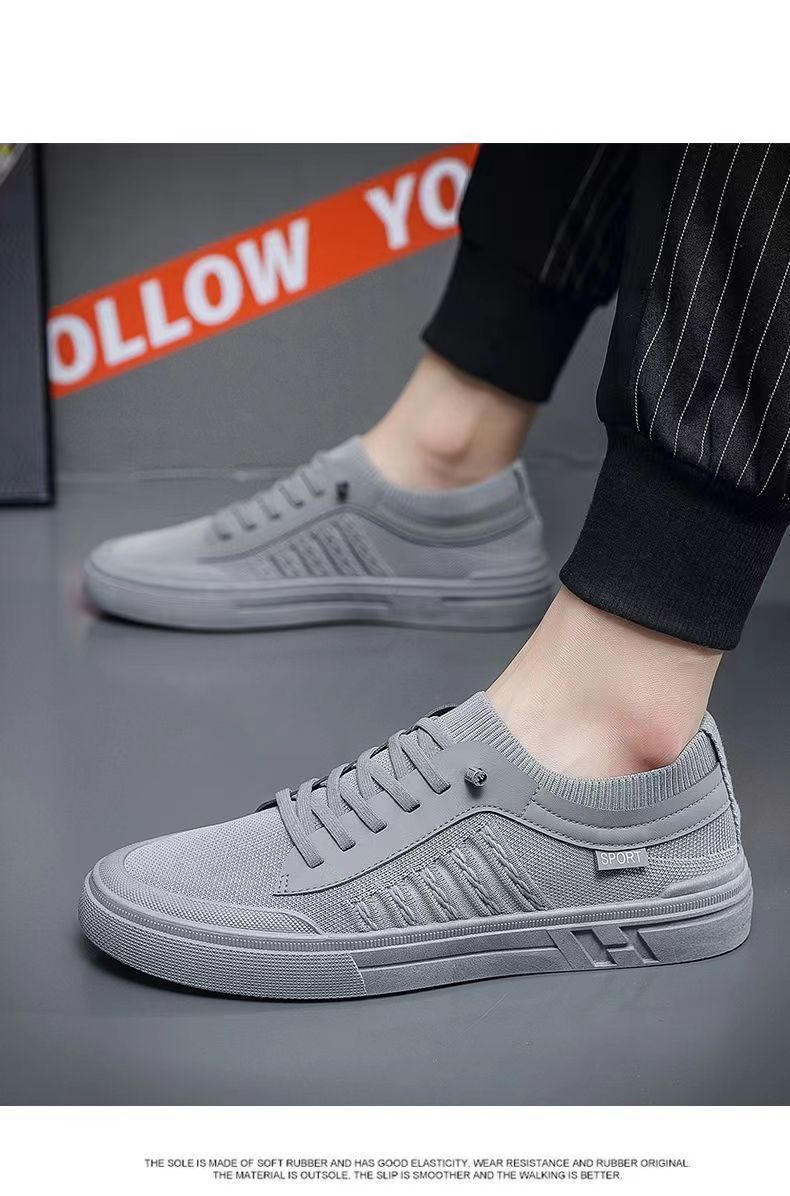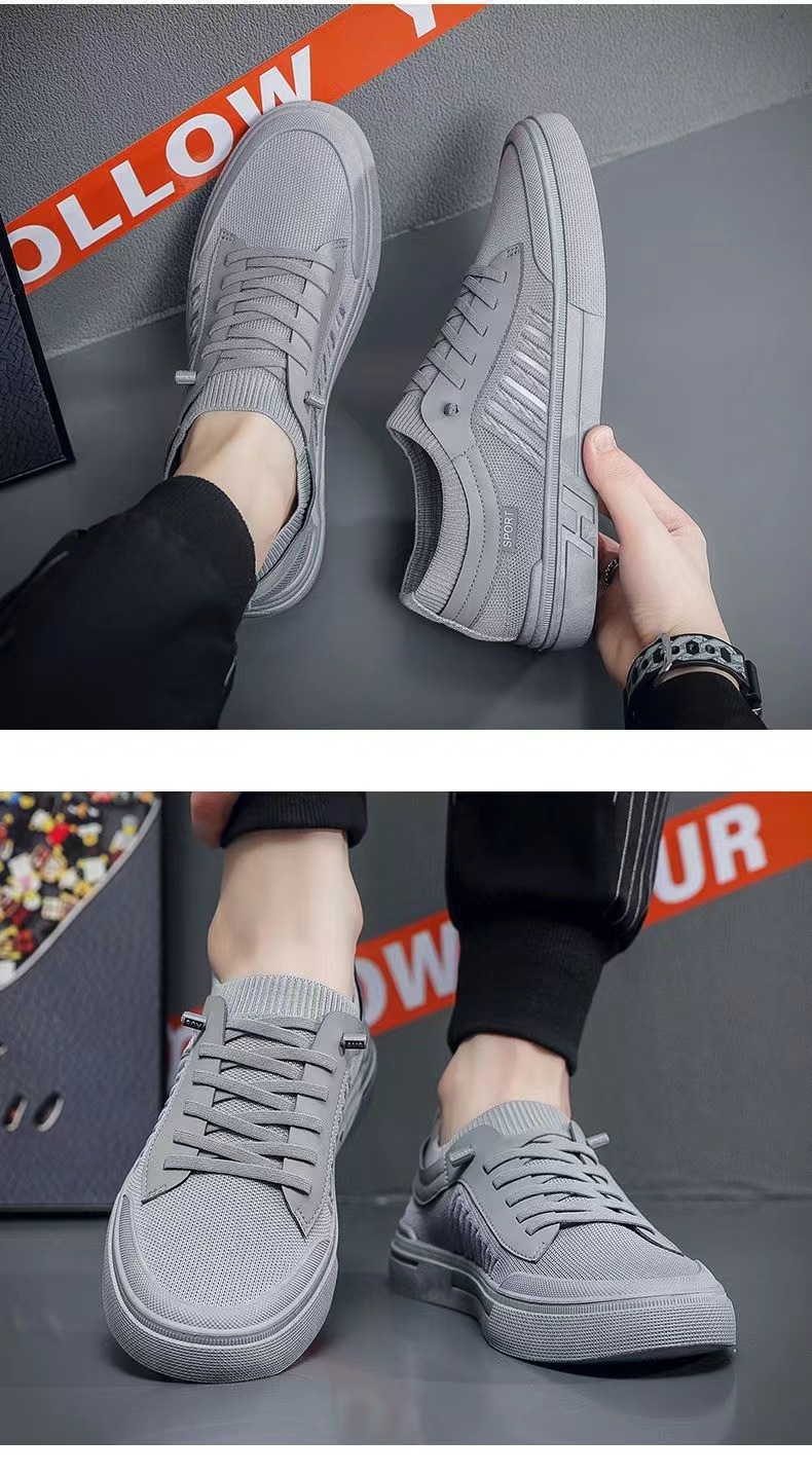 캐주얼 신발 남자의 새로운 보드 신발 2023 여름 패션 올 매치 야외 패션 신발 도매 비행 짠 통기성 보드 신발