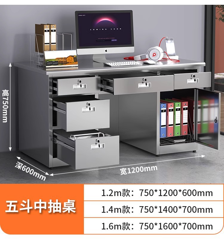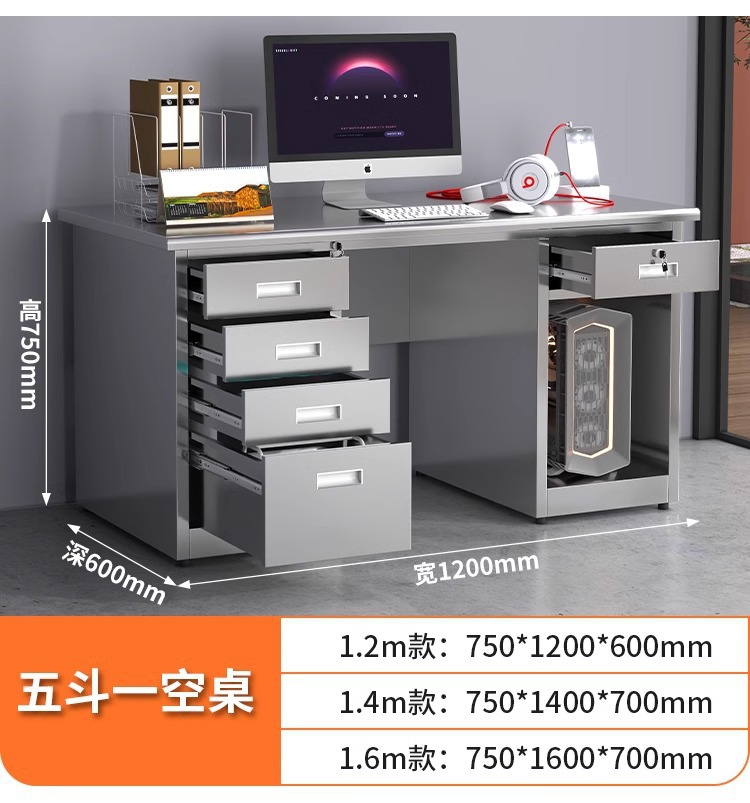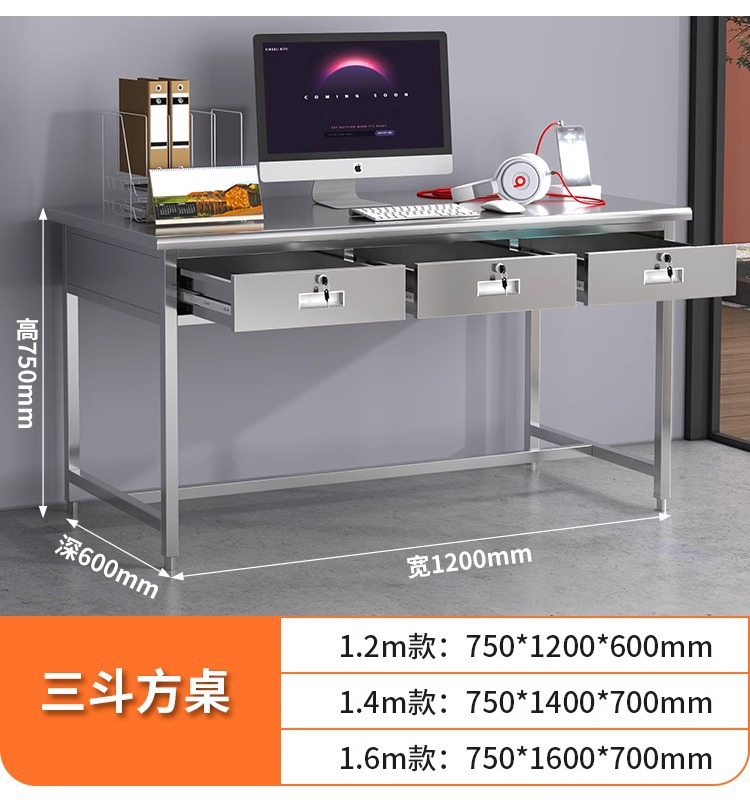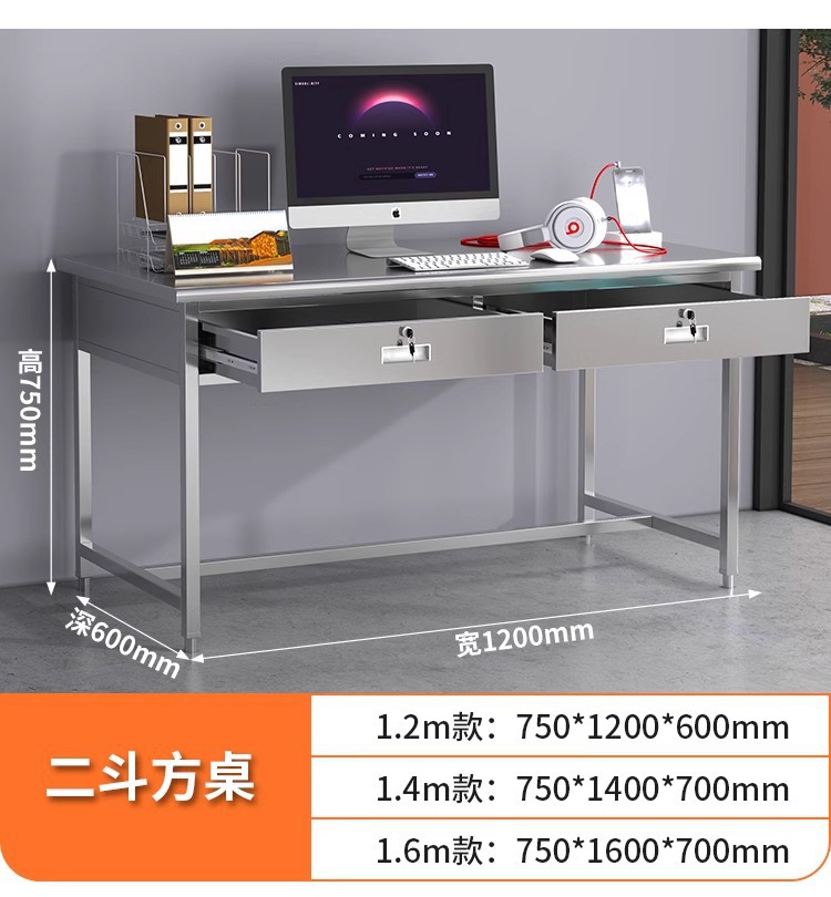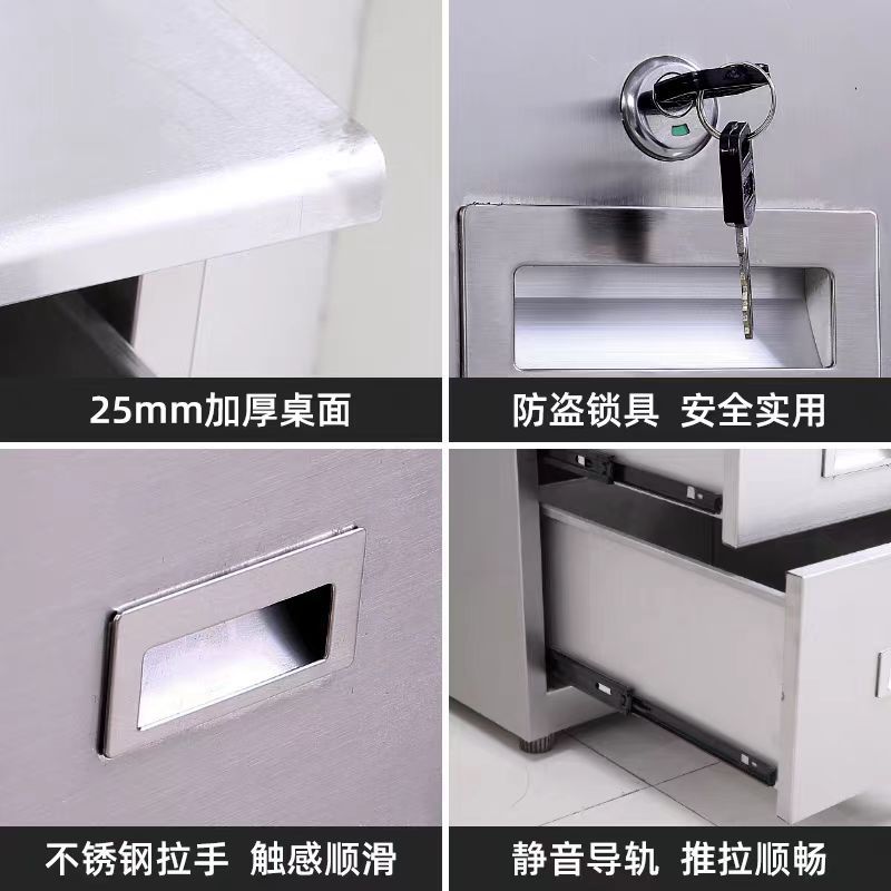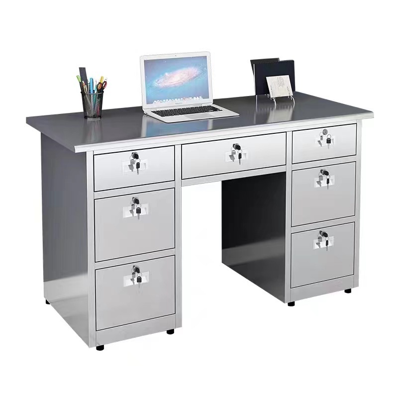 304 스테인레스 스틸 두꺼운 책상 공장 먼지가없는 작업장 콘솔 잠금 및 서랍 컴퓨터 책상 계산원