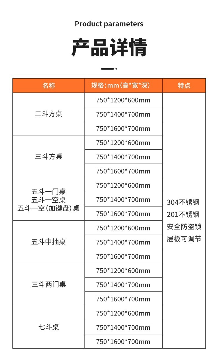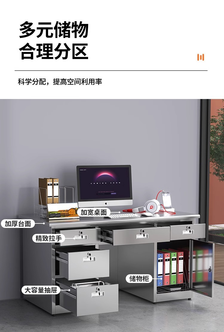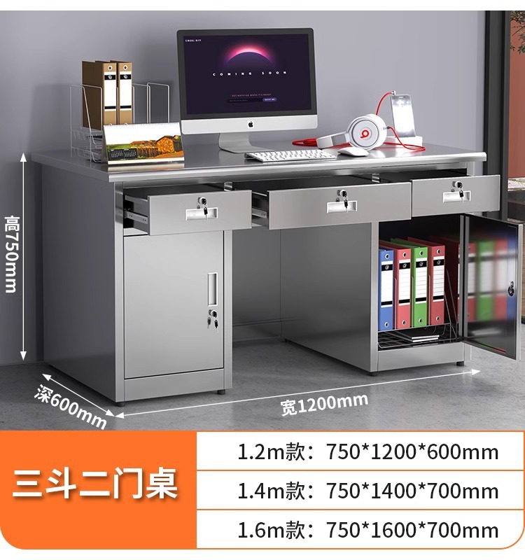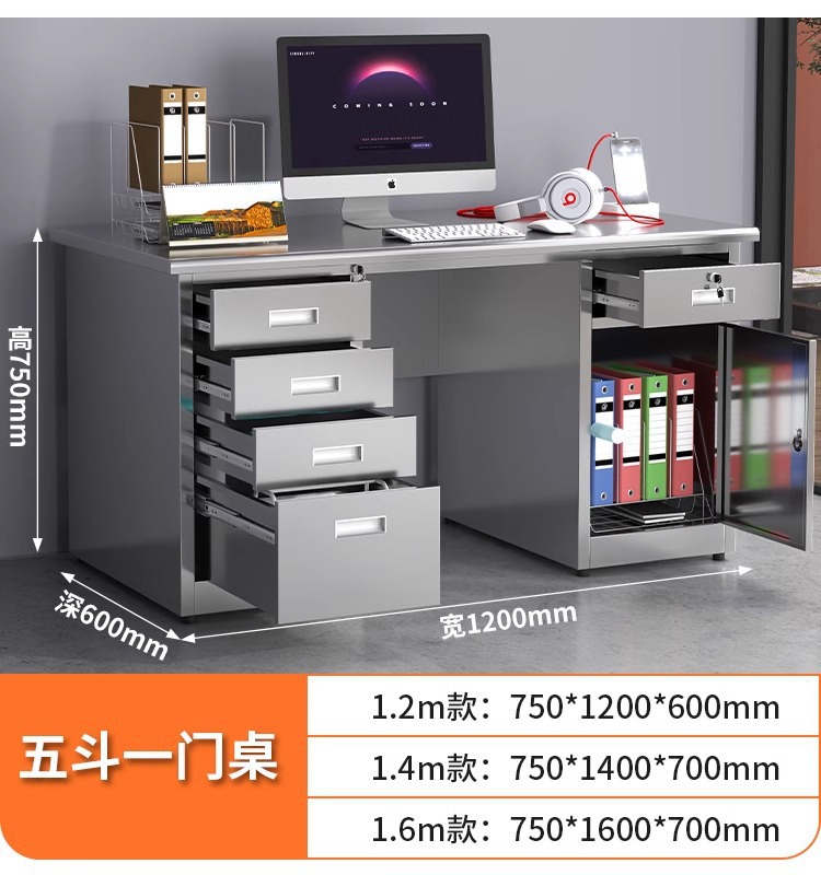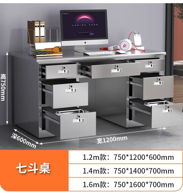 304 스테인레스 스틸 두꺼운 책상 공장 먼지가없는 작업장 콘솔 잠금 및 서랍 컴퓨터 책상 계산원